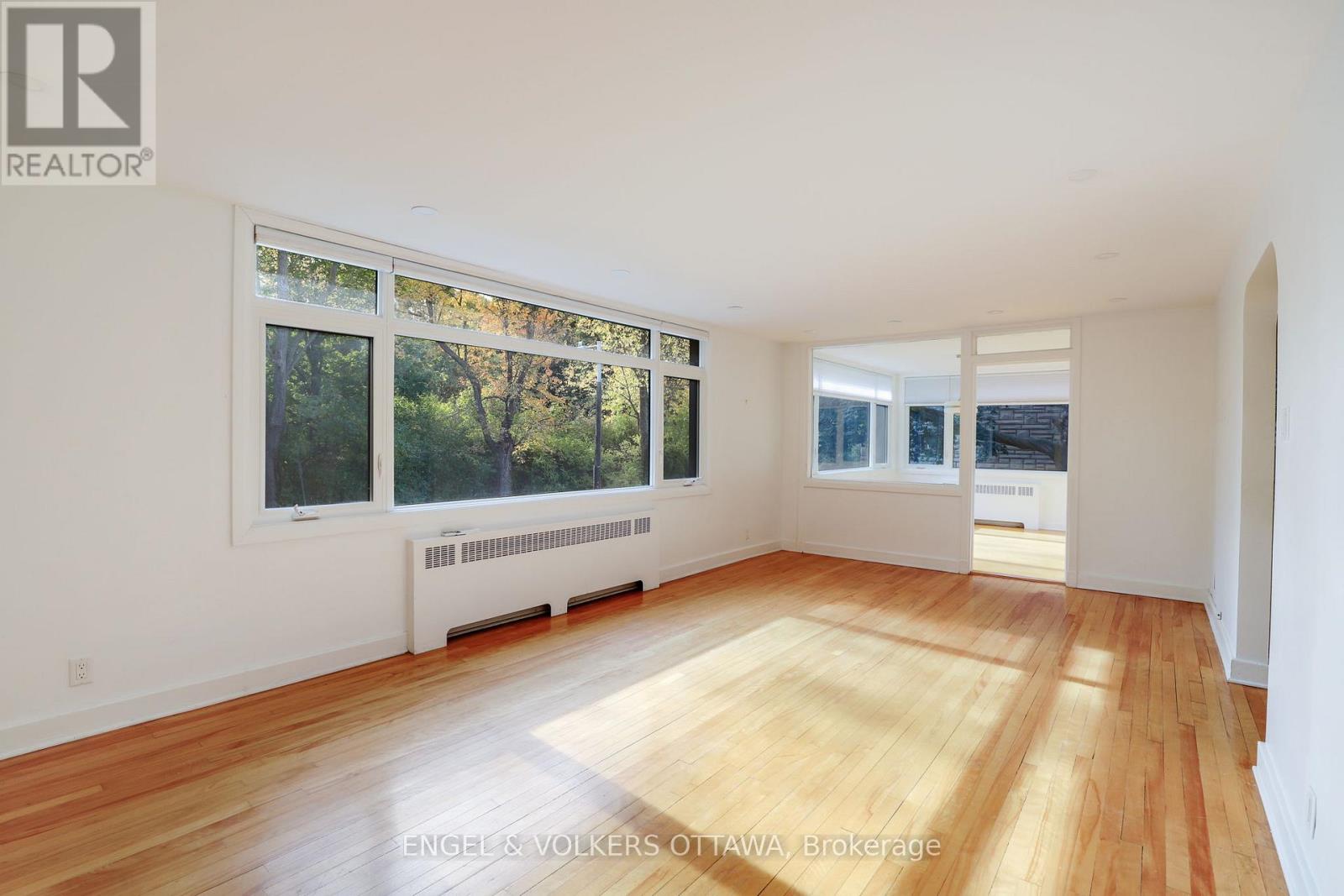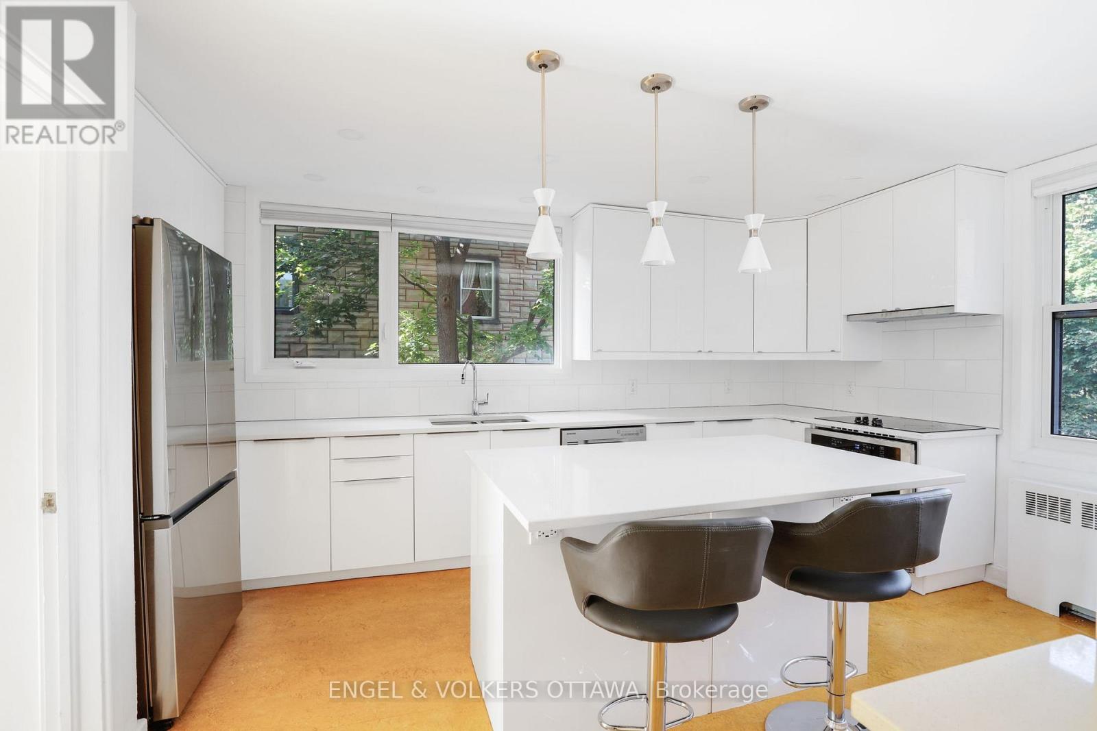 A bungalow in the sky, this extraordinary 3-bedroom, 1-bath residence (approx. 1,750 sq. ft.) offers an unparalleled combination of space, light, and sophistication. Expansive windows frame unobstructed park views from nearly every principal room, creating a serene, sun-filled retreat.An elegant arched doorway welcomes you into the spacious double living room, flowing effortlessly into a dining room wrapped in windows, perfect for entertaining or relaxed everyday living. The chef's kitchen is a true showpiece, recently renovated with high-end stainless steel appliances, a striking quartz island with abundant storage, and thoughtful design throughout.Three generous bedrooms offer comfort and versatility, complemented by a modern bathroom with glass shower and updated in-unit laundry. A rare opportunity to experience park-side living at its finest, this "sky bungalow" combines timeless architecture with contemporary comfort just moments from Global Affairs, University of Ottawa and the ByWard Market. Some images have been virtually staged. (id:49063)