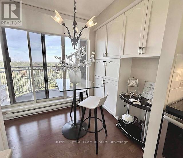 Highly sought Westpark 2-beds & 2-baths condo with meeting room, library, gym, indoor swimming pool, whirlpool, sauna, community patio with Bar-B-Q, workshop, billiard room, bike storage, car wash & lots of activities. Unit 1008 boasts an Eastern exposure with sweeping views of the city & the impeccably maintained grounds. This Minto Magnolia model features a large living room, beautiful dining room with crystal chandelier & coffered ceiling adjacent to a kitchen with lots of cupboards leading to a balcony ideal for morning coffee. Large Master bedroom with walk-in closet and 3 pcs ensuite with tub. The 2nd bedroom also has a 3-pcs bath with shower. In-suite laundry with storage space. Parking P2 #111& storage locker near by. Lots of visitors parking. Smoke free & only cats allowed. A short walk to Merivale mall, groceries, restaurants. You have got to Love That Home! F244 requires 24 hrs irrevocable on all offers. (id:49063)