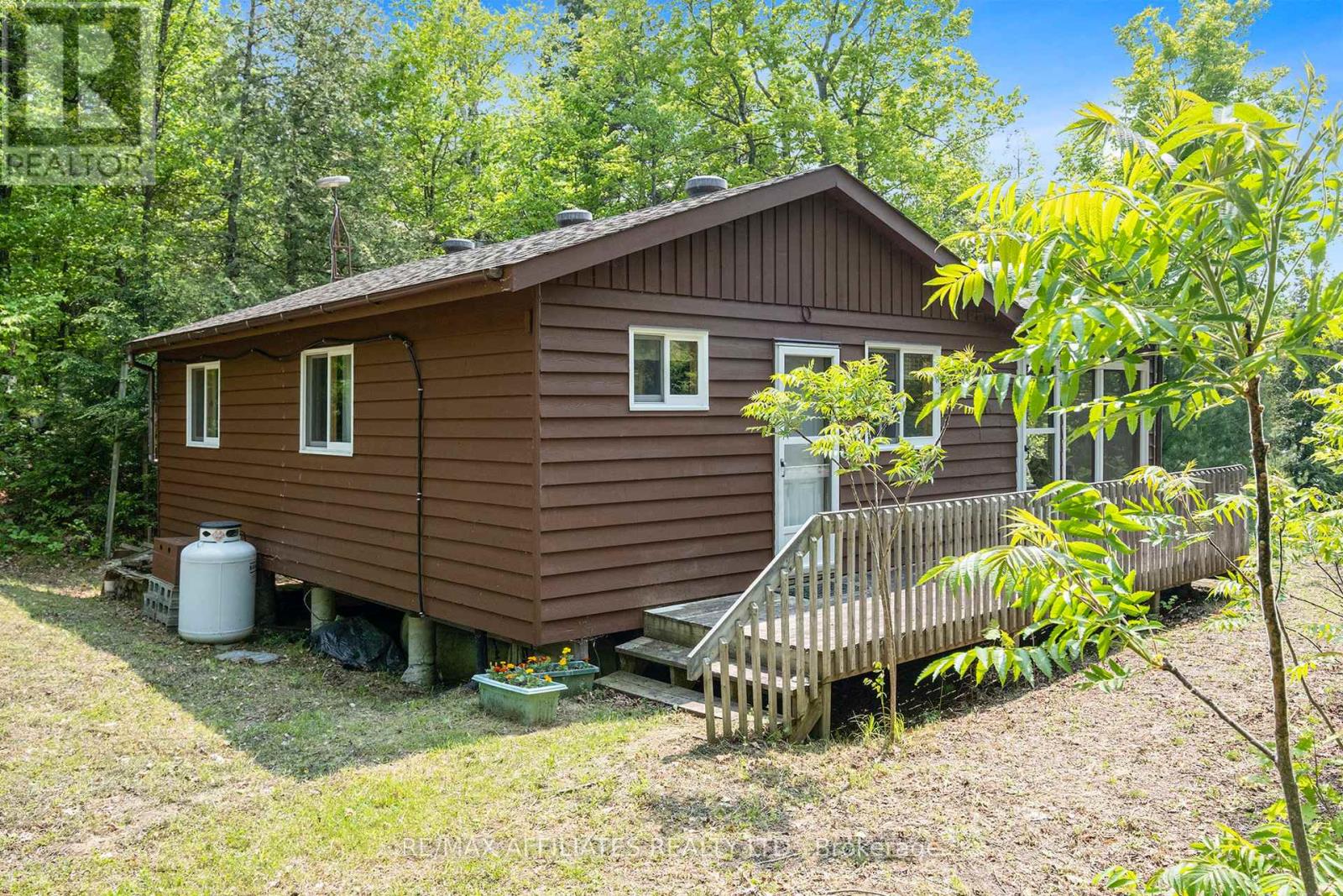 Cottage life at its finest - waterfront, privacy, and sunsets! Escape to this serene 3-season retreat on beautiful Penyck Lake. Nestled on a rare, private 1.96-acre lot, this charming cottage boasts 139 feet of pristine, swimmable waterfront and breathtaking west-facing views, perfect for watching unforgettable sunsets. Inside, you'll find a cozy, open-concept kitchen, dining, and living area with large windows framing the lake. The cottage has two spacious bedrooms and a 3-piece bathroom, offering all the comforts you need for a peaceful lakeside getaway. Step into the screened-in porch for a tranquil, bug-free spot to enjoy your morning coffee or unwind while watching the sunset. Outside, the lush, wooded lot provides excellent privacy, room to explore, and a true sense of escape. Off grid but fully equipped, the property features a solar power system, propane stove and fridge, and a gas generator giving you the perfect blend of comfort and sustainability in nature. Located just 15 minutes from Sharbot Lake, under 2 hours from Ottawa, and just over an hour from Kingston, this lakeside retreat is the ultimate place to relax, recharge, and make lasting memories. (id:49063)