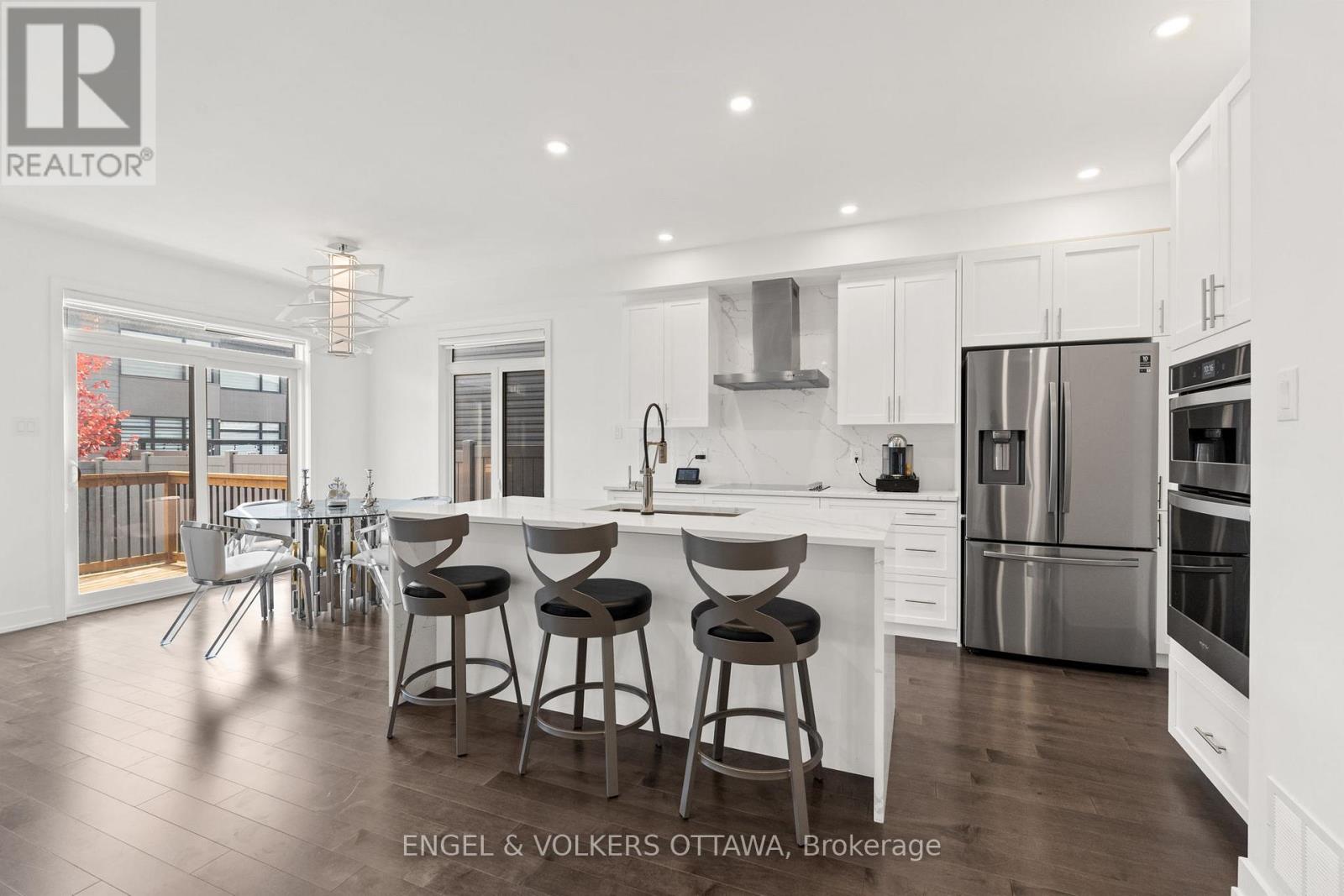 Welcome to this stunning single-family home nestled in the heart of Riverside South! This upgraded Claridge Dante model features 4 bedrooms and 3 bathrooms with elegant finishes and modern touches throughout.The main floor offers an open-concept layout with a chef-inspired kitchen showcasing quartz countertops, high-end stainless steel appliances, a built-in oven, cooktop stove, oversized island, and ample soft-close cabinetry complemented by a quartz backsplash. The bright and spacious living area features 9-ft ceilings, pot lights, and hardwood flooring throughout, creating a warm and inviting space for family and entertaining.The second floor continues with hardwood flooring and includes a grand primary suite complete with a 4-piece ensuite, dual vanity, and walk-in closet. Three additional well-sized bedrooms, a full bath, and convenient upstairs laundry complete the level.The fully finished basement offers generous space for a family recreation area, home gym, or playroom. Step outside to enjoy your beautiful backyard, featuring a deck and gazebo, perfect for outdoor relaxation and entertaining.Located in a sought-after community close to parks, schools, and amenities this home perfectly blends style, comfort, and functionality. (id:49063)
