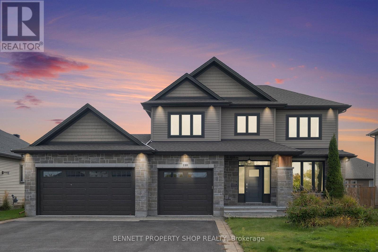 GROWING FAMILIES REJOICE! Discover unparalleled elegance and practicality in this 5-bedroom, 4-bathroom masterpiece by award-winning Talos Homes, spanning over 3,300 sq.ft. on a serene, family-friendly Richmond street. This executive residence blends design with functional sophistication, featuring rich hardwood floors, expansive windows, and a dramatic illuminated solid-wood winding staircase leading to an open-concept layout with a chef's kitchen boasting granite countertops, custom cabinetry, stainless steel appliances, a central island, and a walk-in butler's pantry, flowing into a sophisticated dining room and a cozy living area with a stone gas fireplace. The luxurious primary suite offers a walk-in closet and spa-like ensuite with dual vanities, a soaker tub, and glass shower, while a finished basement provides a 5th bedroom, full bath, and versatile family room. A heated, insulated triple-car garage with EV charging is perfect for enthusiasts, complemented by a fully fenced, irrigated backyard with an automatic sprinkler system with a covered porch and space for a future pool, all steps from parks, top schools with bus pickup, and amenities - 110 Talos Circle is a lifestyle of sophistication; book your private tour today! 4 bedrooms above grade and 1 below grade. Some photos are digitally enhanced. (id:49063)