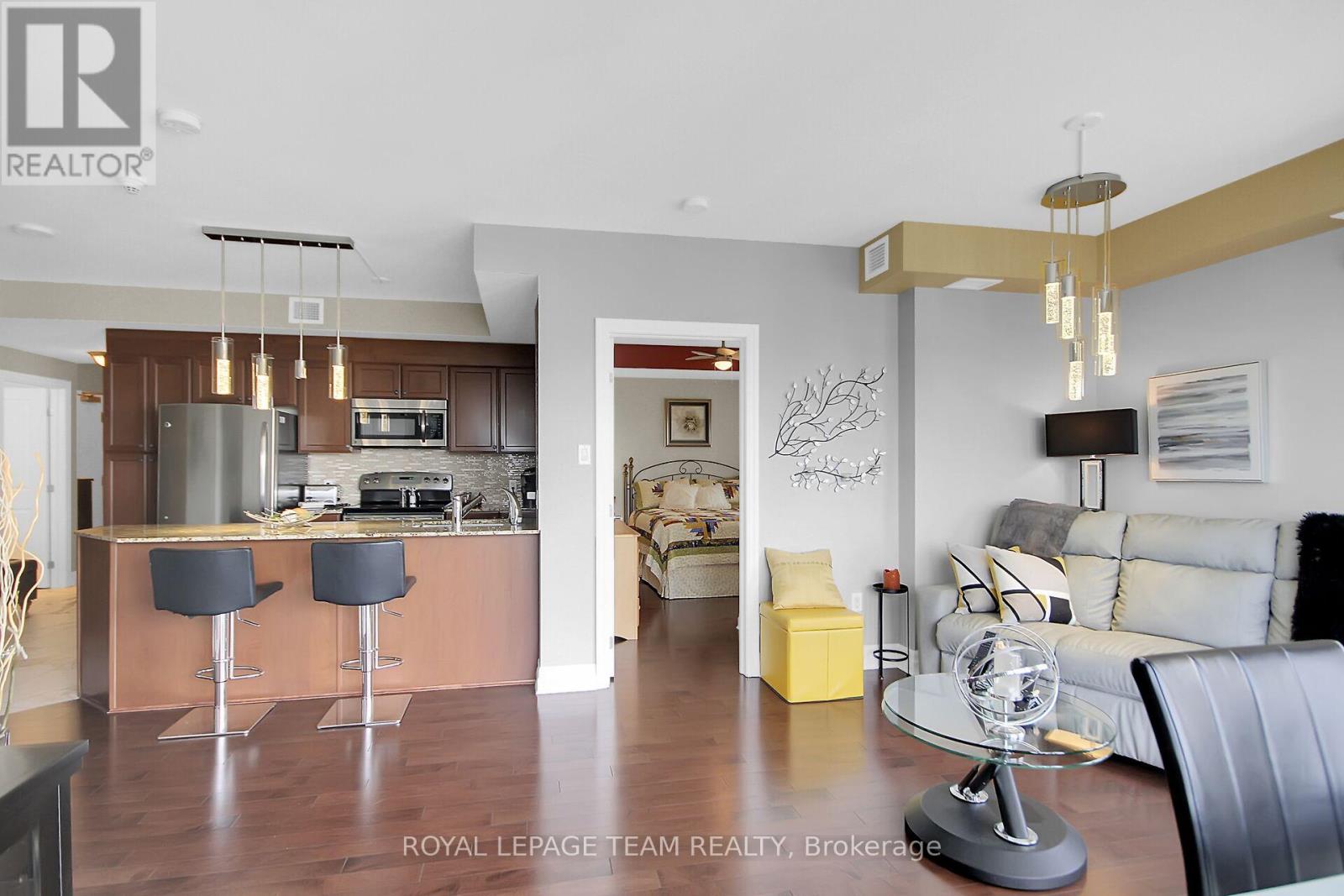 $653.80 MonthlyWelcome to Tiffany 2, St-Laurent condo of 967 SQFT. Enjoy stunning views of the Ottawa/ Gatineau skyline from this luxurious 2-bed, 2-bath corner unit. The open concept features a modern kitchen with granite counters, a large pantry & upgraded appliances. Gleaming hardwood & updated tiles add warmth & elegance. Convenient in-suite laundry & lower-level locker (P2/147) close to underground parking (P2/33)! Extras include over $6K of window covering, ceiling fans, extra bath cabinets, backsplash, TV unit, 2023 washer & dryer & a China cabinet matching the kitchen that is negotiable. Condo fees include water, bike storage, fitness centre, indoor pool, & party room. Walking distance to Beachwood Village, Byward Market, & NCC bike paths along the Rideau River. You have got to Love That Home! F244-24 hrs irrevocable. (id:49063)