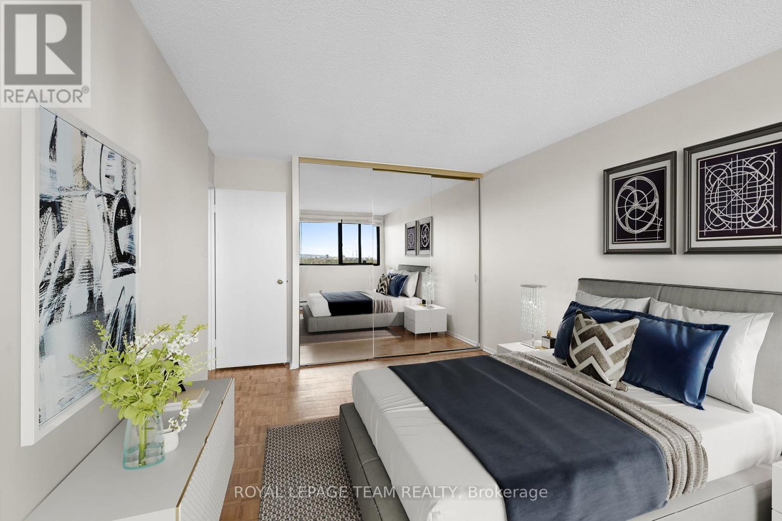 Welcome to Strathmore Towers! Beautifully maintained and perfectly located, this spacious 2-bed, 1-bath condo offers exceptional walkability just steps to South Keys Shopping Centre, restaurants, banking, coffee shops, and everyday essentials. The nearby LRT Transitway provides quick access to downtown, Carleton University, and the University of Ottawa, making this a truly convenient and connected lifestyle. Inside, a welcoming foyer with ceramic tile flooring leads to a bright, open living and dining area with rich parquet flooring and large windows that fill the space with natural light. A generous balcony extends your living area outdoors perfect for morning coffee or evening relaxation. The updated kitchen features raised-panel oak cabinetry, stainless-steel appliances (stove, dishwasher, hood fan), a white refrigerator, and an additional section of upper and lower cabinets for extra storage and workspace. A stacked washer and dryer are neatly tucked behind cabinetry. Two spacious bedrooms offer excellent furniture placement, complemented by an updated bath with a large vanity, oak cabinetry, and standalone shower. A generous linen/storage closet in the hallway plus a large storage room near the entrance provide ample space. Enjoy superb amenities including an outdoor pool, sauna, party room, guest suite, billiards room, and workshop. Condo fees include heat, hydro, water, and building insurance, plus one underground parking space. Immediate occupancy available. No pets and no smoking in unit, balcony or grounds. 24-hour irrevocable on all offers. (id:49063)