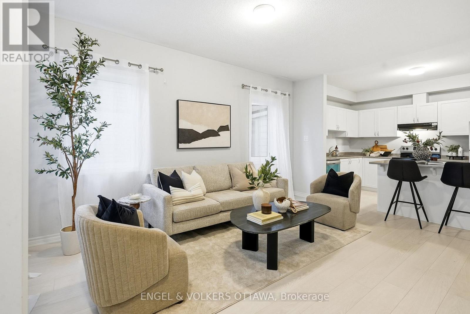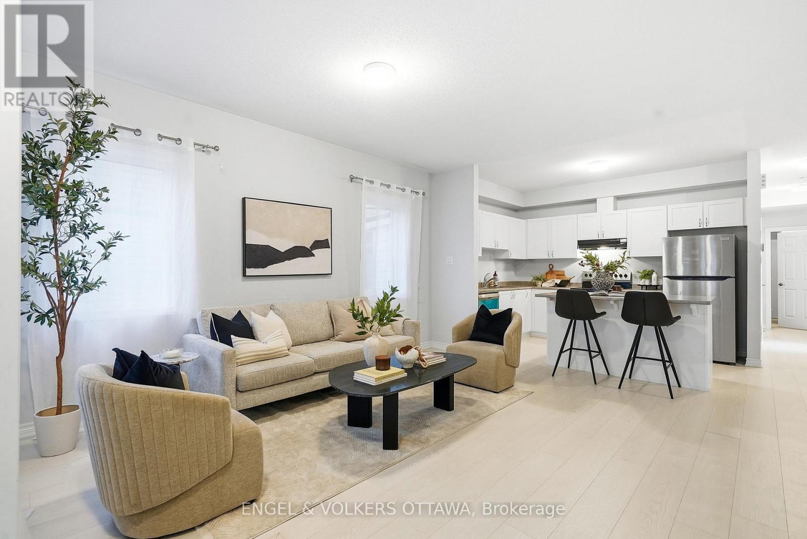 Welcome to 135 Anthracite Private - the highly sought-after Poppy model by Mattamy Homes, built in 2022 and offering over 1,500 sq. ft. of beautifully designed living space.This rarely offered and extremely popular layout features a bright, south-facing open-concept main level filled with natural sunlight. The heart of the home is a stylish kitchen with an eat-in island, seamlessly connected to a welcoming living and dining area - perfect for relaxing or entertaining. A den provides versatile space ideal for a home office or reading nook. The main floor includes two spacious bedrooms, with the primary suite offering a walk-in closet for exceptional storage and comfort. Downstairs, the finished basement provides incredible additional living space - complete with a modern three-piece bathroom, ample storage, and a large family/recreation room that can easily accommodate an extra bedroom if desired. Step outside to enjoy a private rear porch, offering peaceful outdoor living, and benefit from a smart thermostat, durable finishes throughout, and one assigned parking space (#15).Located in a friendly, well-connected community close to parks, schools, shopping, and transit, this sold-out Poppy model combines modern comfort, flexibility, and timeless appeal at an very attractive price - a rare opportunity in one of Ottawa's most desirable family oriented communities. 24 hour irrevocable on all offers. (id:49063)