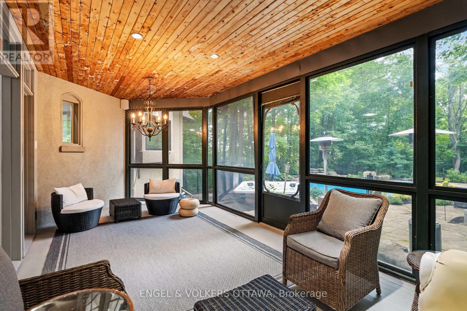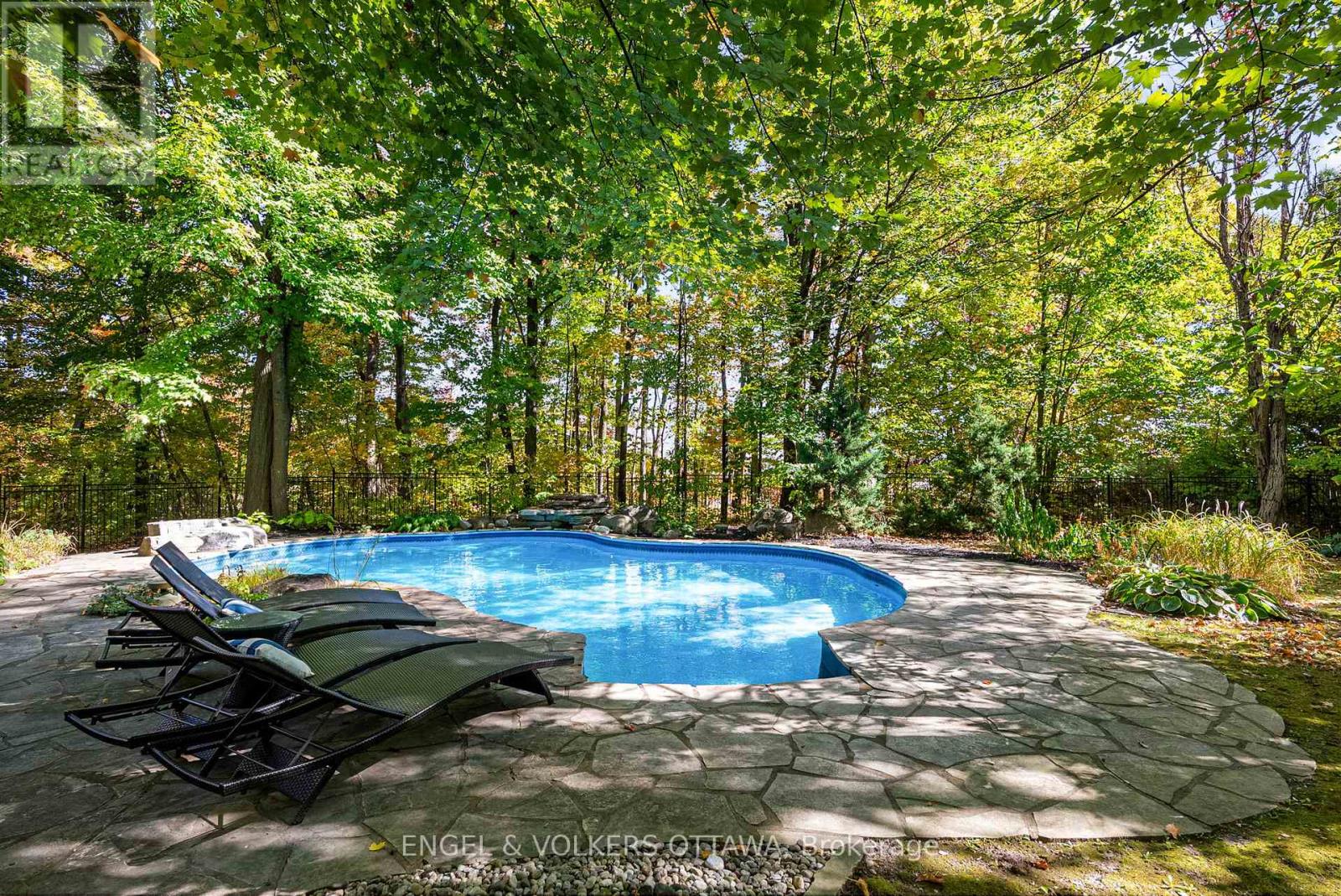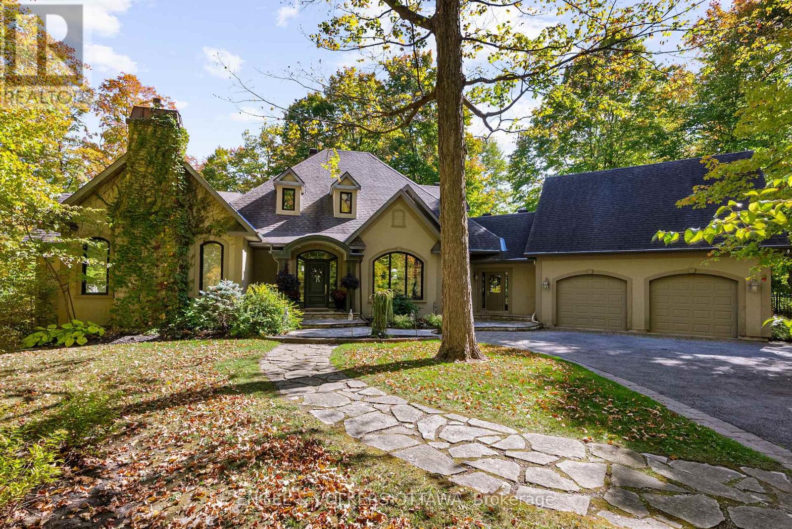 Designed by renowned architect Gerhard Linse, this award-winning home blends timeless elegance with modern luxury. Set on a private 2-acre lot in a prestigious estate enclave, this exceptional home offers a peaceful retreat just minutes from Kanata North and . Enjoy a breathtaking living room with panoramic windows and a new deck overlooking the lush backyard with a heated saltwater pool, hot tub, and gardens. The chef's kitchen features custom cabinetry, a gas range, built-in pantry, and bistro-style dining area.The main-floor primary suite is a spa-inspired retreat with marble finishes, a soaker tub, double vanity, and glass shower. Upstairs, two bedrooms share a stylish Jack & Jill bath.The walk-out lower level adds a bedroom, games and theatre rooms, wood-burning fireplace, and new full bath. Major updates include new furnace, triple-pane windows, reverse-osmosis water treatment, high-end bathroom renovations and much more. Incredible location moments to the sought-after Kanata North - Ottawas Premier Tech Hub, enjoy proximity to leading tech companies such as Nokia, Mitel, Ciena and Cisco. Top-rated schools, both public and private are minutes away: Kanata Montessori School, March Academy, Blue Sky School, Peak Center Academy, Kanata Academy, St.Isidore Catholic School and many more. ****Visit the listing website for full details and list of updates.**** (id:49063)