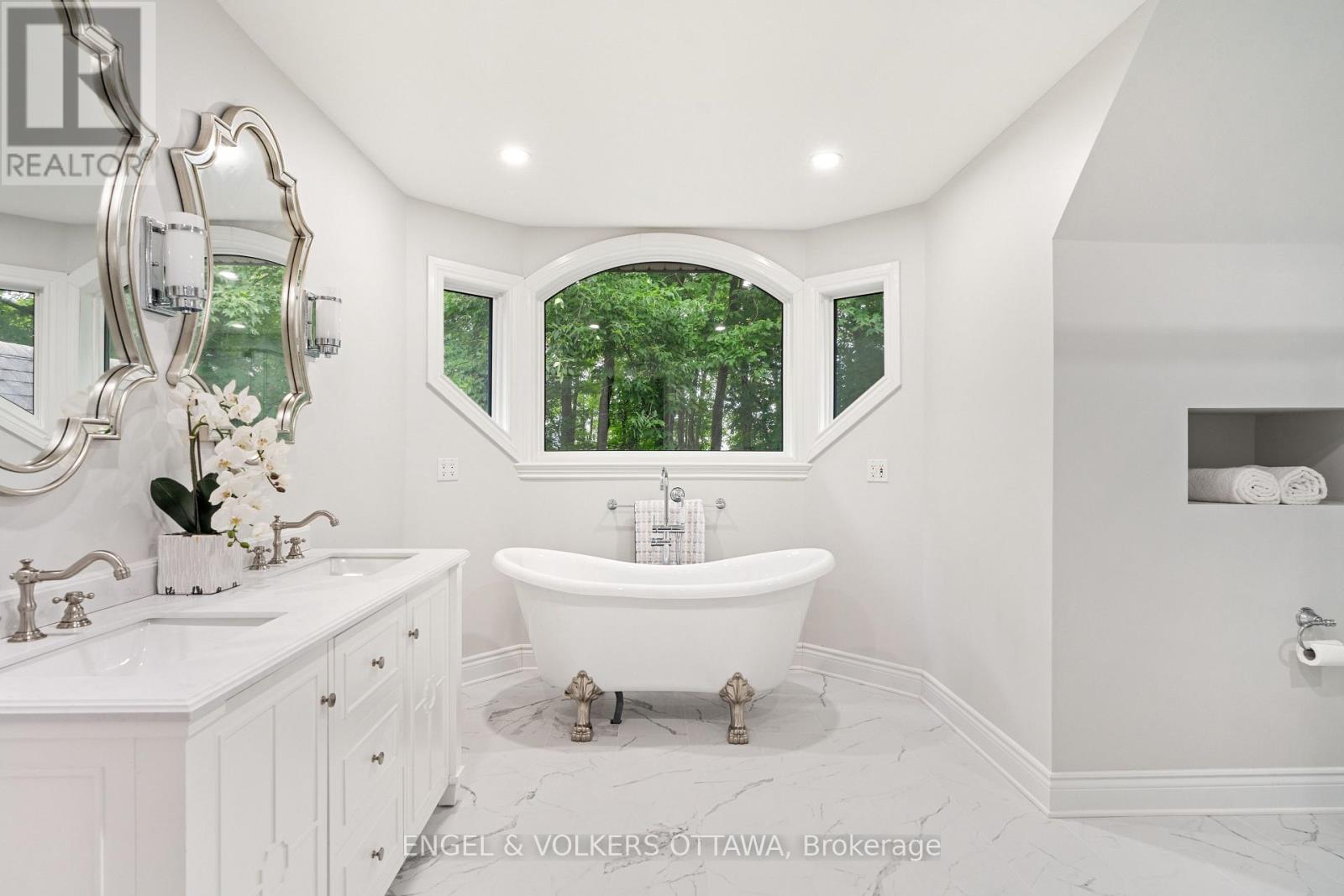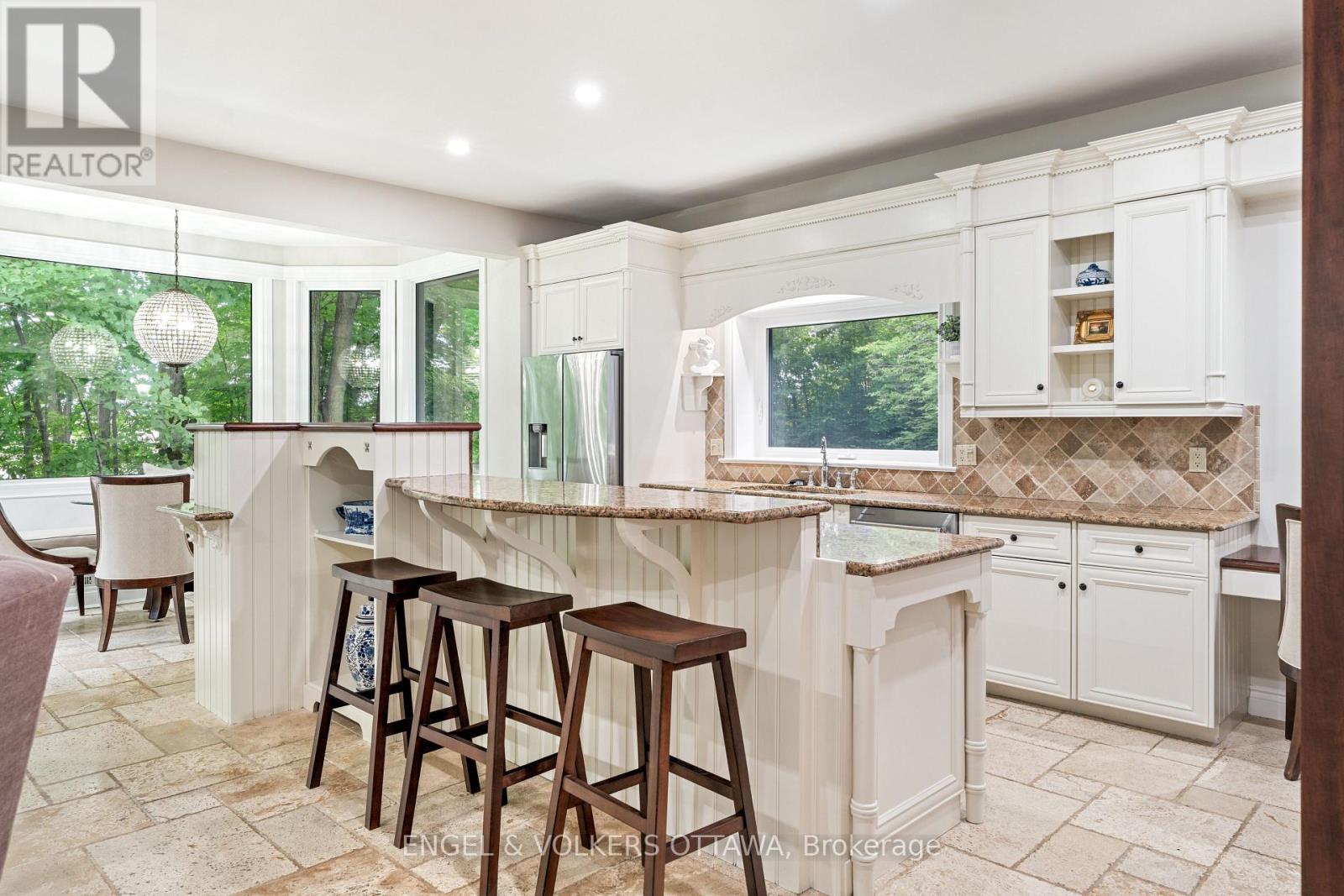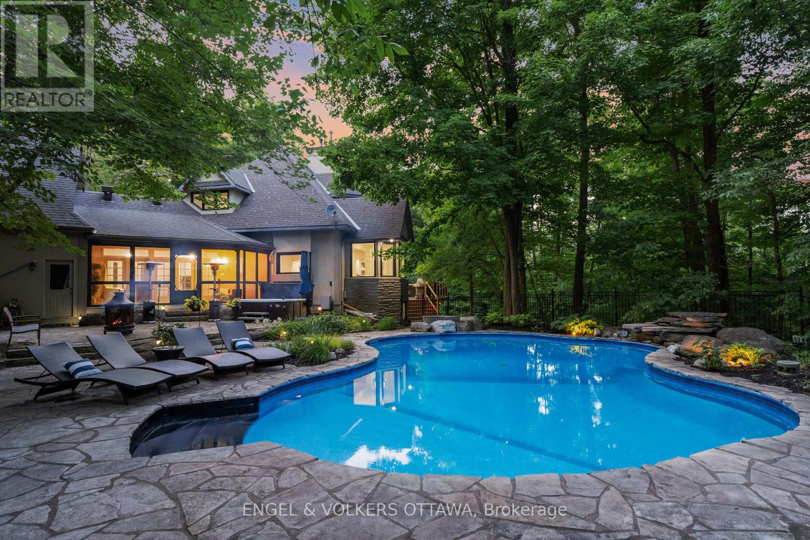 Designed by renowned architect Gerhard Linse, this award-winning home blends timeless elegance with modern luxury. Set on a private 2-acre lot in a prestigious estate enclave, this exceptional home offers a peaceful retreat just minutes from Kanata North and . Enjoy a breathtaking living room with panoramic windows and a new deck overlooking the lush backyard with a heated saltwater pool, hot tub, and gardens. The chef's kitchen features custom cabinetry, a gas range, built-in pantry, and bistro-style dining area.The main-floor primary suite is a spa-inspired retreat with marble finishes, a soaker tub, double vanity, and glass shower. Upstairs, two bedrooms share a stylish Jack & Jill bath.The walk-out lower level adds a bedroom, games and theatre rooms, wood-burning fireplace, and new full bath. Major updates include new furnace, triple-pane windows, reverse-osmosis water treatment, high-end bathroom renovations and much more. Incredible location moments to the sought-after Kanata North - Ottawas Premier Tech Hub, enjoy proximity to leading tech companies such as Nokia, Mitel, Ciena and Cisco. Top-rated schools, both public and private are minutes away: Kanata Montessori School, March Academy, Blue Sky School, Peak Center Academy, Kanata Academy, St.Isidore Catholic School and many more. ****Visit the listing website for full details and list of updates.**** (id:49063)