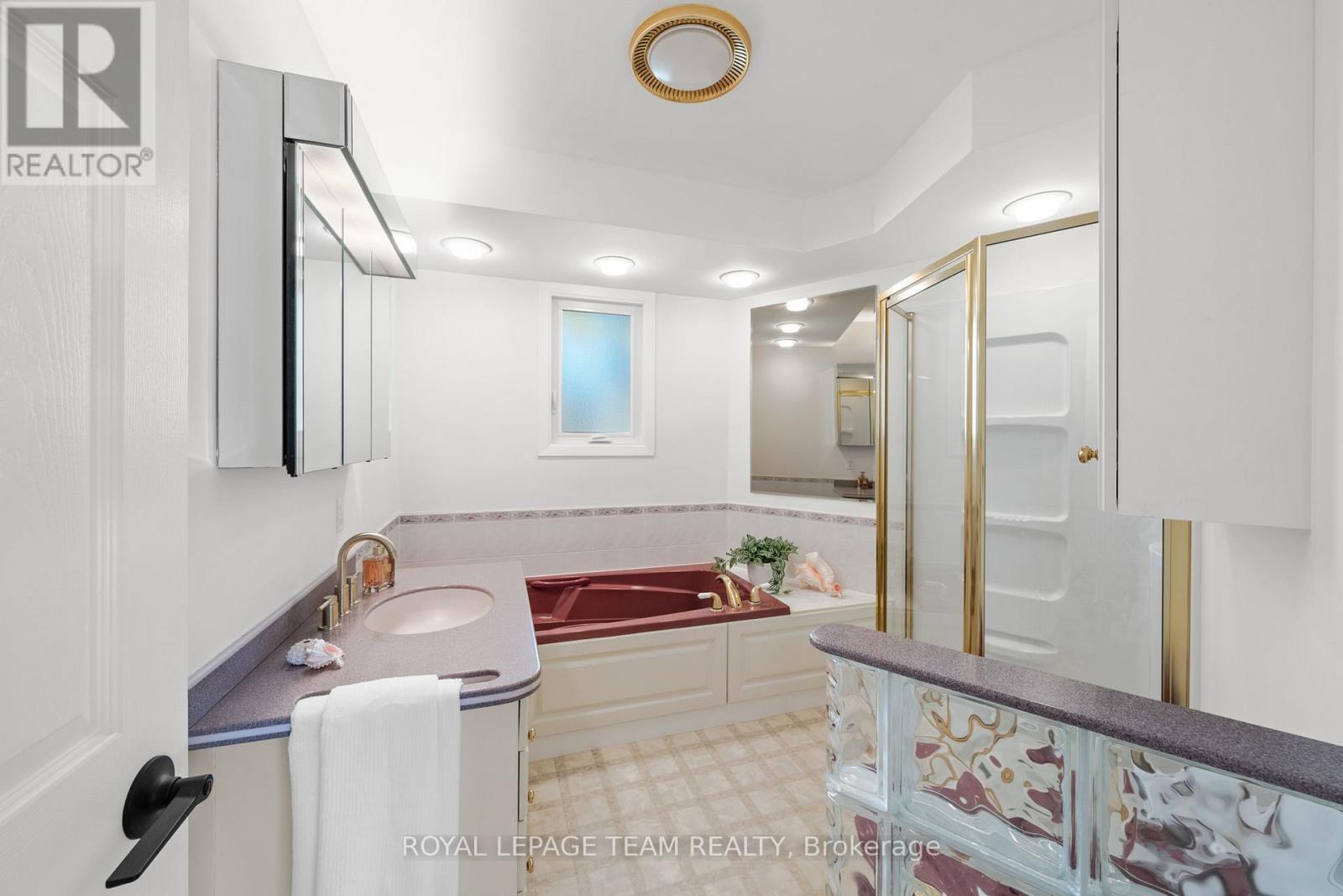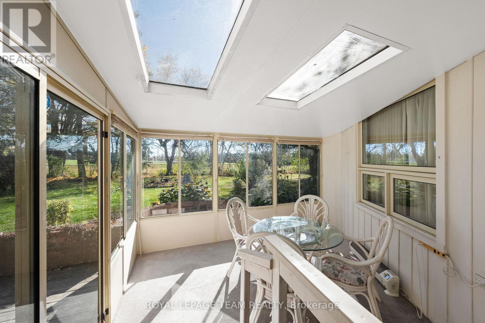 Set back on a quiet cul-de-sac, this beautifully presented custom-built bungalow occupies an almost half-acre lot in an established, family-oriented neighbourhood. Enjoy the convenience of nearby amenities while benefiting from a peaceful and private setting. The thoughtfully designed layout creates a welcoming environment for family living, balancing formal and intimate spaces. The main floor offers four bedrooms and three bathrooms, including a primary bedroom with a three-piece ensuite. Gather in the living room with its bay window overlooking the landscaped front yard gardens, host in the formal dining room, or unwind in the six-sided sunken family room. The kitchen opens seamlessly to the living room and features warm brown Cambria quartz countertops, creating an inviting space for daily living and entertaining. A bright three-season sunroom provides tranquil views of the backyard gardens. In the lower level, the semi-finished space offers versatility and can be completed to your preferences. Outside, the backyard is a peaceful retreat framed by mature trees, creating a sense of privacy. With southern exposure, the yard enjoys natural light throughout the day, highlighting its park-like setting. Additional features include a patio, greenhouse and three storage sheds, ideal for gardening and outdoor hobbies. Some photographs have been virtually staged. (id:49063)