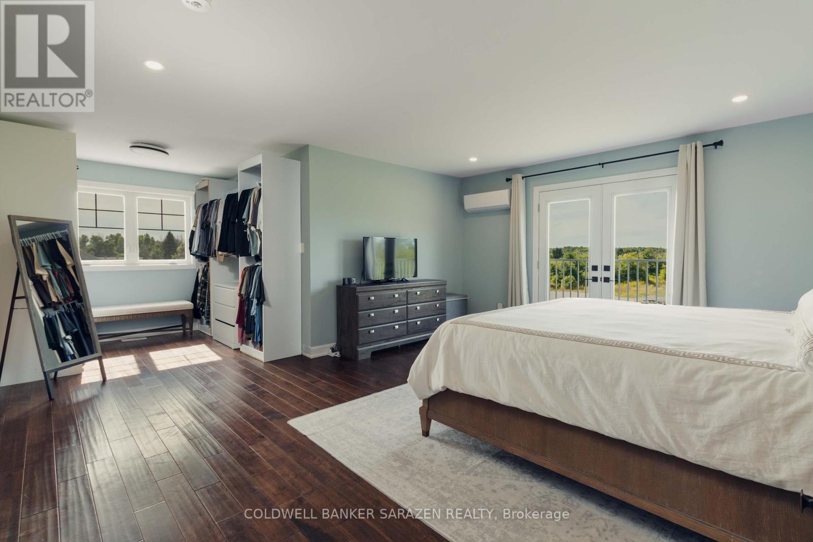 Spacious 2 level 2 bdrm/3bath home with Country Charm throughout on majestic 1.2 Acre manicured lot. Front porch/back deck, Double attach garage, Open Concept layout with wide plank wood flooring, pot lights, gourmet kitchen with top end stainless steel appliances and quartz countertops, wood burning fireplace, barn doors, Huge master bdrm with walk in closets, Julliet balcony and luxury ensuite bath, full basement with 9 ft ceilings and rough in for extra bath and prime cul de sac location amongst million dollar homes. (id:49063)