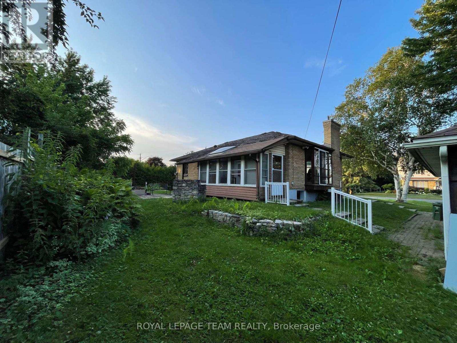 Exceptional 131.84 x 107.86 irregular corner lot in the desirable Crestview, Meadowlands, Woodroffe area, selling for potential land value. Includes an existing bungalow and a detached garage 'as is', but the true potential lies in redevelopment (subject to severance). Ideally located near schools, Olmstead Park, public transit, and shopping. A rare opportunity for builders or investors in a well-established, growing neighborhood. 'Go and show' through the Showing System. Please note: there is no access to or viewings of the interior of the bungalow. Exterior viewings only. (id:49063)