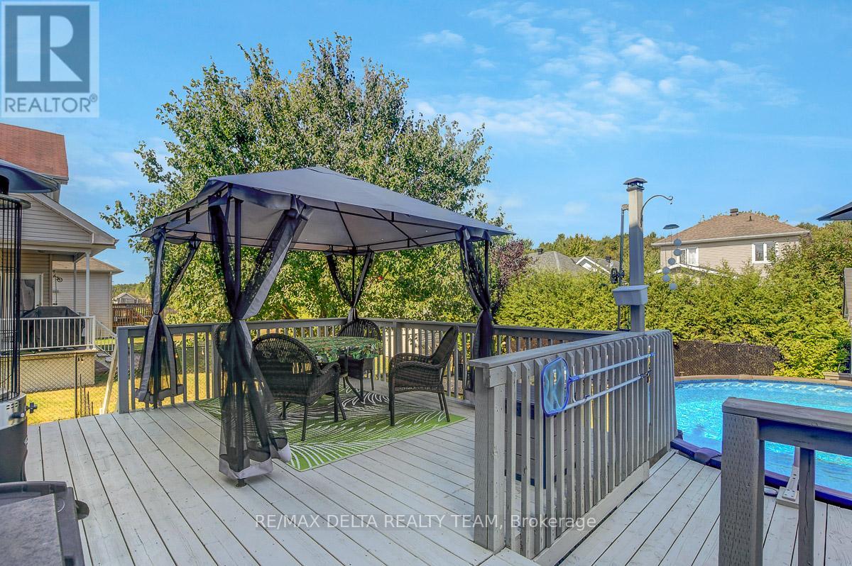 This home is a 10 on 10! Stunning 2-Storey Detached Home in a Prime Established Neighbourhood! Welcome to this beautifully updated and meticulously maintained home, where modern style meets everyday comfort. Set in a mature, highly sought-after community, this stone-front beauty offers exceptional living inside and out - just minutes from top amenities, parks, and schools. Step inside to a freshly painted, open-concept layout featuring gleaming hardwood floors, a bright and spacious living room, and a generous dining area perfect for entertaining. The modern kitchen impresses with white cabinetry, matte black stainless steel appliances, and a smart, functional design ideal for cooking and gatherings. Upstairs boasts more hardwood flooring and a luxurious 4-piece bath with a spa-inspired soaker tub, creating your personal retreat. The fully finished basement adds incredible versatility - featuring a large family room, designer carpet, a built-in electric fireplace, a full bath with glass shower, and heated floors for extra comfort. Step outside to your private, fully fenced backyard oasis with a sparkling pool, two-tier deck with gazebo, fire pit, and custom shed with garage door - perfect for summer living and entertaining. Additional highlights include permanent holiday lighting, soffit pot lights, central vacuum, water softener, and an owned tankless water heater. Move-in ready and full of upgrades, this home delivers the perfect balance of style, function, and location. (id:49063)