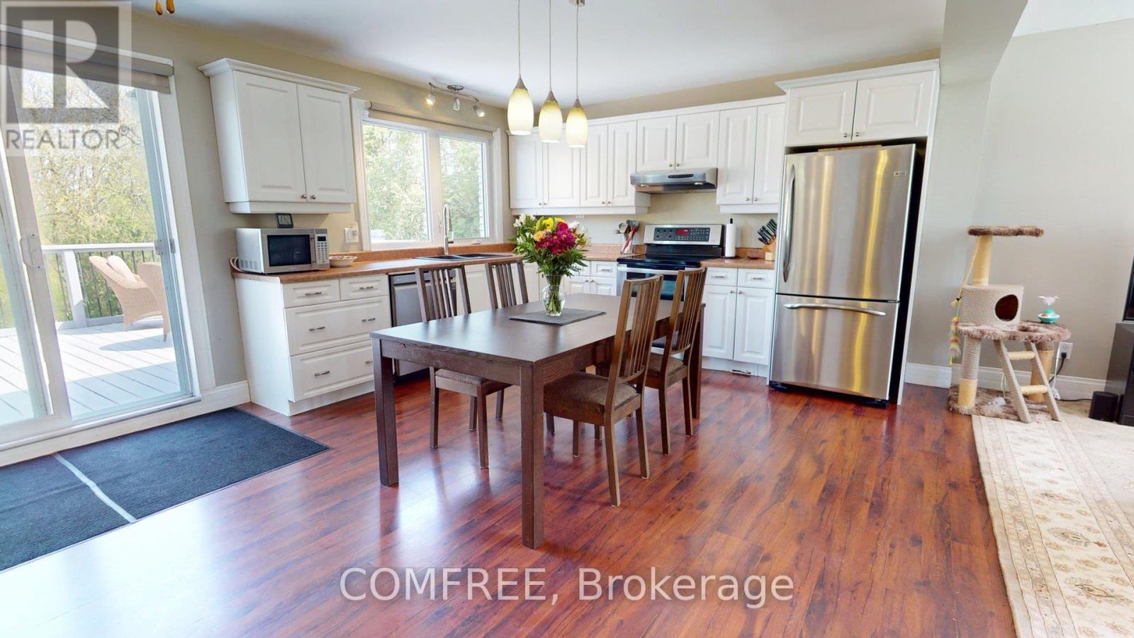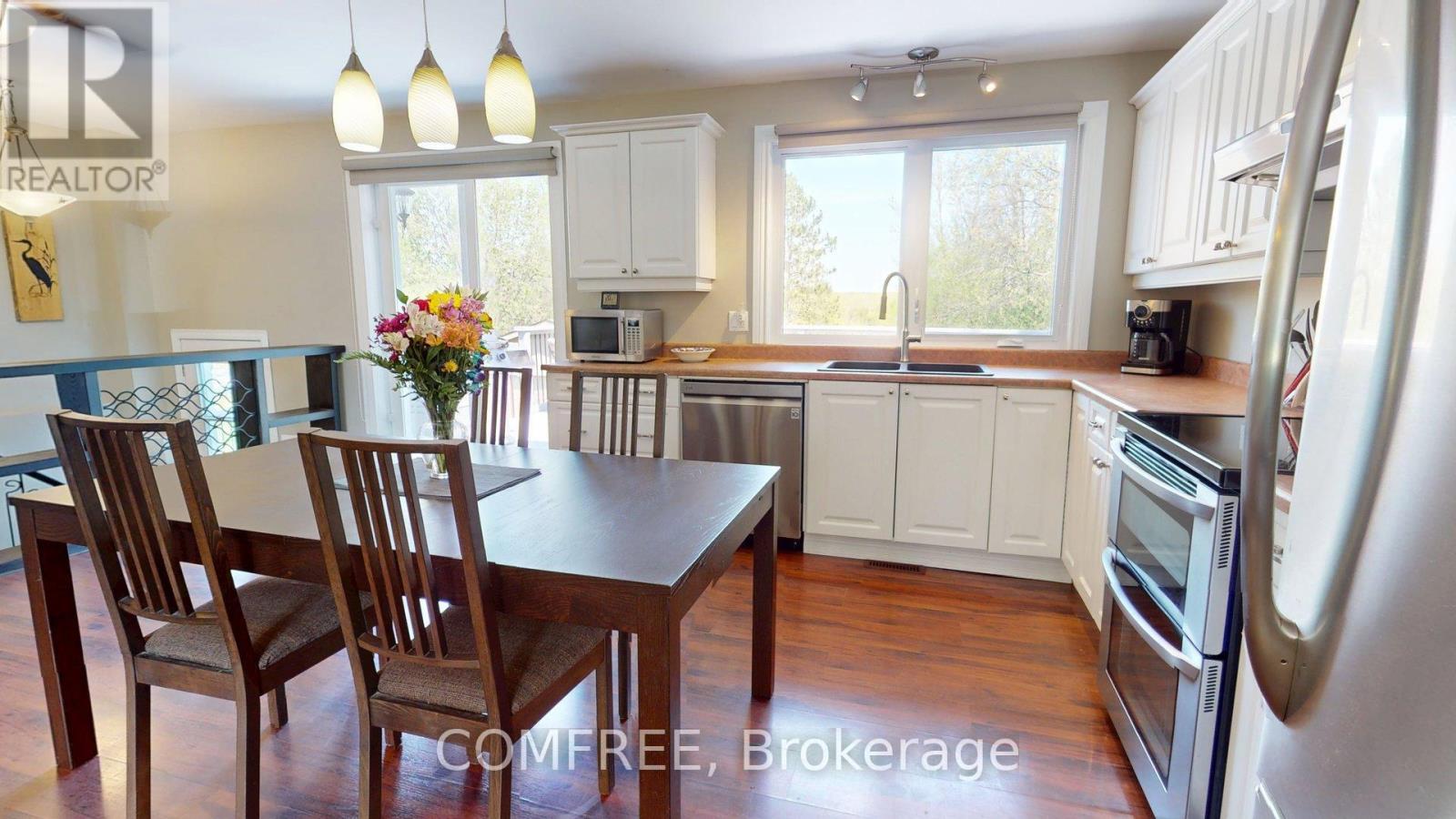 Nestled along the scenic Ottawa River in the tranquil village of Chute-a-Blondeau, this stunning 3-bedroom, 2-bathroom waterfront bungalow is the perfect blend of serenity and convenience. Located just 10 km from the Ontario/Quebec border (via Highways 417/40), its ideally situated for easy commuting only 35 minutes to Vaudreuil, 45 minutes to the West Island, and 70 minutes to Ottawa. Whether you're headed to the West Island or Mirabel, this home offers the best of both worlds: a peaceful waterfront setting with quick access to city amenities. This 1,180 sq. ft. stone and brick beauty features an open-concept layout with plenty of natural light, creating a welcoming atmosphere throughout the home. The spacious living room is perfect for entertaining, while the well-appointed kitchen offers easy access to the outdoor spaces. The fully finished lower level is a standout, offering a large recreation/family room thats perfect for relaxation and entertainment. A propane gas stove adds a cozy ambiance during the cooler months. Step outside, and you'll find three separate decks each providing fantastic views of the river and plenty of space for outdoor entertaining. A carport ensures your vehicle is covered year-round, and the 20x24 ft detached garage/workshop offers additional space for your hobbies. The docking system provides easy access to the river for boating, fishing, or simply enjoying the water. The property is situated on elevated land, 60 feet above the waterline, with no flood risk, thanks to water levels regulated by the Quebec Hydro Carillon Dam located just 8 km downstream. Recent updates include a new propane furnace and central A/C (2019), new roof and eavestroughs (2021), new upper-level windows (2021), and a new electric water heater (2019). The septic system was recently inspected in 2024, with the report available. Whether you're seeking a peaceful waterfront retreat, a family-friendly home, or a commuters dream, this property offers it all. (id:49063)
