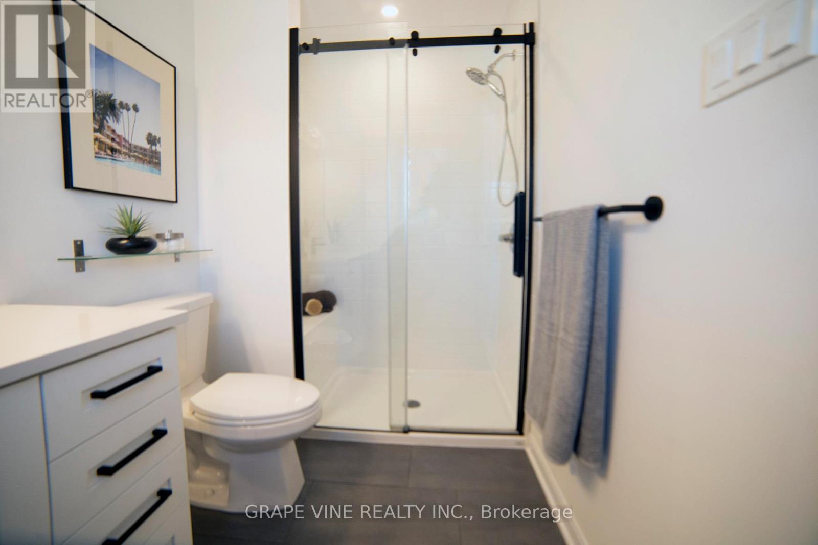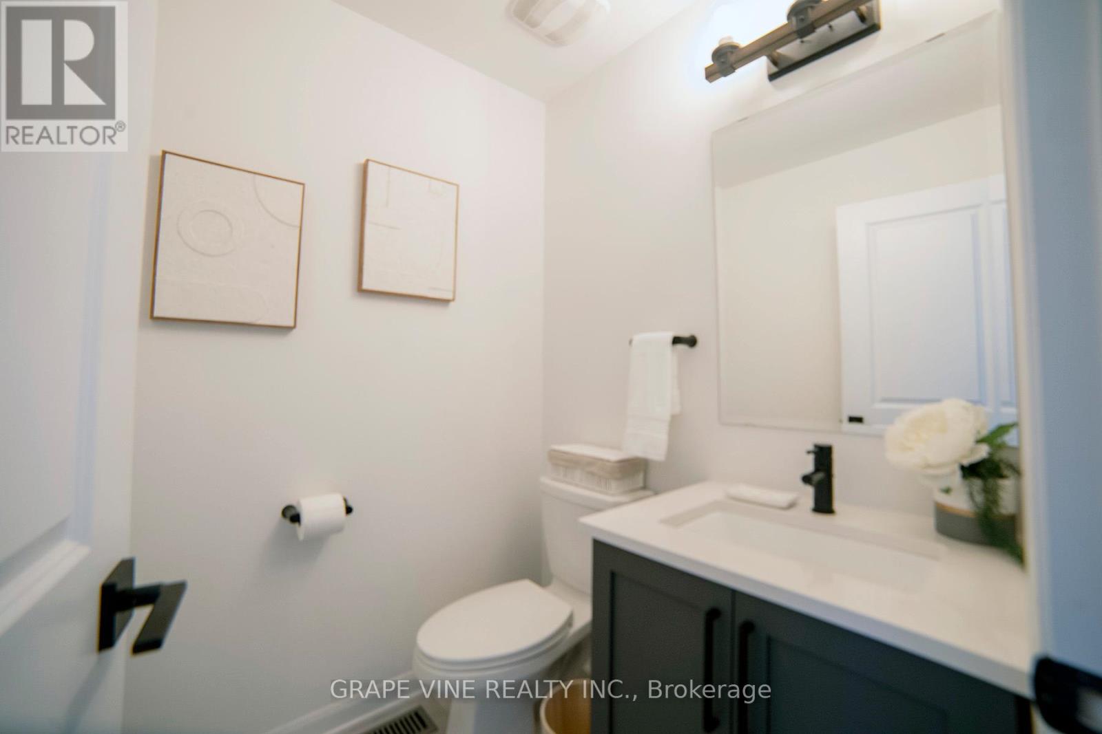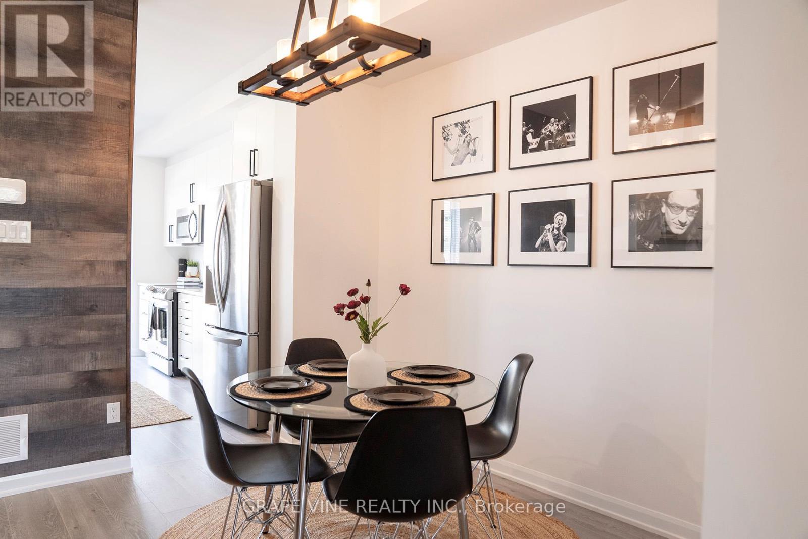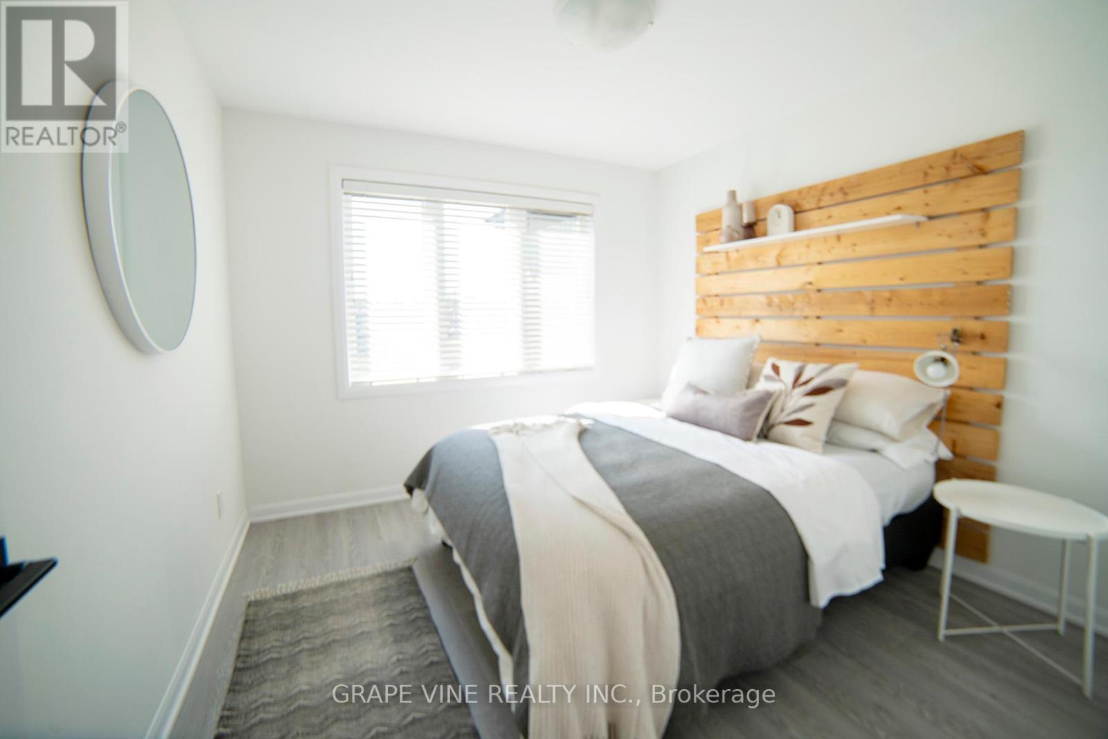 Welcome to this beautiful upgraded, move-in ready 3-bedroom contemporary townhome featuring $60K+ in premium upgrades. High-end laminate flooring throughout, including the finished basement. The open-concept kitchen boasts quartz counters, an oversized island, sleek backsplash & stainless steel appliances, perfect for entertaining. Bright living room with large windows & custom fireplace with rustic beam mantel and board-and-batten detail. Upstairs offers a spacious primary suite with walk-in closet & spa-like ensuite, plus two bright south-facing bedrooms and a full bath. Additional upgrades include quartz counters in all baths, pot lights, California shutters, custom roller blinds, upgraded hardware thruout + iron spindle staircase, customized lighting, eavestroughs, w/d and more. Steps to schools, transit, shopping, parks, & rec centre. A stylish, sun-filled home in a welcoming family community. (id:49063)
