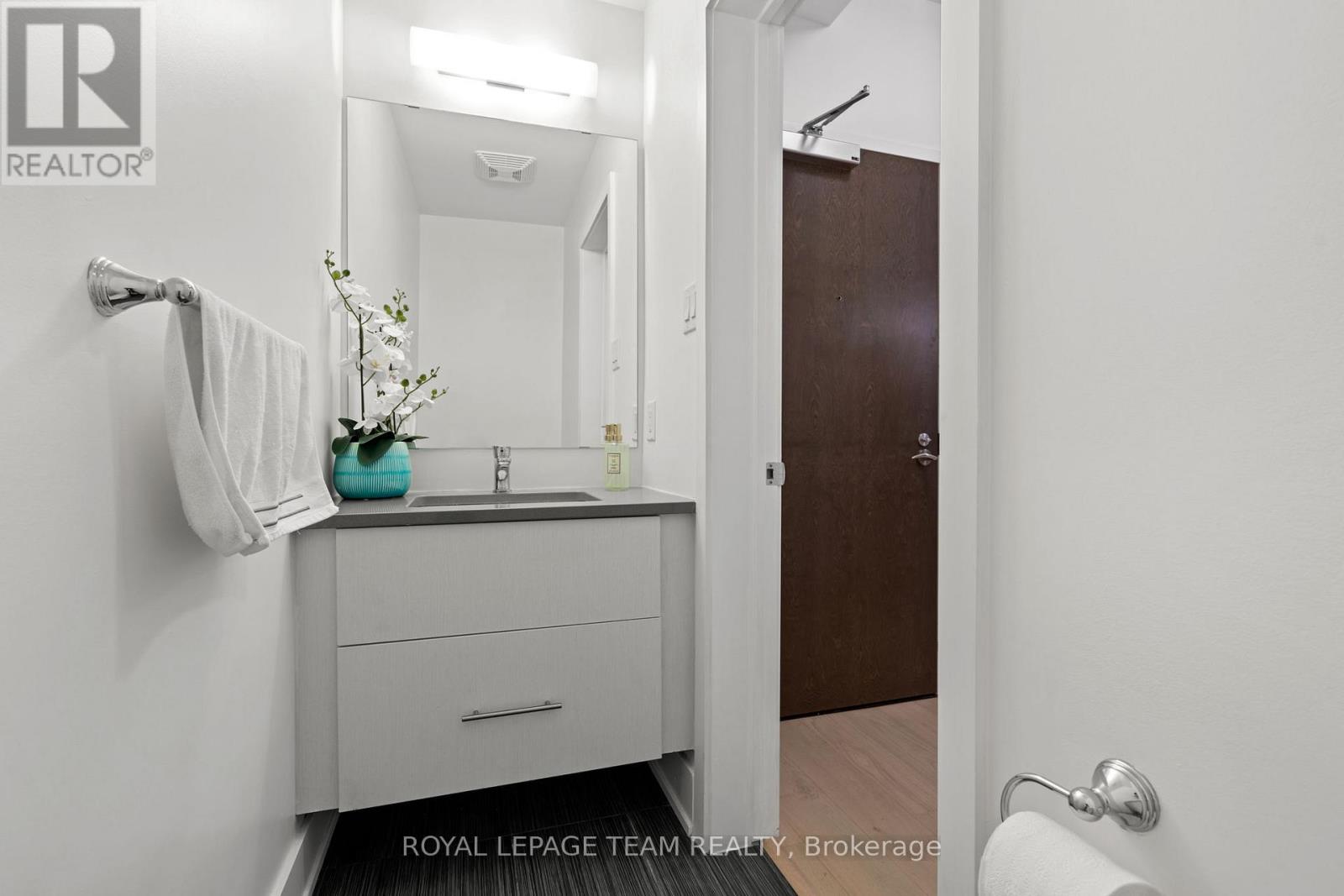 Live in the heart of trendy and highly sought-after Westboro! This 1 bed 2 bath spacious unit has a total of 746sq.ft including balcony! Open concept layout, with floor-to-ceiling windows, a bedroom with a walk in closet and 3 piece ensuite, also a powder room. Unit offers high-end features such as quartz countertops, rich hardwood floors, stainless steel appliances, a large kitchen island with generous built-in storage, glass-panelled balcony and in-suite laundry. Enjoy access to the high-end amenities including a gorgeous rooftop terrace with 360 degrees views of the city, BBQs, lounge chairs and patio furniture, 3 gyms, 4 party rooms, theatre room, game room, pet grooming, ski/bike tune-up and bike storage. Convenient storage locker on 4th floor. By making QWest your new home, you will have doorstep access to top rated restaurants, gastro pubs, bars, cafes, shops, parks, schools, LRT station and more. Spacious parking spot, brand new hardwood floors, and freshly painted throughout. Some photos are virtually staged. (id:49063)