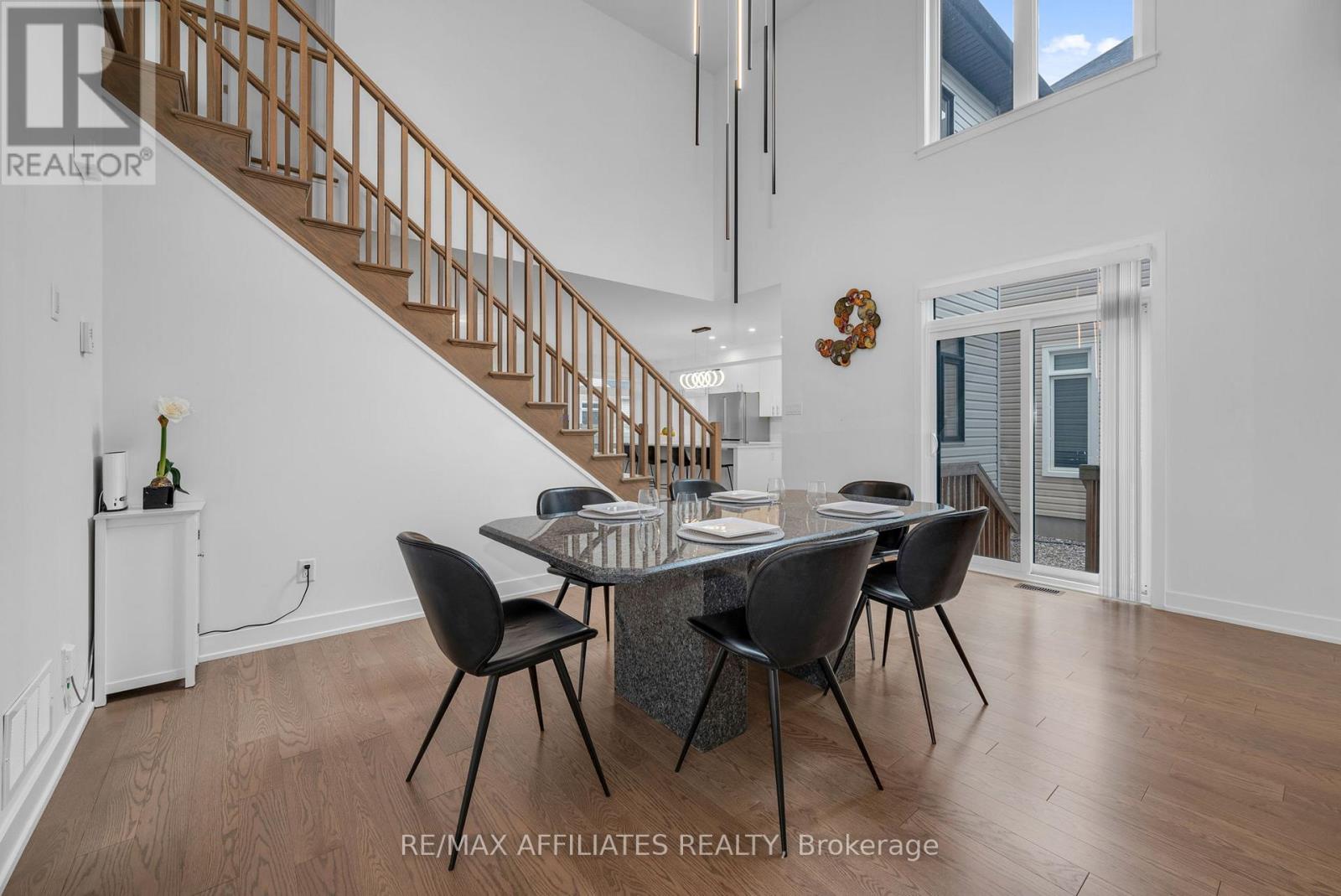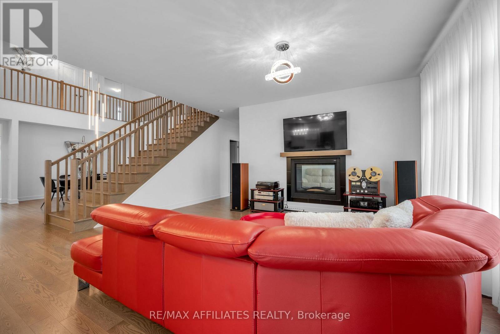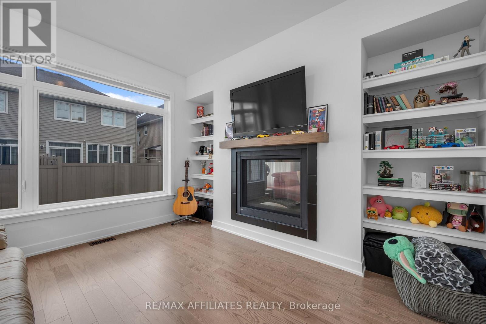 This beautifully upgraded Claridge Lockport II offes over 3,600 sq. ft. above grade, plus a well designed rec room in basement. Perfectly situated in one of Stittsville's most family-friendly neighbourhoods, this home blends space, style, and comfort. Step inside and immediately feel the spaciousness of this thoughtfully designed layout. The bright foyer opens to a separate family room filled with natural light from large windows, creating an inviting first impression. As you move through the home, the elegant formal dining area welcomes you with soaring vaulted ceilings and rich, upgraded wide-plank hardwood floors that seamlessly flow throughout the main level. At the heart of the home is the expansive kitchen, ideal for both everyday living and entertaining. It features quartz countertops, a large island with seating, and ample cabinetry. The kitchen flows effortlessly into the living room, where a cozy gas fireplace creates the perfect gathering spot. A casual dining area just off the kitchen provides access to the fully fenced backyard. Adjacent to the main living area, a quiet office or den with its own fireplace offers the perfect space to work from home or unwind in peace. Nine-foot ceilings on the main floor enhance the openness and upscale feel of the home. Upstairs, the spacious primary suite offers a generous walk-in closet and a luxurious ensuite with a double vanity, freestanding soaker tub, and glass-enclosed shower. Three additional bedrooms are bright and well-sized, complemented by a stylish main bath. The finished basement provides incredible flexibility. Whether you envision a home theatre, gym, or playroom there's space for it all. Additional highlights include a double-car garage, upgraded lighting, central air conditioning, and fenced yard. All of this is located just minutes from top-rated schools, parks, trails, shopping, and public transit. (id:49063)