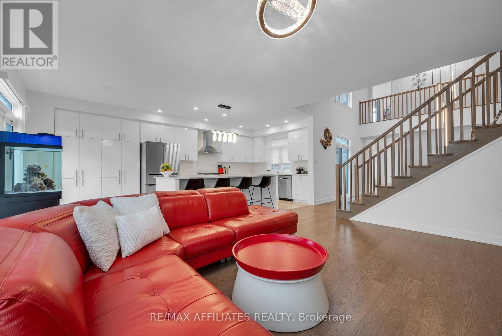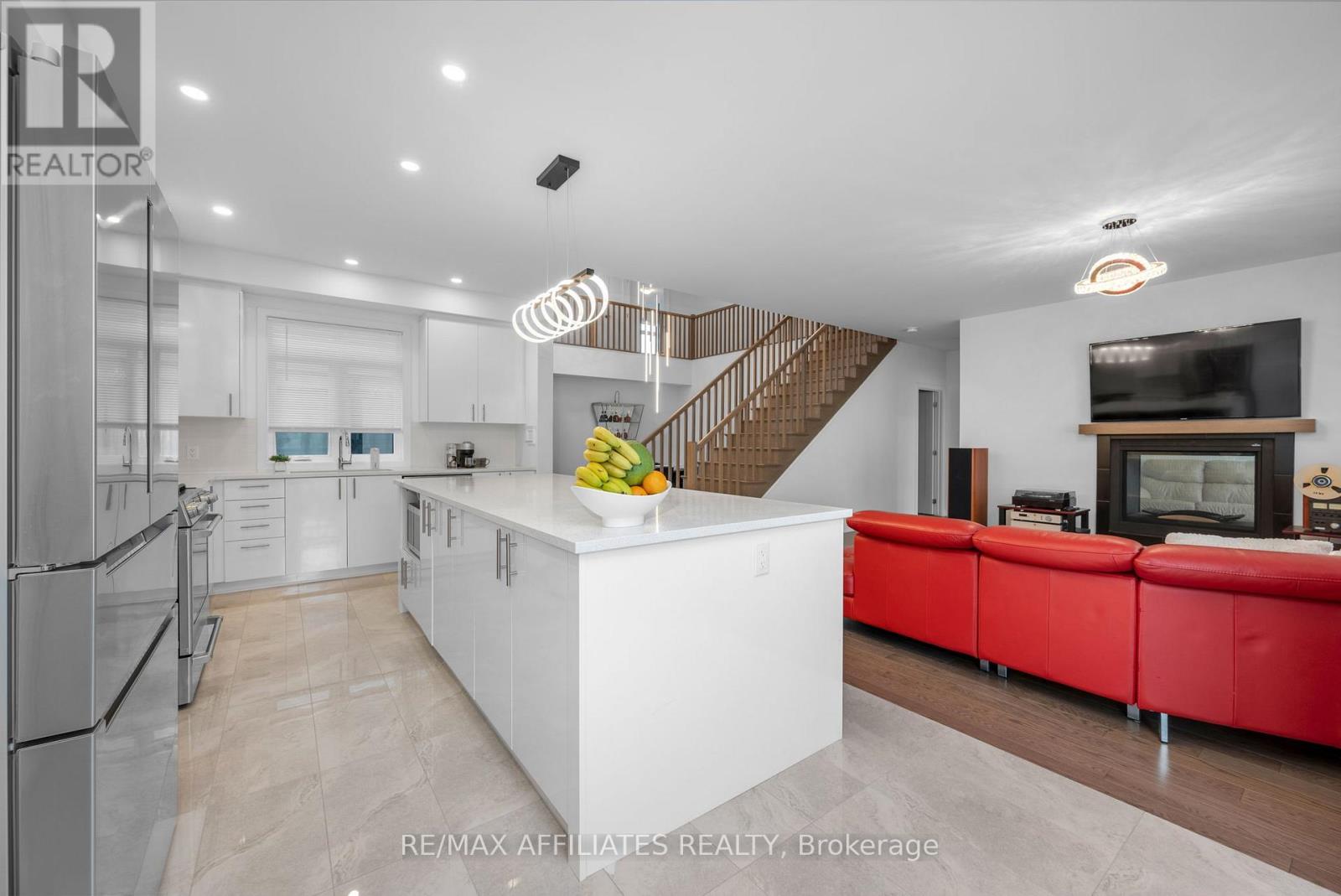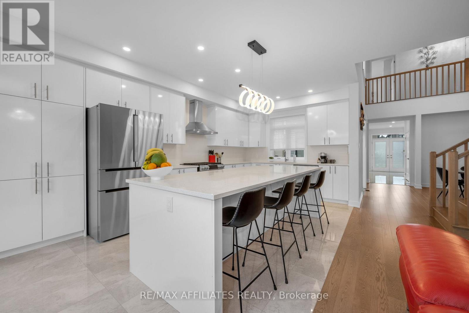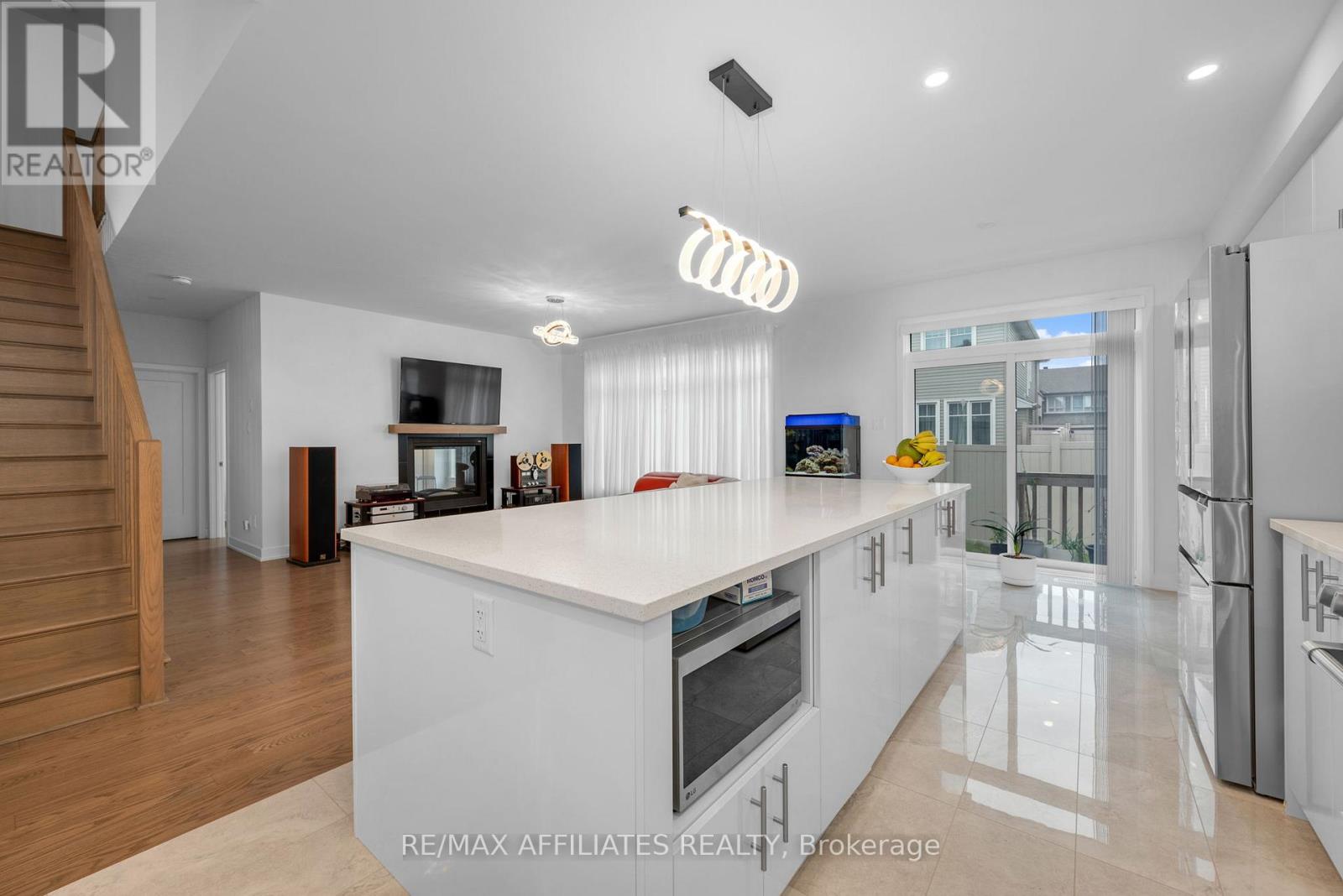 This beautifully upgraded Claridge Lockport II offes over 3,600 sq. ft. above grade, plus a well designed rec room in basement. Perfectly situated in one of Stittsville's most family-friendly neighbourhoods, this home blends space, style, and comfort. Step inside and immediately feel the spaciousness of this thoughtfully designed layout. The bright foyer opens to a separate family room filled with natural light from large windows, creating an inviting first impression. As you move through the home, the elegant formal dining area welcomes you with soaring vaulted ceilings and rich, upgraded wide-plank hardwood floors that seamlessly flow throughout the main level. At the heart of the home is the expansive kitchen, ideal for both everyday living and entertaining. It features quartz countertops, a large island with seating, and ample cabinetry. The kitchen flows effortlessly into the living room, where a cozy gas fireplace creates the perfect gathering spot. A casual dining area just off the kitchen provides access to the fully fenced backyard. Adjacent to the main living area, a quiet office or den with its own fireplace offers the perfect space to work from home or unwind in peace. Nine-foot ceilings on the main floor enhance the openness and upscale feel of the home. Upstairs, the spacious primary suite offers a generous walk-in closet and a luxurious ensuite with a double vanity, freestanding soaker tub, and glass-enclosed shower. Three additional bedrooms are bright and well-sized, complemented by a stylish main bath. The finished basement provides incredible flexibility. Whether you envision a home theatre, gym, or playroom there's space for it all. Additional highlights include a double-car garage, upgraded lighting, central air conditioning, and fenced yard. All of this is located just minutes from top-rated schools, parks, trails, shopping, and public transit. (id:49063)