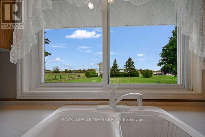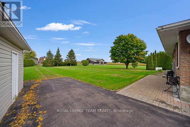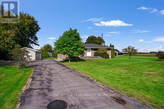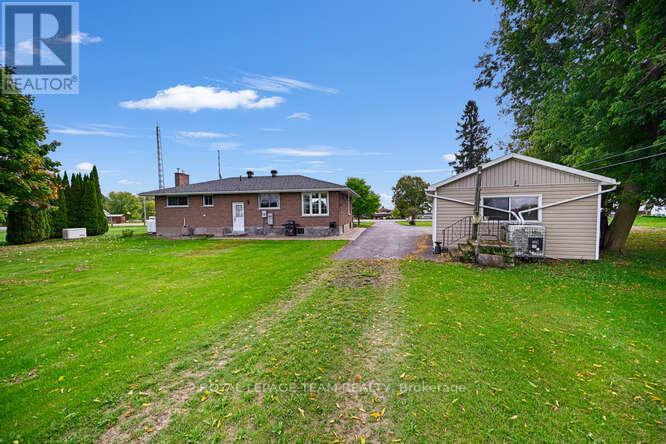 Absolutely lovely country living in a clean and modern brick bungalow. From your kitchen sink enjoy fields of corn as far as the eye can see, and cattle grazing. Close to all major transportation, including the International Bridge. One hour to Ottawa via Hwy 416. Partial River views, near parks, boat launches, and all the Seaway offers. Close to Convenience Store and Gas Mart. Open and renovated kitchen with island, all appliances included as is. Gleaming hardwood throughout with ceramic accents. 2 large bedrooms. One full bath with whirlpool tub, corner shower, vanity, sink, and the laundry. Basement has one bedroom with egress window, and closets. 2 Utility rooms. Large Family Room, has gas stove, cushioned flooring. Linen closet, entry closet. Security lock. Remote Garage Door on the 16' by 30', steel roofed, one car garage. Clothesline and water gather back of garage. Nicely landscaped with interlocking on walkways, flowering shrubs, and raised gardens. New roof 2023, Windows 2015, Furnace and Stove 2017. All other upgrades found in Documents. Property being sold AS IS. 24 Hour Irrevocable. (id:49063)