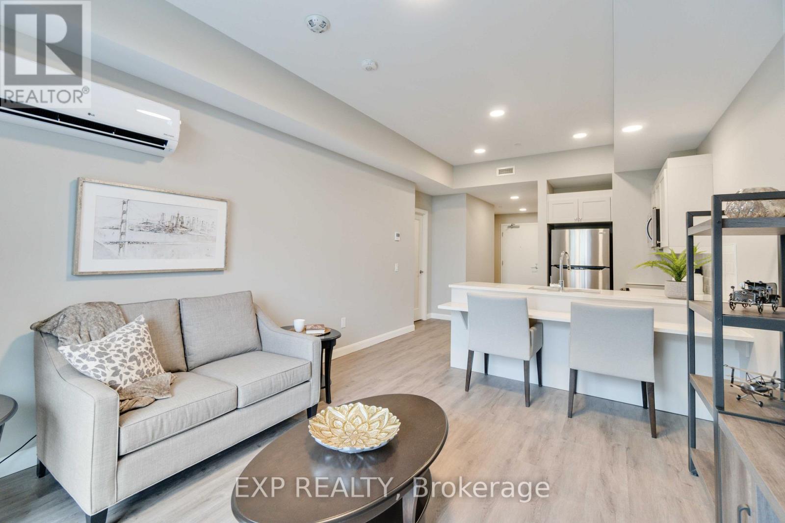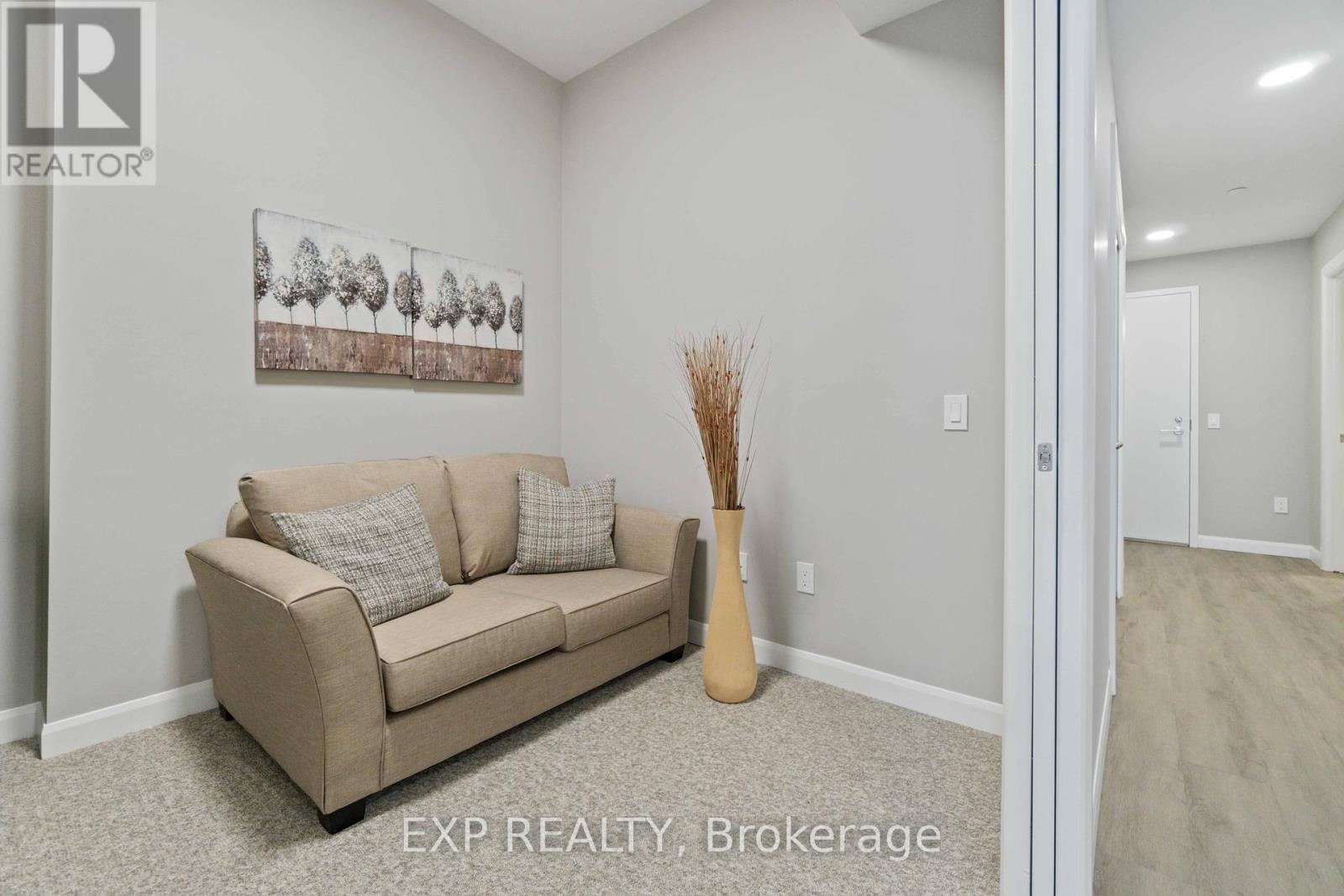 Welcome to Lanark Lifestyles luxury apartments! This four-storey complex situated on the same land as the retirement residence. The two buildings are joined by a state-of-the-art clubhouse and is now open which includes a a hydro-therapy pool, sauna, games room with pool table etc., large gym, yoga studio, bar, party room with full kitchen! In this low pressure living environment - whether it's selling your home first, downsizing, relocating - you decide when you are ready to make the move and select your unit. This beautifully designed Studio plus den unit with quartz countertops, luxury laminate flooring throughout and a carpeted Den for that extra coziness. Enjoy your tea each morning on your 65 sqft balcony. Book your showing today! Open houses every Saturday & Sunday 1-4pm (id:49063)