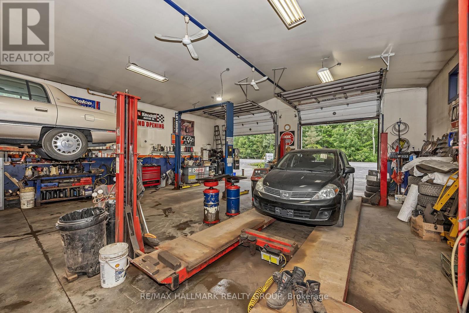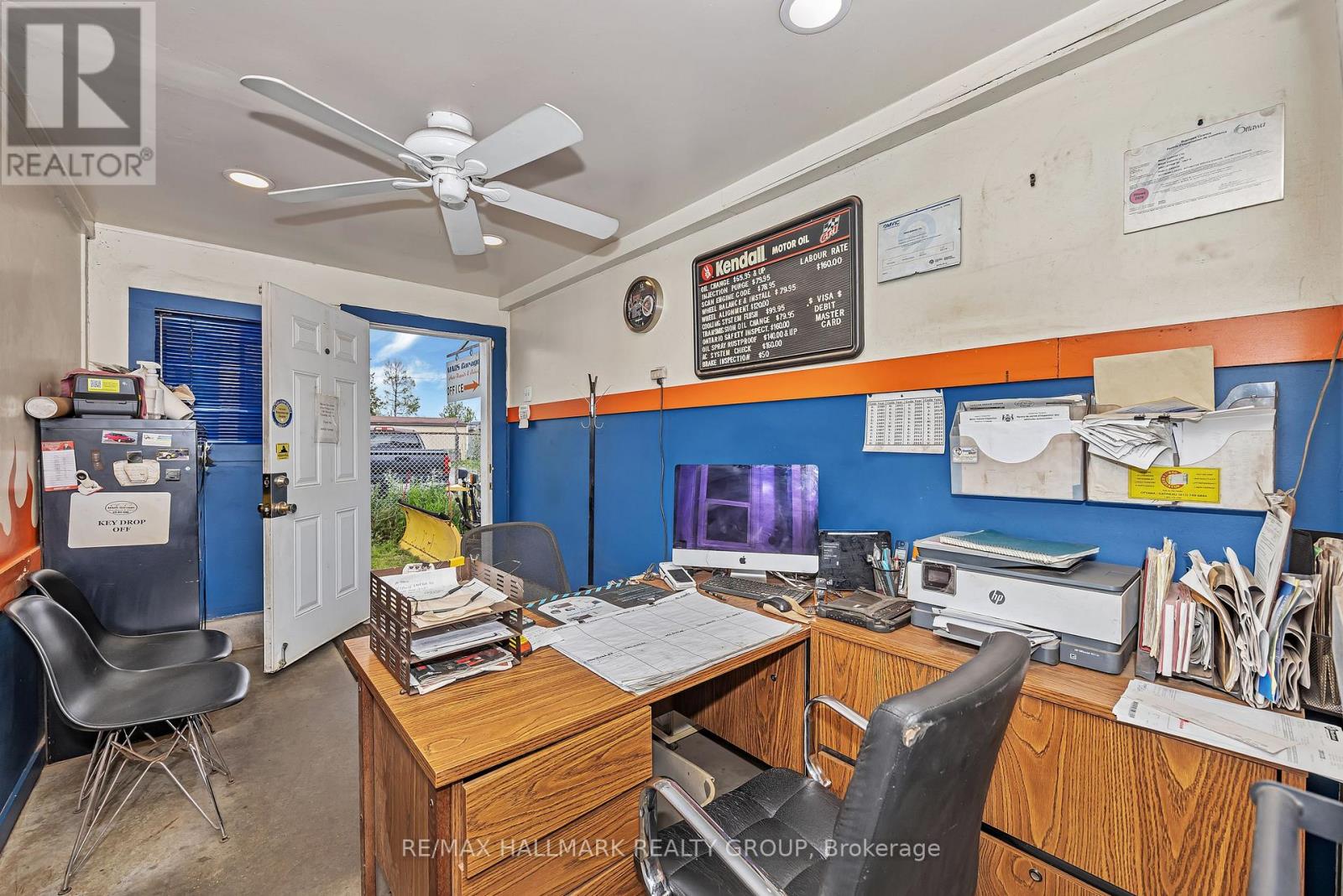 This modern commercial garage (built in 2012) offers 1,584 sq. ft. of functional space, ideal for tradespeople, contractors, or small business owners. The building features three bays, an office, storage room, bathroom, dual furnaces, and 220amp electrical service. A minimum 24-month lease is required, with the tenant responsible for gas and hydro while water is included. Potential zoning uses may include an automobile dealership, automobile rental establishment, repair shop, heavy equipment and vehicle sales/rental/servicing, light industrial uses, or warehouse. Tenant to conduct their own due diligence regarding permitted uses. This versatile and well-equipped space is ready to support a variety of business needs. (id:49063)
