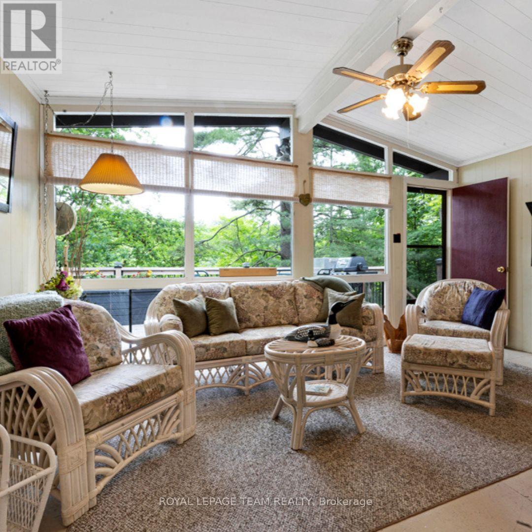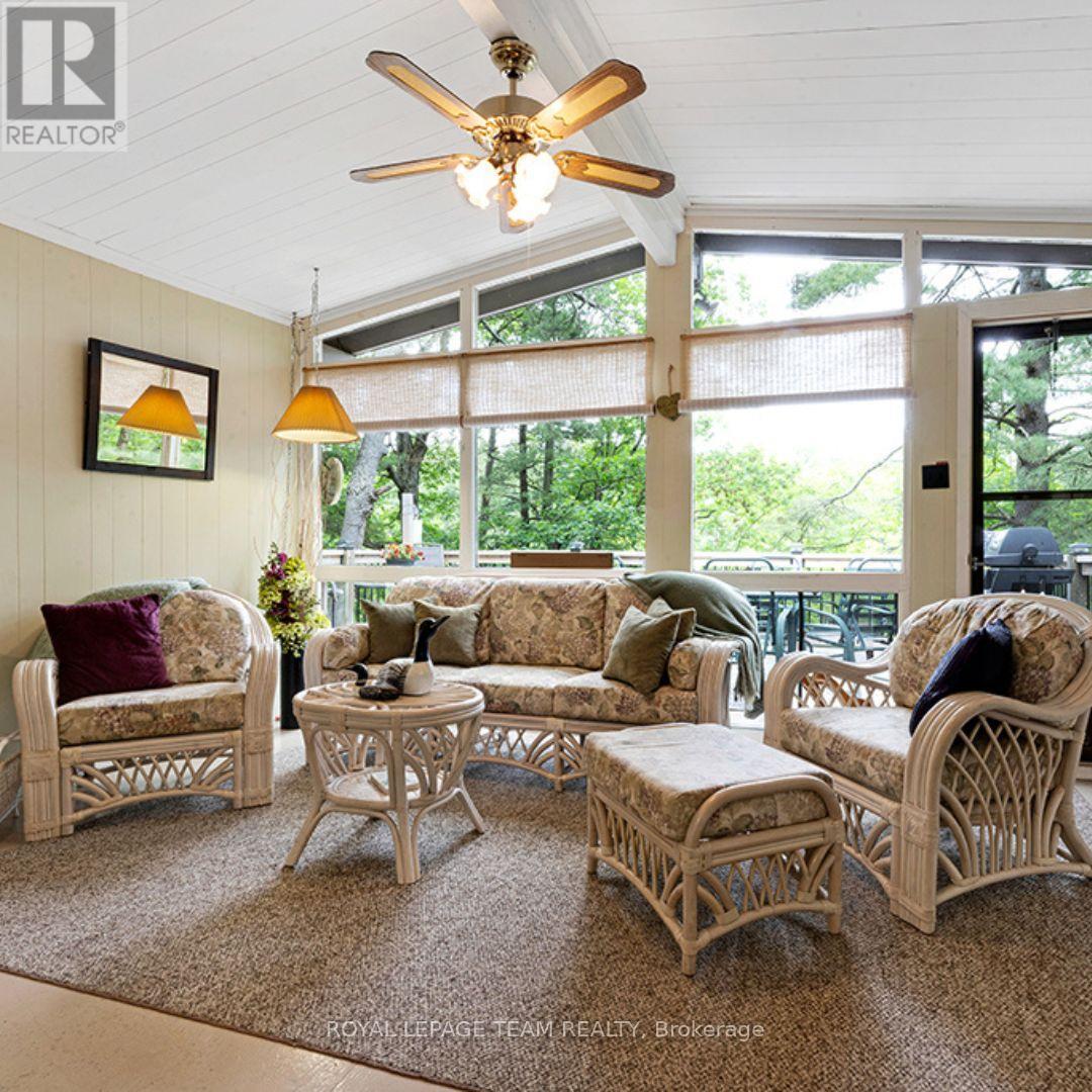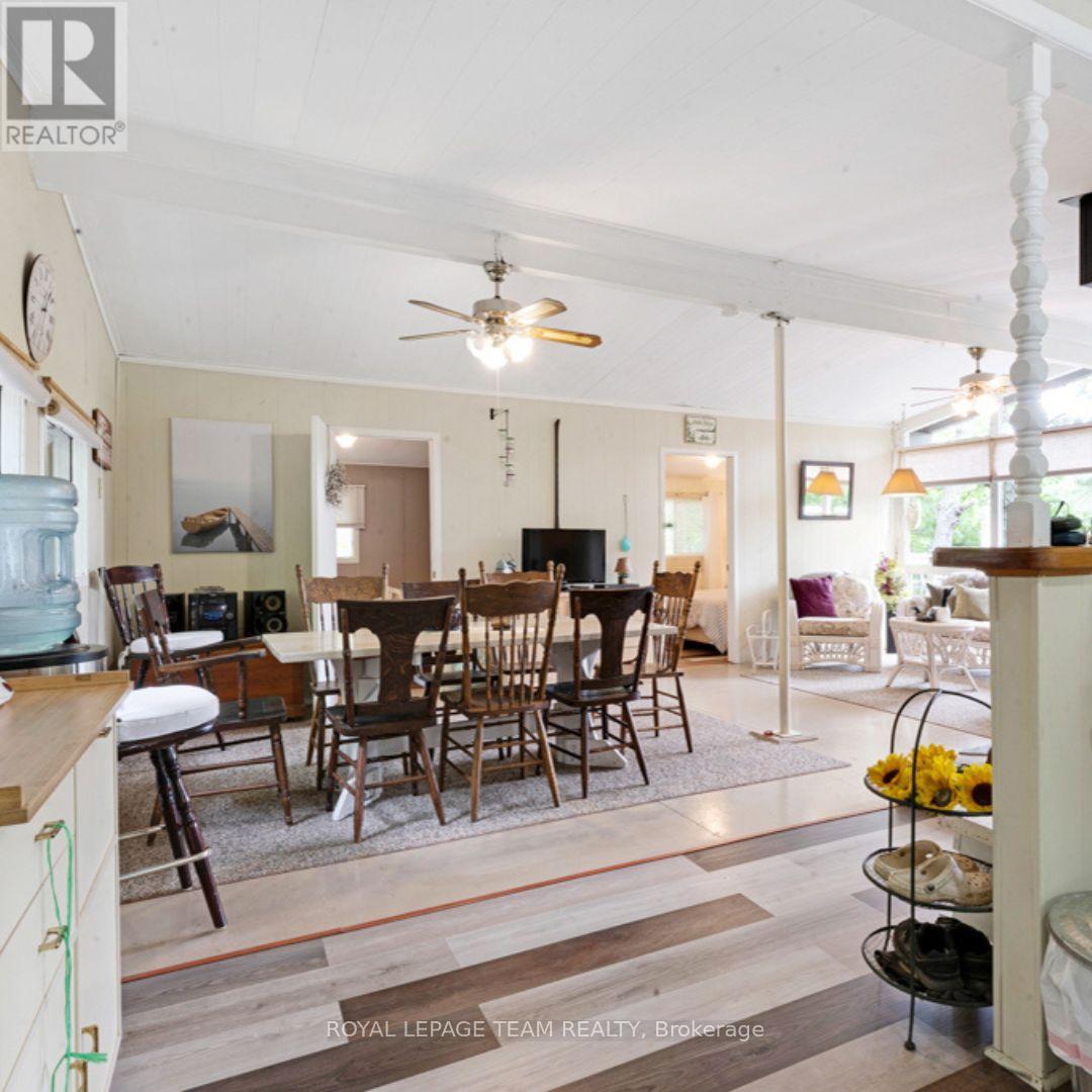 Lakeside Living on Little Silver Lake! Welcome to your perfect summer retreat on the clear waters of Little Silver Lake, just 25 minutes from Perth. This well-maintained, classic bungalow-style cottage sits on a beautiful, private 1/2 acre lot with a mix of open space and mature trees. Enjoy 15 feet of clear, weed-free water off the dock, ideal for swimming and lounging plus a gently sloping, shallow shoreline thats perfect for kids.The cottage offers spacious one-level living with floor-to-ceiling windows in the living room that provide stunning lake views and access to a 14x24 cedar deck. A cozy woodstove makes it perfect for cooler fall evenings. The vintage-style kitchen features white cabinetry, a classic cookstove, and new laminate flooring, also updated in the bathroom and bedroom. Two cozy bedrooms and a full 3-piece bath with a stand-up shower complete the main layout.Guests will love the separate 2-bedroom bunkie on the property. Enjoy evenings around the firepit, or gather in the fully screened-in gazeboalways a favourite spot for relaxing or entertaining. Additional features include a large shed for storage, an outhouse, and a recently replaced cedar railing leading to the dock. Practical updates and features include: 100 amp service, lake intake water system, and a septic system replaced in 2004. The cottage could be sold fully furnished if desired. Hydro costs averaged approximately $75/month in 2023, and the road association fee is approximately $250/year for plowing and grading. A survey is available. Little Silver Lake is known for excellent perch and bass fishing, and modern comforts like high-speed internet and Bell Satellite mean youre never too far from home. This is a move-in-ready getaway you wont want to miss! (id:49063)