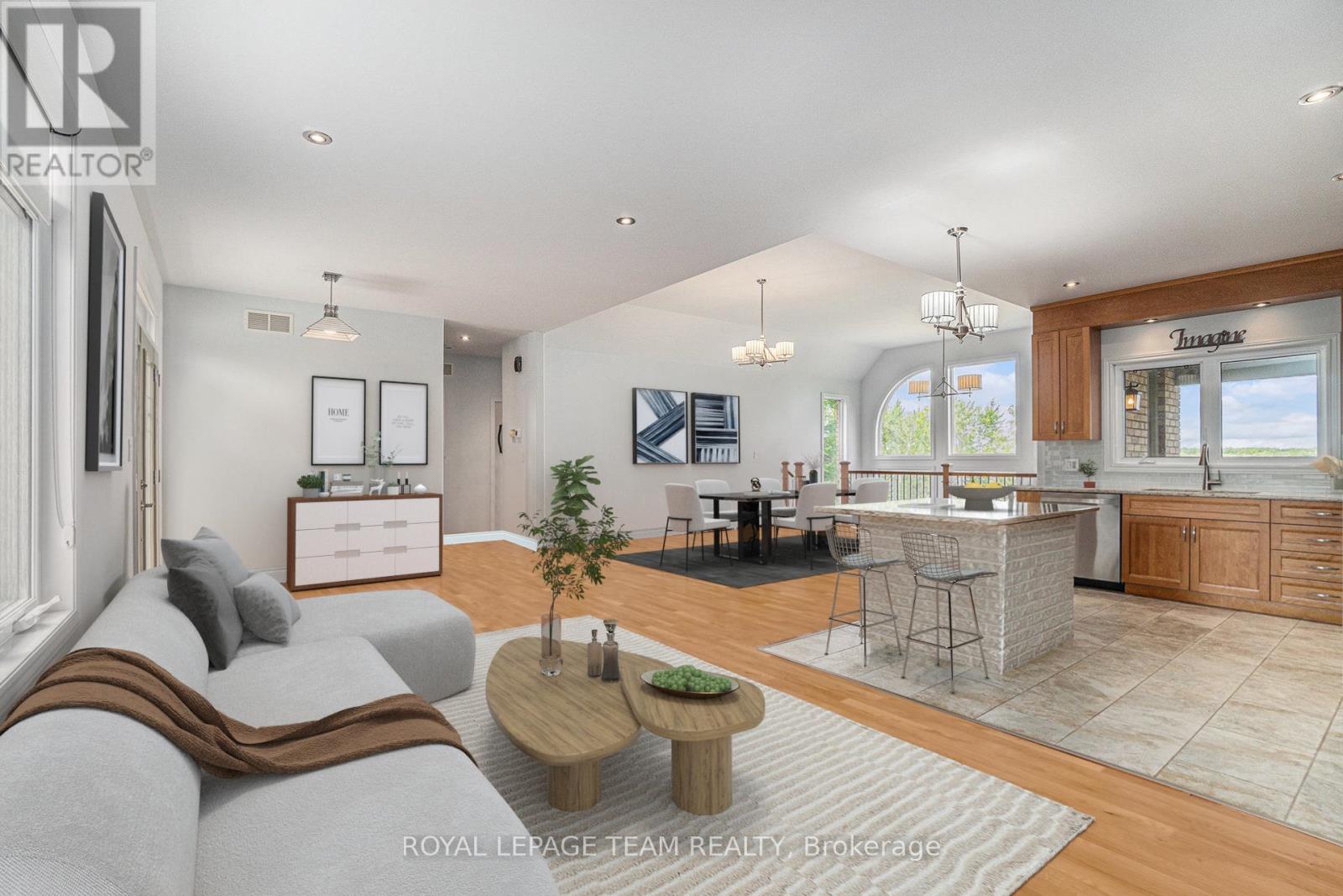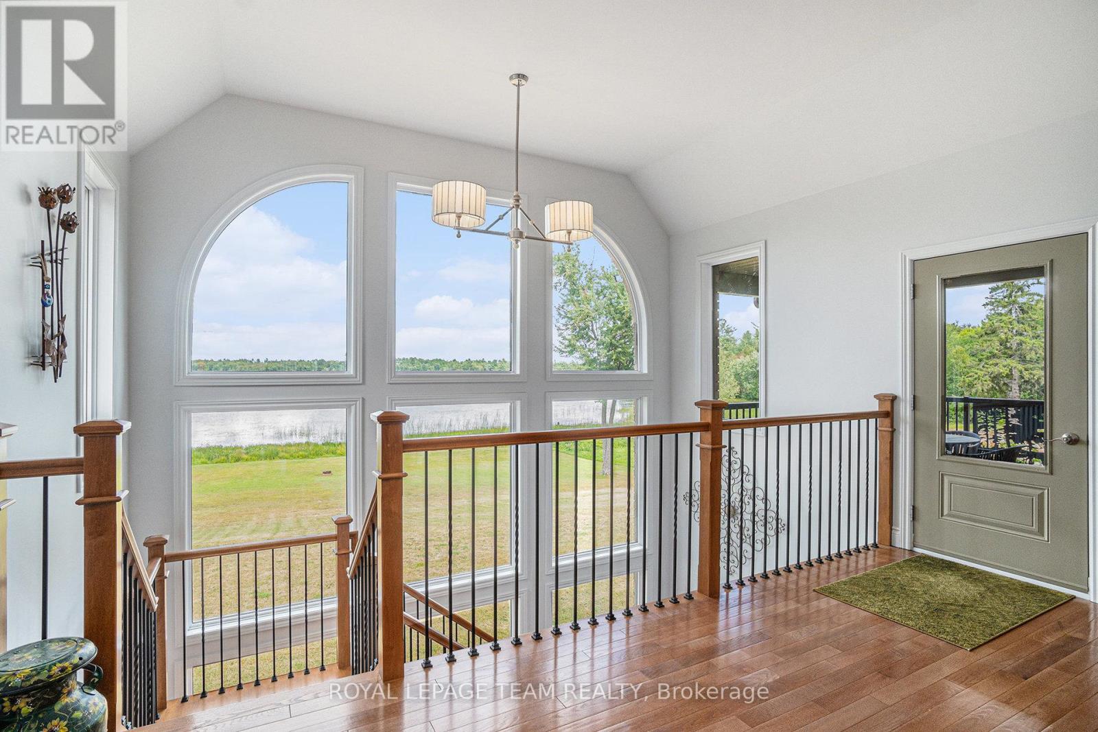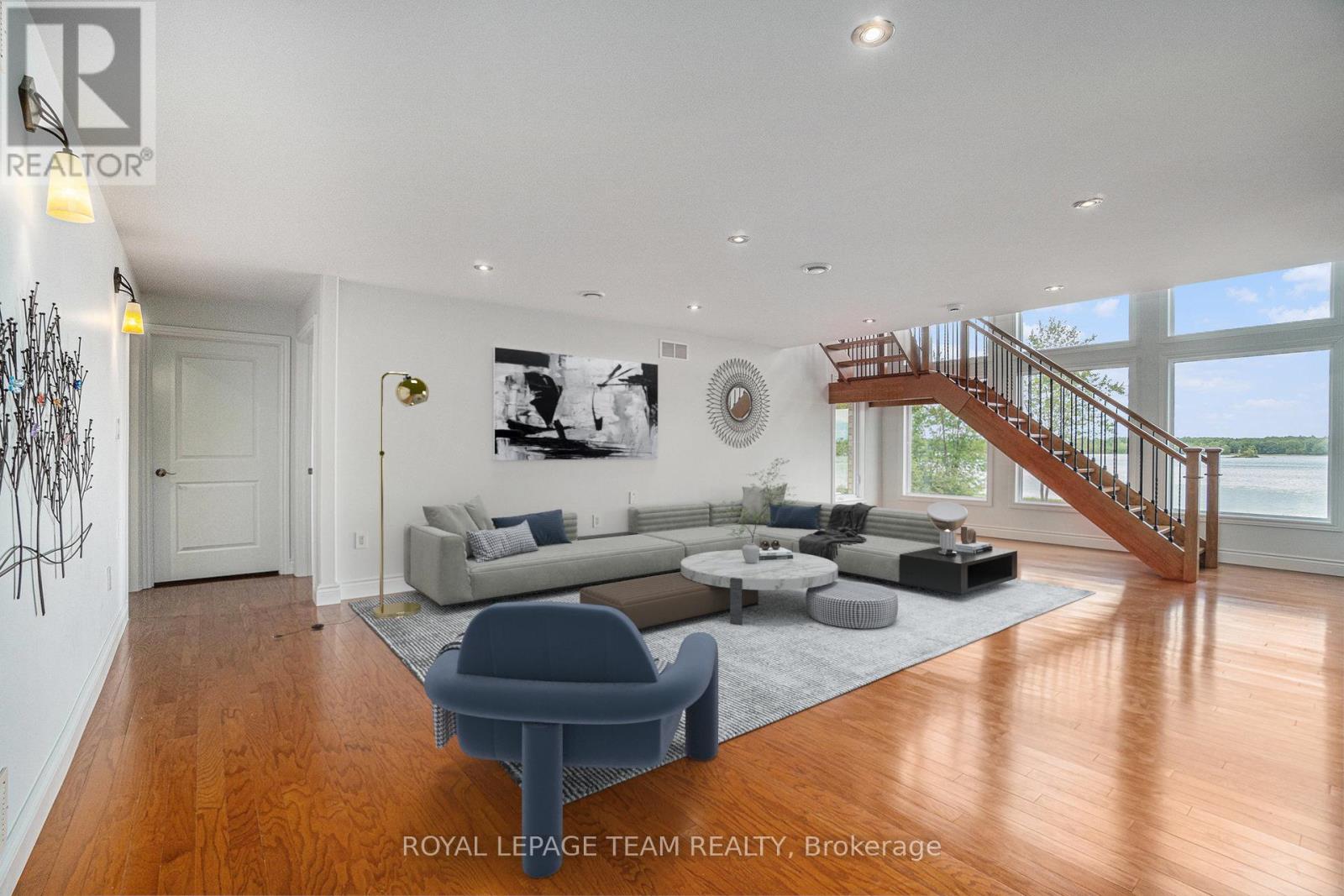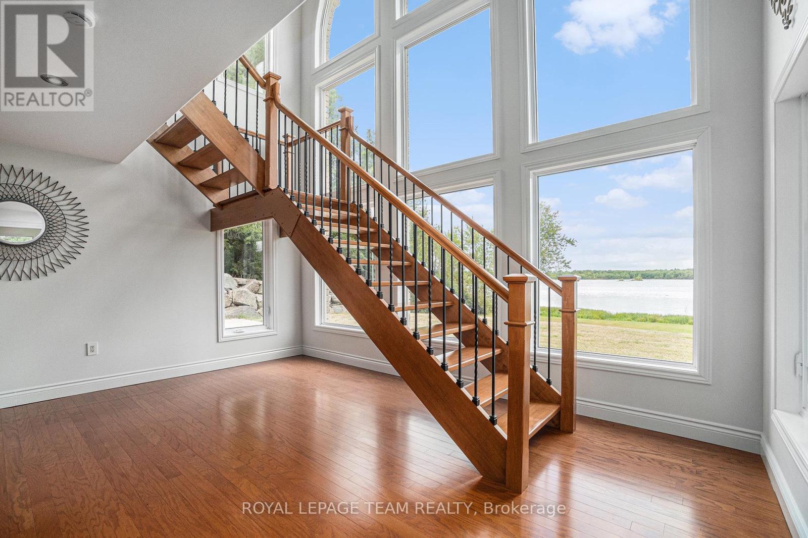 Stunning Custom Bungalow on Hazley Bay. A True Ottawa River Retreat. Welcome to this exceptional custom-built bungalow, perfectly situated on the beautiful shores of Hazley Bay with panoramic views of the bay and the island. This stunning home offers the ideal balance of luxury, comfort, and nature a true turn-key retreat on the Ottawa River. Designed with today's lifestyle in mind, the open-concept layout showcases a breathtaking two-storey atrium window, flooding both levels with natural light and offering incredible views from every angle. The Main Level Feature's a spacious open-concept kitchen with a large island and solid stone countertops perfect for entertaining. Flexible living and dining spaces allow for multiple furniture arrangements. Expansive primary bedroom with hardwood flooring and double walk-in closets.Gorgeous hardwood floors throughout. On the Lower Level, enjoy the same spectacular views through the 20-foot atrium window. A massive family room, perfect for gatherings or relaxing evenings.Two additional bedrooms.Second kitchen/laundry room with convenient walk-out access to a covered patio. Additional Highlights include an attached, insulated 2-car garage. Detached, heated and insulated 4-car garage/workshop ideal for a studio, future living space, or the ultimate Man Cave. The 3.2-acre lot features natural rocky outcroppings, serene views of the conservation area, and visits from local wildlife, including Blue Herons nesting in the bay. This meticulously maintained home offers a rare opportunity to own a private waterfront paradise with room to grow, entertain, and unwind. A must-see for buyers seeking a luxurious yet low-maintenance lifestyle in a picturesque setting.. Not to be missed! (id:49063)