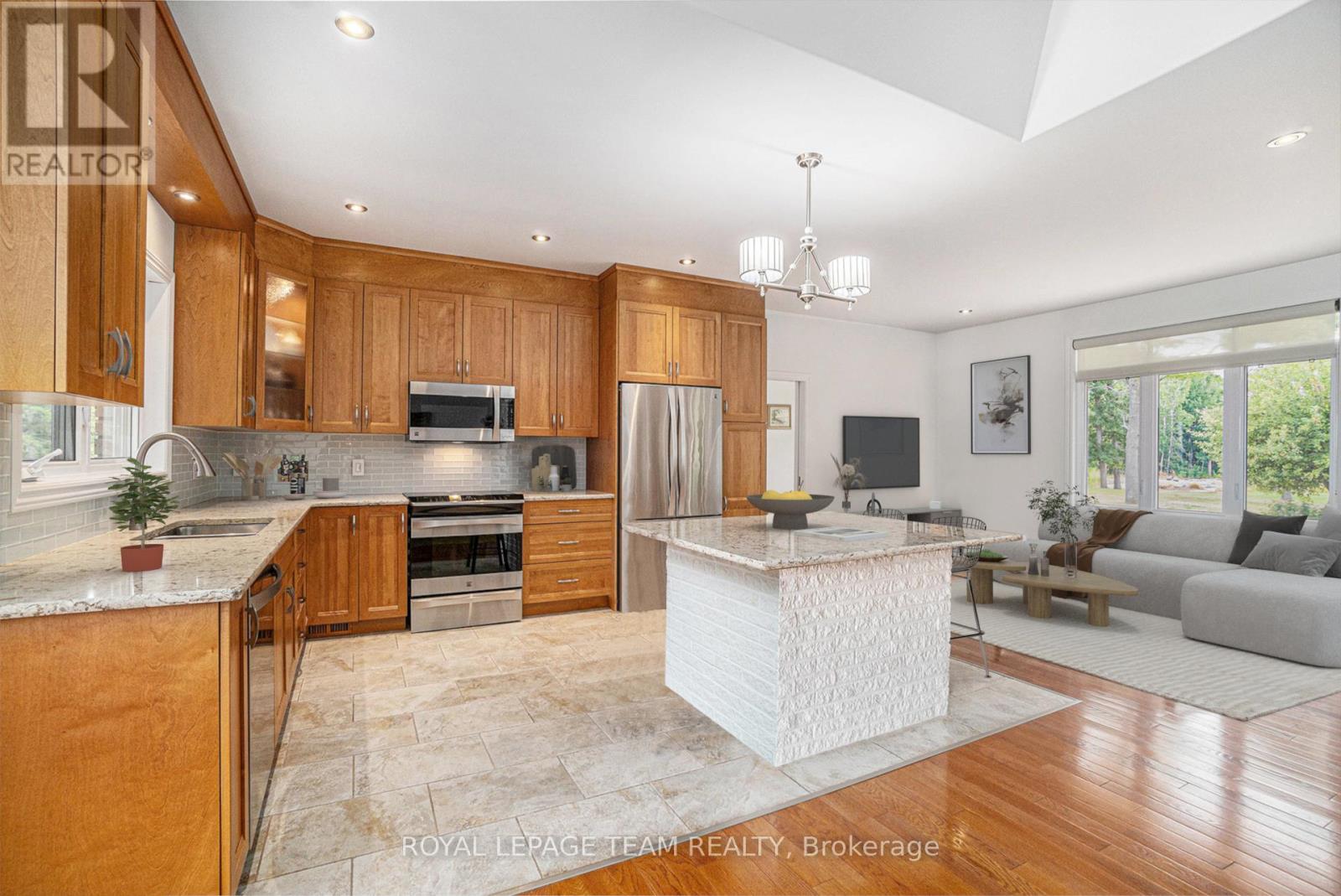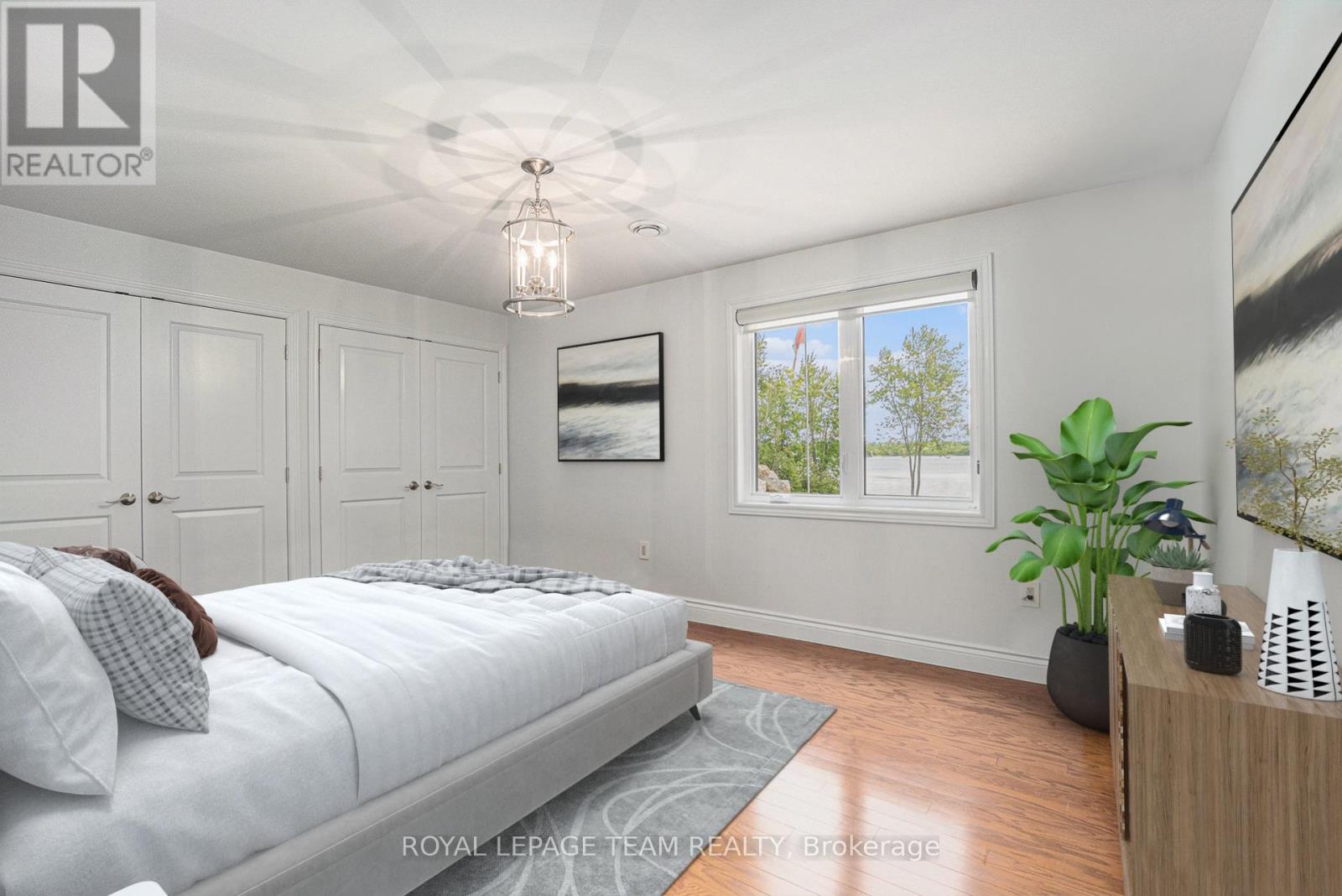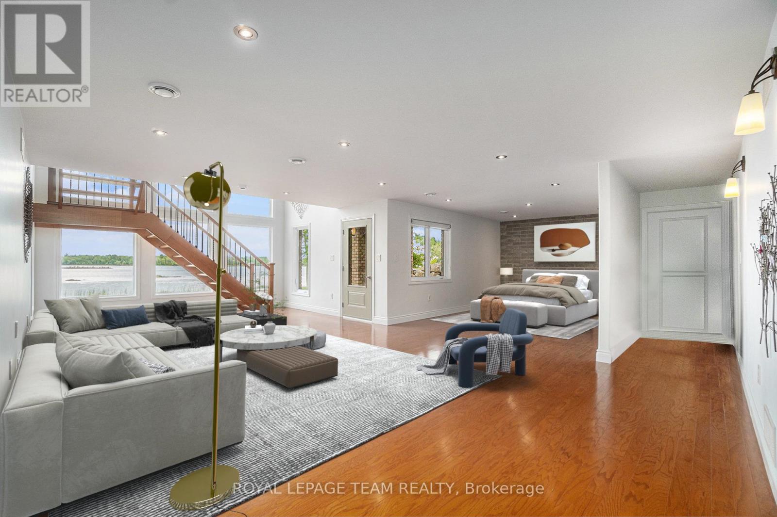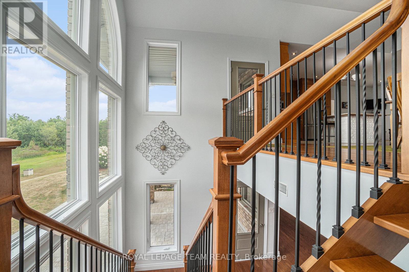 Stunning Custom Bungalow on Hazley Bay. A True Ottawa River Retreat. Welcome to this exceptional custom-built bungalow, perfectly situated on the beautiful shores of Hazley Bay with panoramic views of the bay and the island. This stunning home offers the ideal balance of luxury, comfort, and nature a true turn-key retreat on the Ottawa River. Designed with today's lifestyle in mind, the open-concept layout showcases a breathtaking two-storey atrium window, flooding both levels with natural light and offering incredible views from every angle. The Main Level Feature's a spacious open-concept kitchen with a large island and solid stone countertops perfect for entertaining. Flexible living and dining spaces allow for multiple furniture arrangements. Expansive primary bedroom with hardwood flooring and double walk-in closets.Gorgeous hardwood floors throughout. On the Lower Level, enjoy the same spectacular views through the 20-foot atrium window. A massive family room, perfect for gatherings or relaxing evenings.Two additional bedrooms.Second kitchen/laundry room with convenient walk-out access to a covered patio. Additional Highlights include an attached, insulated 2-car garage. Detached, heated and insulated 4-car garage/workshop ideal for a studio, future living space, or the ultimate Man Cave. The 3.2-acre lot features natural rocky outcroppings, serene views of the conservation area, and visits from local wildlife, including Blue Herons nesting in the bay. This meticulously maintained home offers a rare opportunity to own a private waterfront paradise with room to grow, entertain, and unwind. A must-see for buyers seeking a luxurious yet low-maintenance lifestyle in a picturesque setting.. Not to be missed! (id:49063)