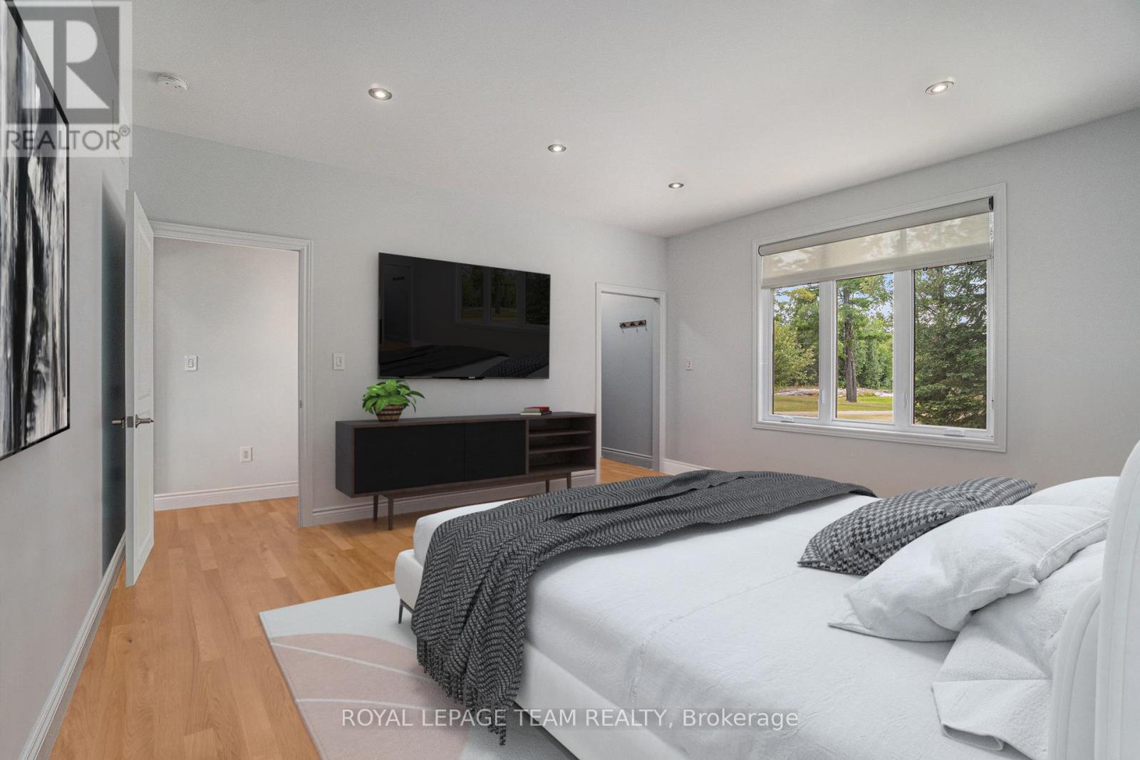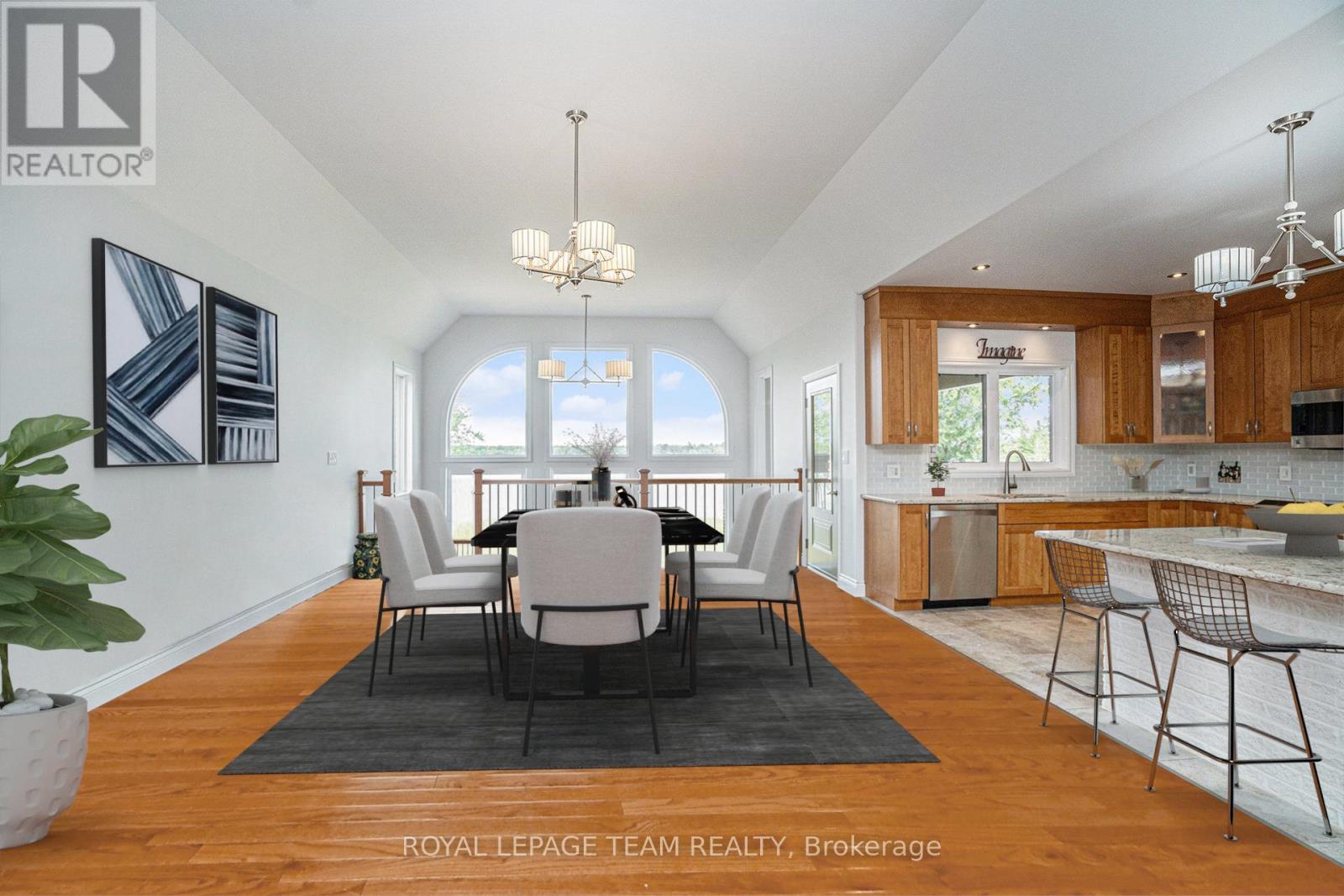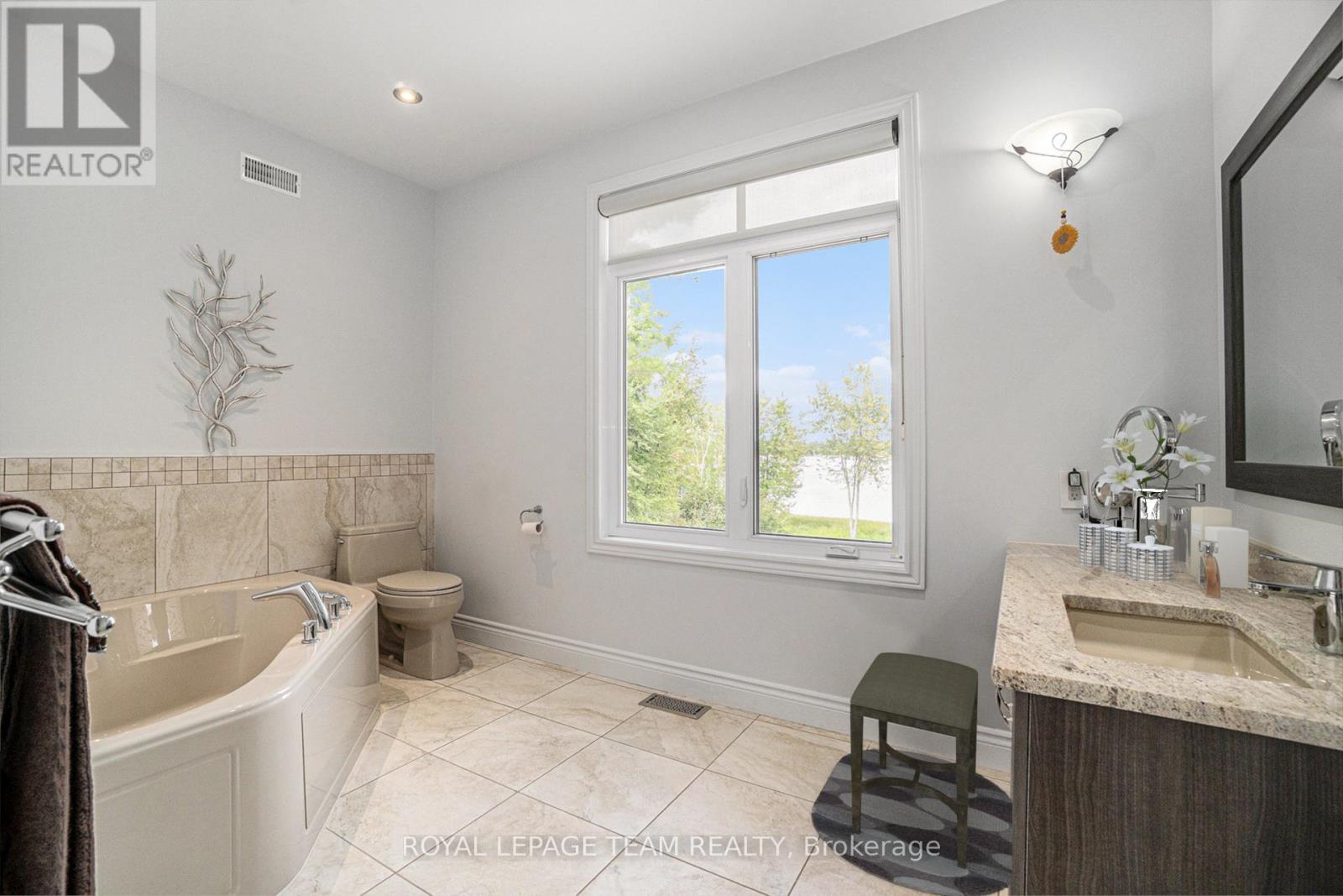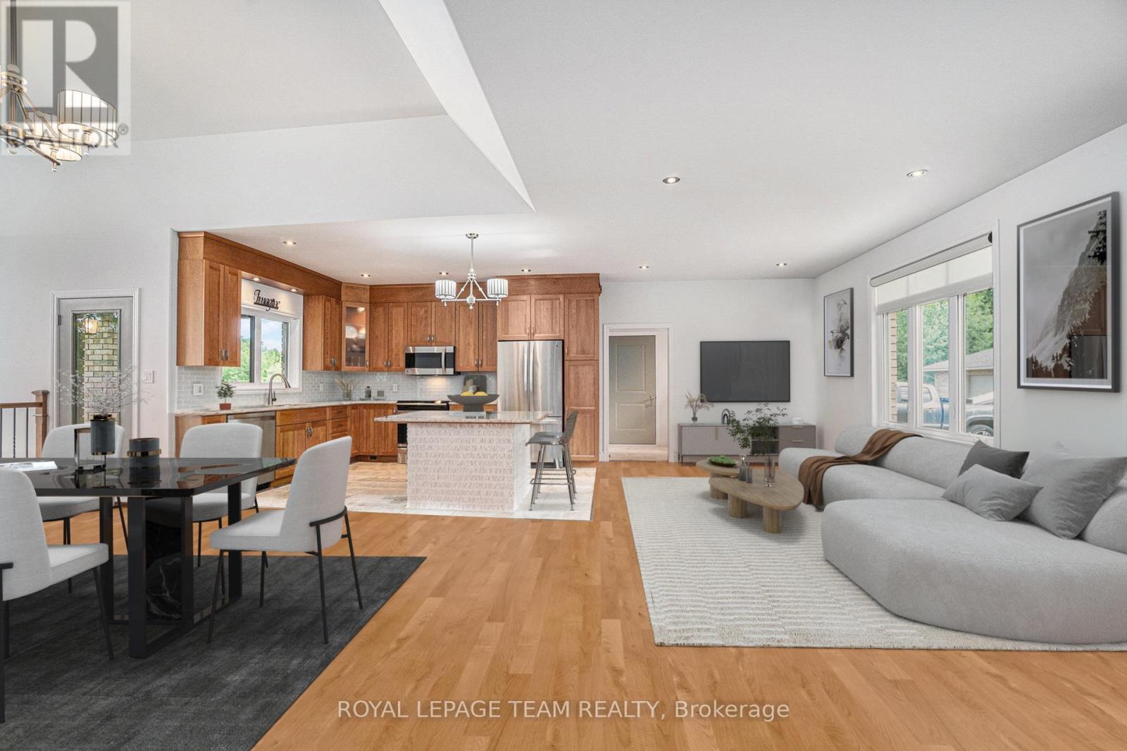Stunning Custom Bungalow on Hazley Bay. A True Ottawa River Retreat. Welcome to this exceptional custom-built bungalow, perfectly situated on the beautiful shores of Hazley Bay with panoramic views of the bay and the island. This stunning home offers the ideal balance of luxury, comfort, and nature a true turn-key retreat on the Ottawa River. Designed with today's lifestyle in mind, the open-concept layout showcases a breathtaking two-storey atrium window, flooding both levels with natural light and offering incredible views from every angle. The Main Level Feature's a spacious open-concept kitchen with a large island and solid stone countertops perfect for entertaining. Flexible living and dining spaces allow for multiple furniture arrangements. Expansive primary bedroom with hardwood flooring and double walk-in closets.Gorgeous hardwood floors throughout. On the Lower Level, enjoy the same spectacular views through the 20-foot atrium window. A massive family room, perfect for gatherings or relaxing evenings.Two additional bedrooms.Second kitchen/laundry room with convenient walk-out access to a covered patio. Additional Highlights include an attached, insulated 2-car garage. Detached, heated and insulated 4-car garage/workshop ideal for a studio, future living space, or the ultimate Man Cave. The 3.2-acre lot features natural rocky outcroppings, serene views of the conservation area, and visits from local wildlife, including Blue Herons nesting in the bay. This meticulously maintained home offers a rare opportunity to own a private waterfront paradise with room to grow, entertain, and unwind. A must-see for buyers seeking a luxurious yet low-maintenance lifestyle in a picturesque setting.. Not to be missed! (id:49063)
