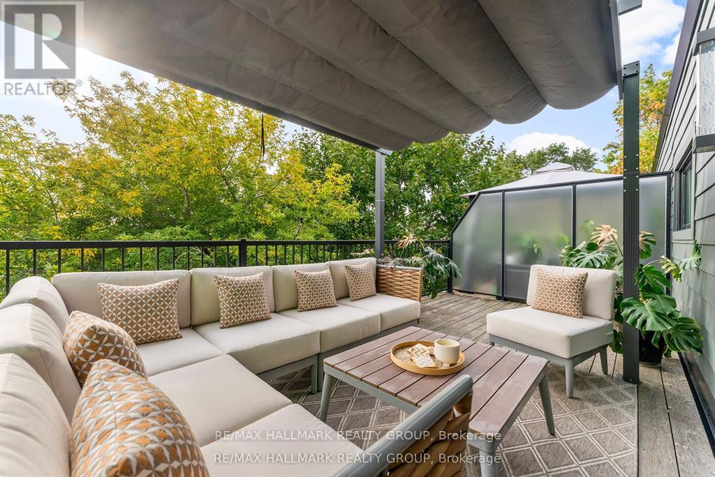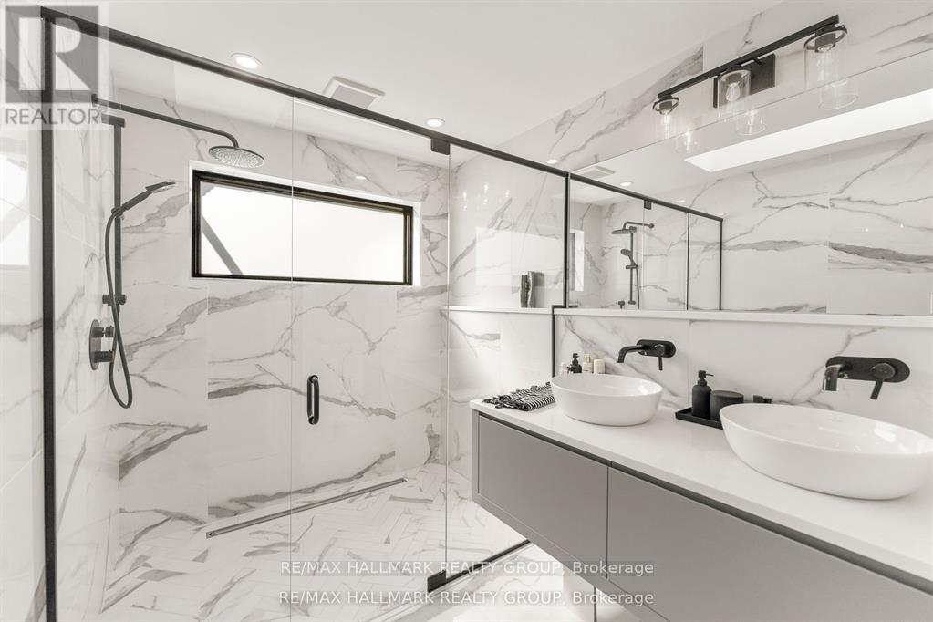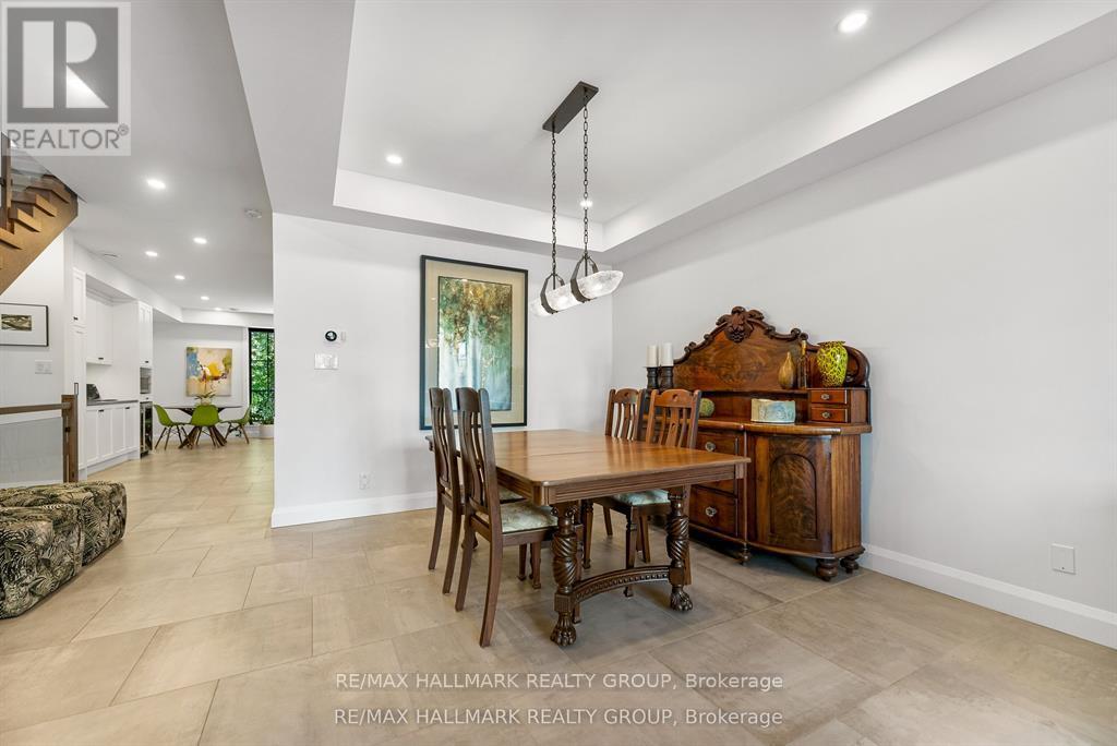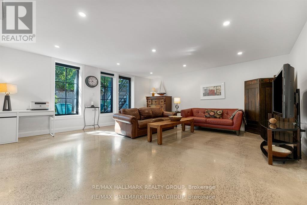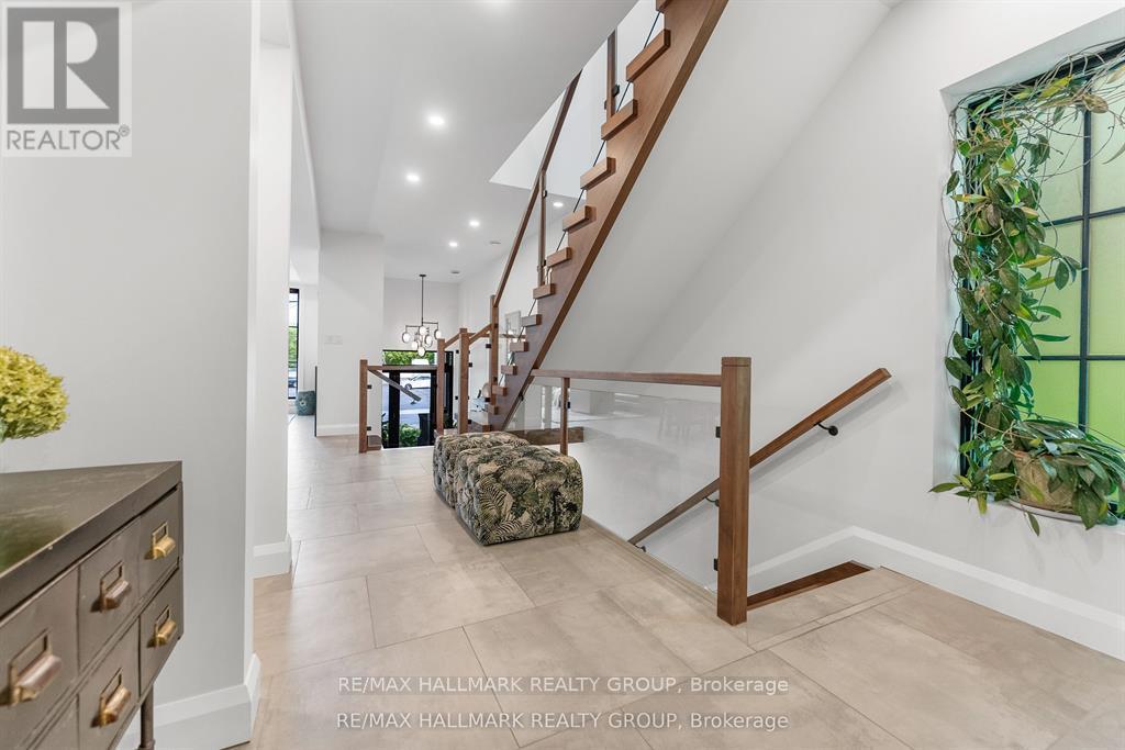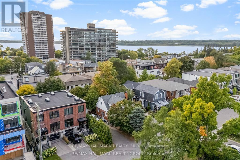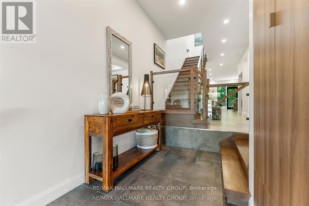 Welcome to your exquisite New York-style brownstone nestled in the vibrant Westboro Village.This stunning residence offers an unparalleled lifestyle for those who cherish the art of living.Step outside and find yourself within walking distance of the finest restaurants, boutique shops, or explore your culinary skills with fresh, local ingredients from the summer Farmers Market around the corner.Enter through an exterior heated floor into a foyer crowned by a compass-inspired chandelier. Glass and walnut railings lead to a living area anchored by a leathered granite-slab fireplace and a Frame TV for rotating art display while the dining room dazzles under custom lighting.For those who love to cook, the kitchen is a culinary dream come true.It boasts an oversized island and a delightful dining alcove, equipped with high-end Bosch appliances, a wine fridge, a chef's sink, and ample storage.Picture yourself gather for summer evening barbecues and dine al fresco on the inviting porch, while radiant in-floor heating ensures year-round comfort.A skylit,illuminated stairway rises to the upper level, where you'll find the spacious primary suite with its luxurious dressing area and a black-and-white tiled ensuite with heated floors and skylight. Step outside onto your private exterior deck, perfect for summer lounging.Two additional bedrooms feature walnut floors. A beautifully appointed bathroom showcases in-floor heating & skylight.Dedicated laundry room adds daily ease.Discover versatile living on the lower level, complete with a private entrance, full-height windows and direct access to a charming backyard. Enjoy heated polished concrete floors, stunning bathroom with washer/dryer & roughed-in plumbing for a bar or kitchen, making this an ideal in-law suite.Constructed with reinforced concrete, cold-formed steel and an acid-washed brick exterior, plus a snow-melting driveway, this home blends lasting strength with refined aesthetics.Embrace the Westboro Village lifestyle! (id:49063)