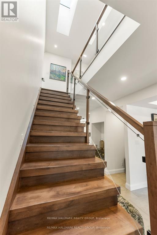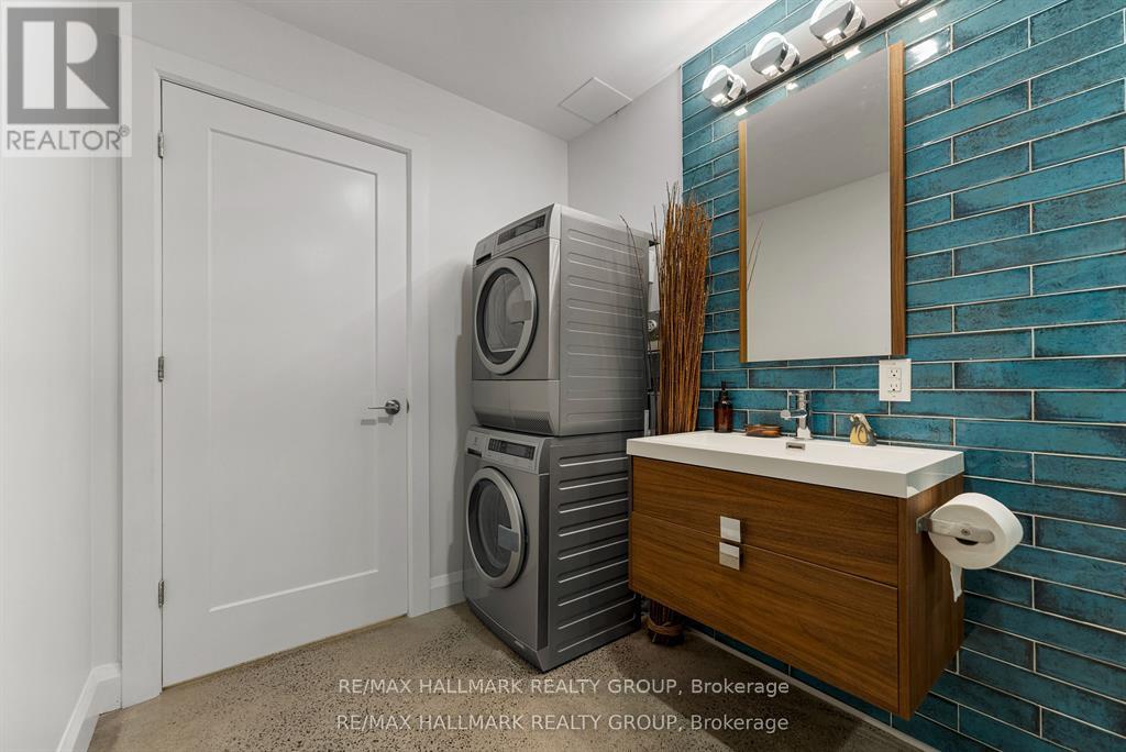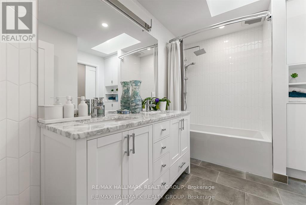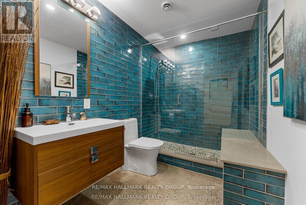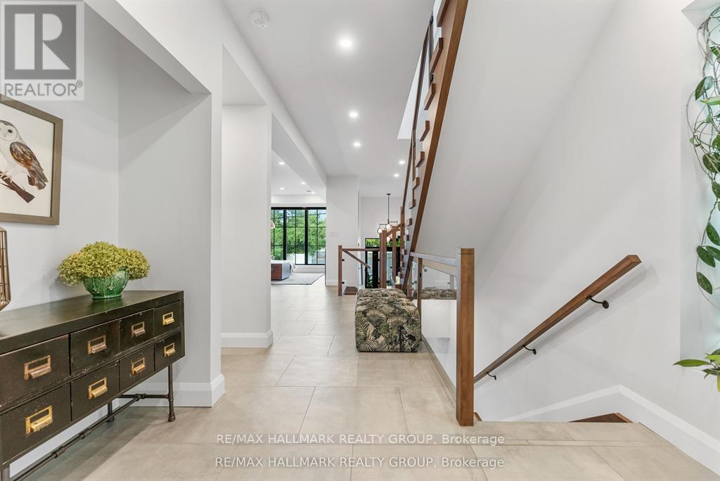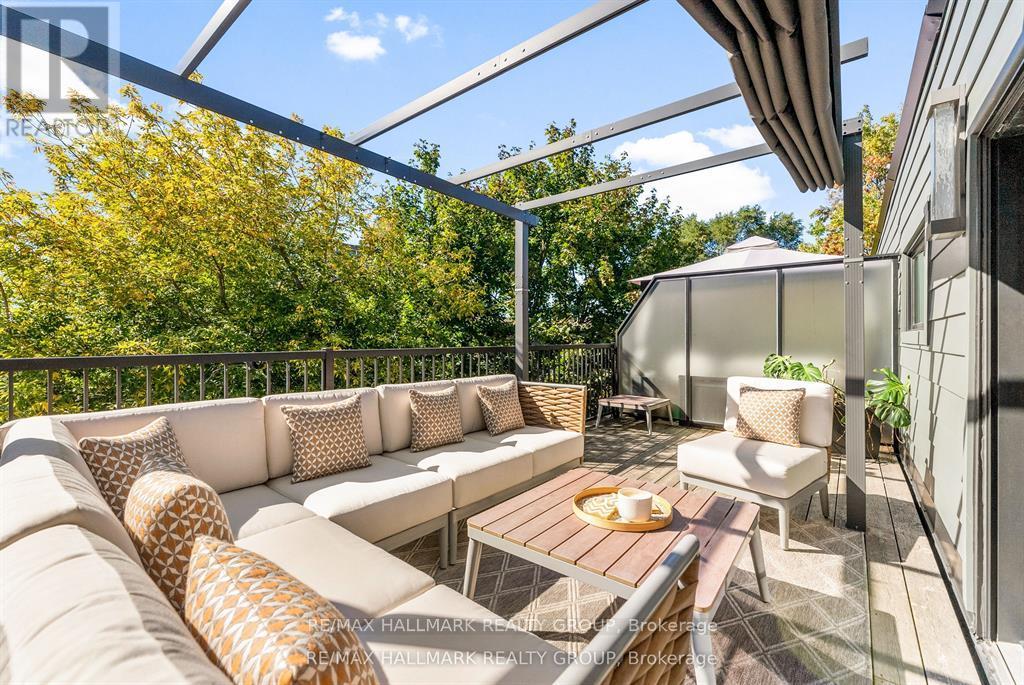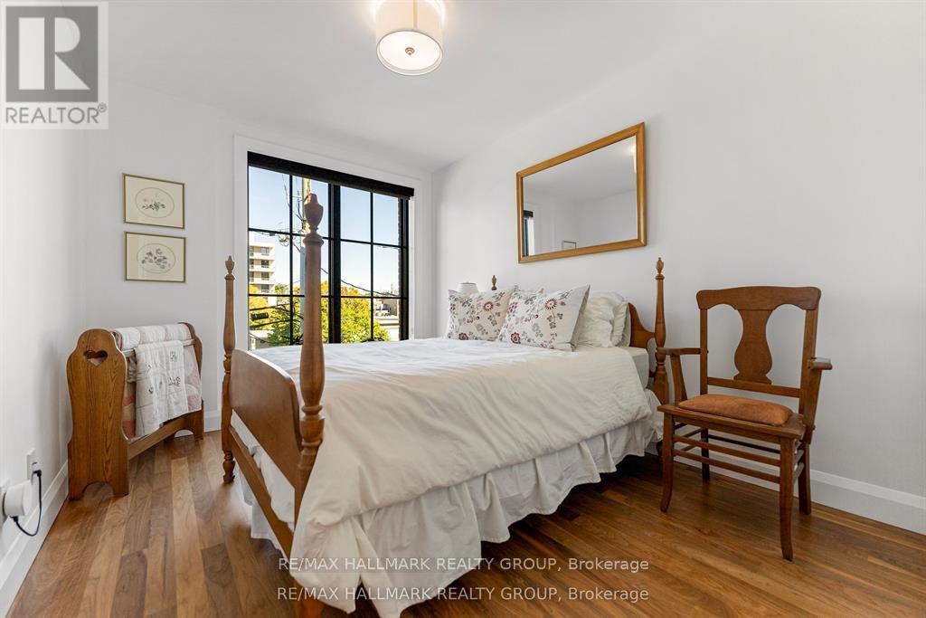 Welcome to your exquisite New York-style brownstone nestled in the vibrant Westboro Village.This stunning residence offers an unparalleled lifestyle for those who cherish the art of living.Step outside and find yourself within walking distance of the finest restaurants, boutique shops, or explore your culinary skills with fresh, local ingredients from the summer Farmers Market around the corner.Enter through an exterior heated floor into a foyer crowned by a compass-inspired chandelier. Glass and walnut railings lead to a living area anchored by a leathered granite-slab fireplace and a Frame TV for rotating art display while the dining room dazzles under custom lighting.For those who love to cook, the kitchen is a culinary dream come true.It boasts an oversized island and a delightful dining alcove, equipped with high-end Bosch appliances, a wine fridge, a chef's sink, and ample storage.Picture yourself gather for summer evening barbecues and dine al fresco on the inviting porch, while radiant in-floor heating ensures year-round comfort.A skylit,illuminated stairway rises to the upper level, where you'll find the spacious primary suite with its luxurious dressing area and a black-and-white tiled ensuite with heated floors and skylight. Step outside onto your private exterior deck, perfect for summer lounging.Two additional bedrooms feature walnut floors. A beautifully appointed bathroom showcases in-floor heating & skylight.Dedicated laundry room adds daily ease.Discover versatile living on the lower level, complete with a private entrance, full-height windows and direct access to a charming backyard. Enjoy heated polished concrete floors, stunning bathroom with washer/dryer & roughed-in plumbing for a bar or kitchen, making this an ideal in-law suite.Constructed with reinforced concrete, cold-formed steel and an acid-washed brick exterior, plus a snow-melting driveway, this home blends lasting strength with refined aesthetics.Embrace the Westboro Village lifestyle! (id:49063)