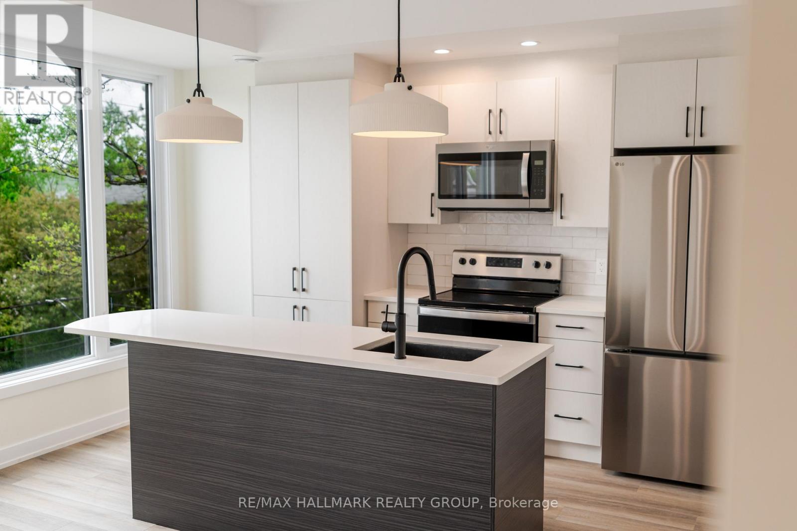 Discover stylish urban living in this spacious BRAND NEW 1-bedroom + den, 1-bath apartment at 22 Sims Avenue, offering 530 sq. ft. of bright and contemporary space. Designed for comfort and functionality, the unit features quartz countertops, upscale flooring, a fully equipped kitchen with dishwasher, and the convenience of in-unit laundry. Stay comfortable all year long with efficient gas heating and central air conditioning. Covered bike parking is available on-site, with additional street parking nearby for added ease. Perfectly positioned in a vibrant neighbourhood, you'll enjoy quick access to parks, local shops, restaurants, and public transit-everything you need within easy reach. Water is included in the rent; tenants are responsible for heat, electricity, and internet. A modern, versatile space in a fantastic location-ideal for professionals, students, or anyone seeking convenience without compromise. Street parking permit available for an additional cost. Offering first month's rent FREE! (id:49063)
