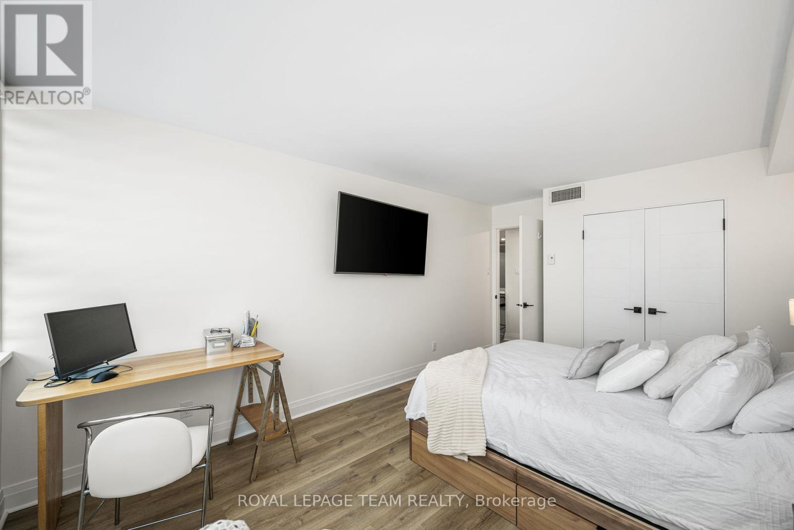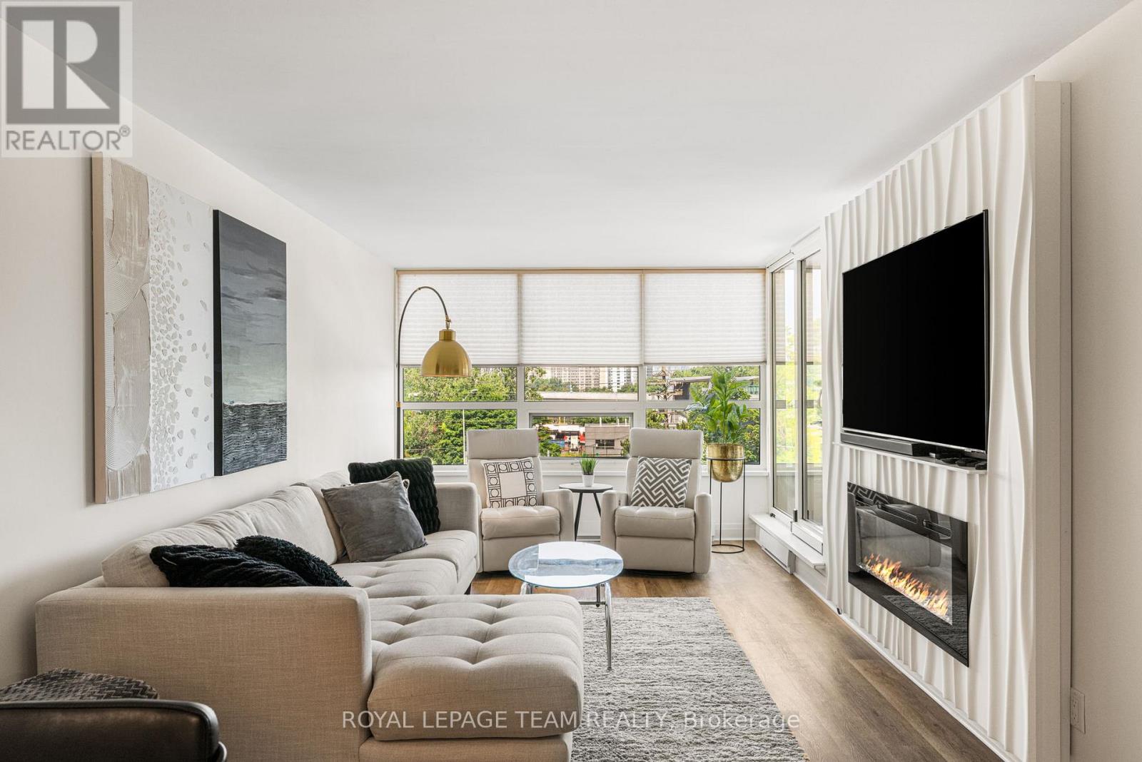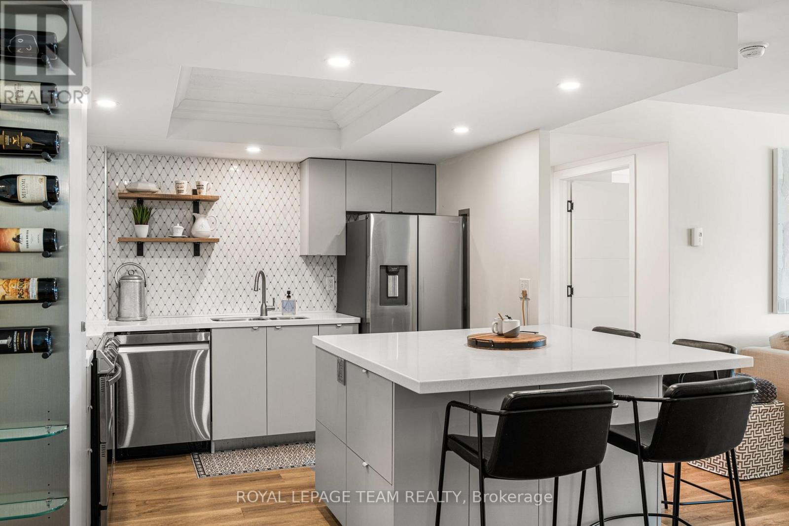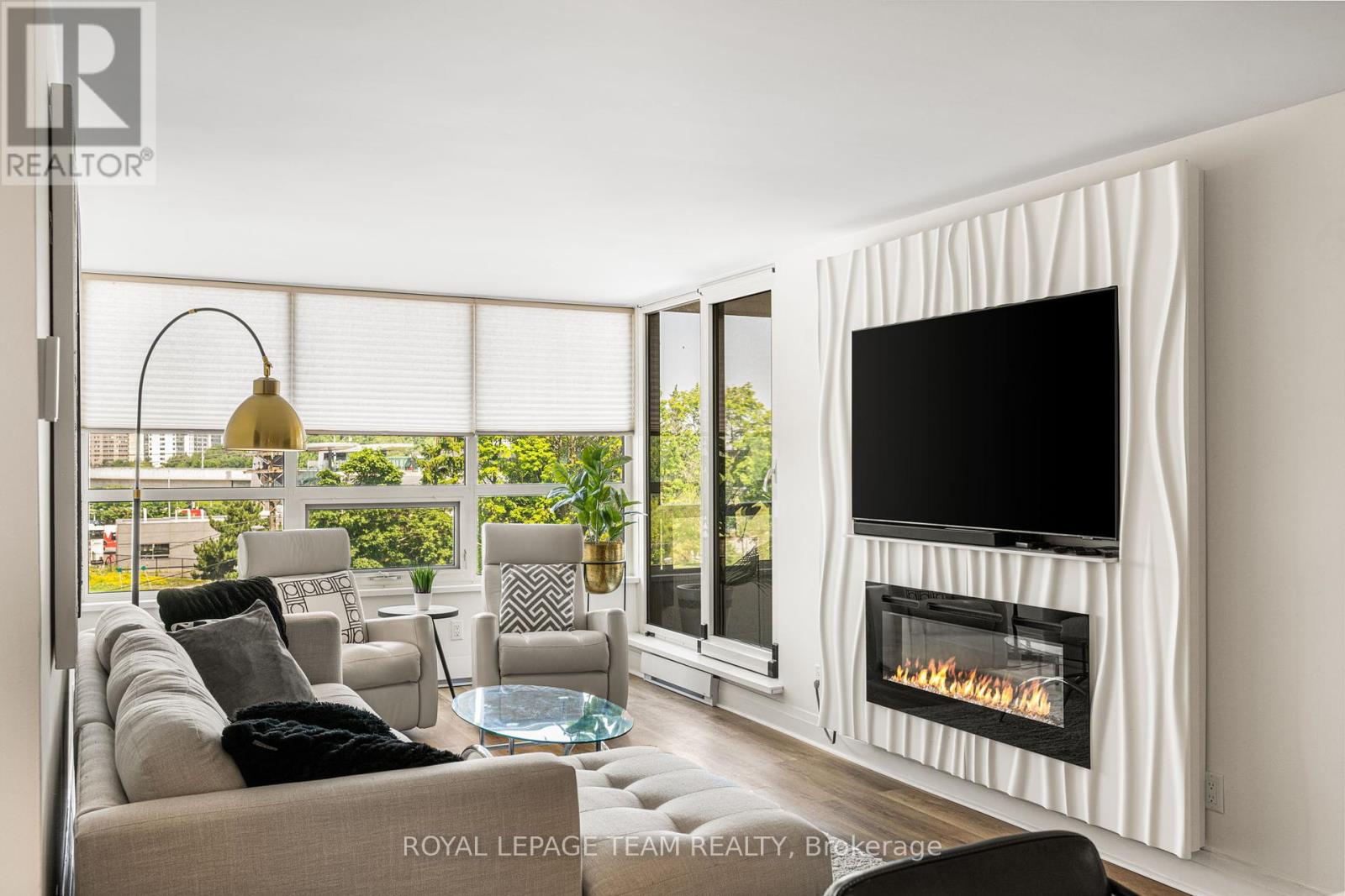 $936.99 MonthlyWelcome to the Riviera. A Premier Gated Community with 24-Hour Security. Step into luxury with this beautifully renovated (2022-2025), two-bedroom, two-bathroom condo, located in the sought-after Riviera community. Thoughtfully updated over the past three years, this home offers a perfect blend of style, comfort, and modern convenience. Highlights include: fully renovated kitchen with custom cabinetry, island and new appliances. Updated guest and primary bathrooms with modern finishes and a spacious den/second bedroom with built-in Murphy bed. Newer air conditioning unit (2023) and EV charger installed at your parking space. Enjoy the stylish electric fireplace for a cozy ambiance. Convenient laundry sink and cabinetry for convenience. Enjoy resort-style living with access to the Indoor and outdoor swimming pools, fitness center, library and social/party room, outdoor BBQ areas, beautifully maintained grounds and walking paths. Condo fees include water and unlimited high-speed internet, exceptional value and peace of mind. This property is in a prime location which includes a 5-minute walk to Hurdman Station (OC Transpo),10-minute drive to Train Yards Shopping Centre, 10-minute drive to the Via Rail Station and a 15-minute drive to the Ottawa International Airport. Whether you're commuting, traveling, or simply enjoying the nearby shops and restaurants, this location offers unmatched convenience and connectivity. (Taxes to be verified) (id:49063)