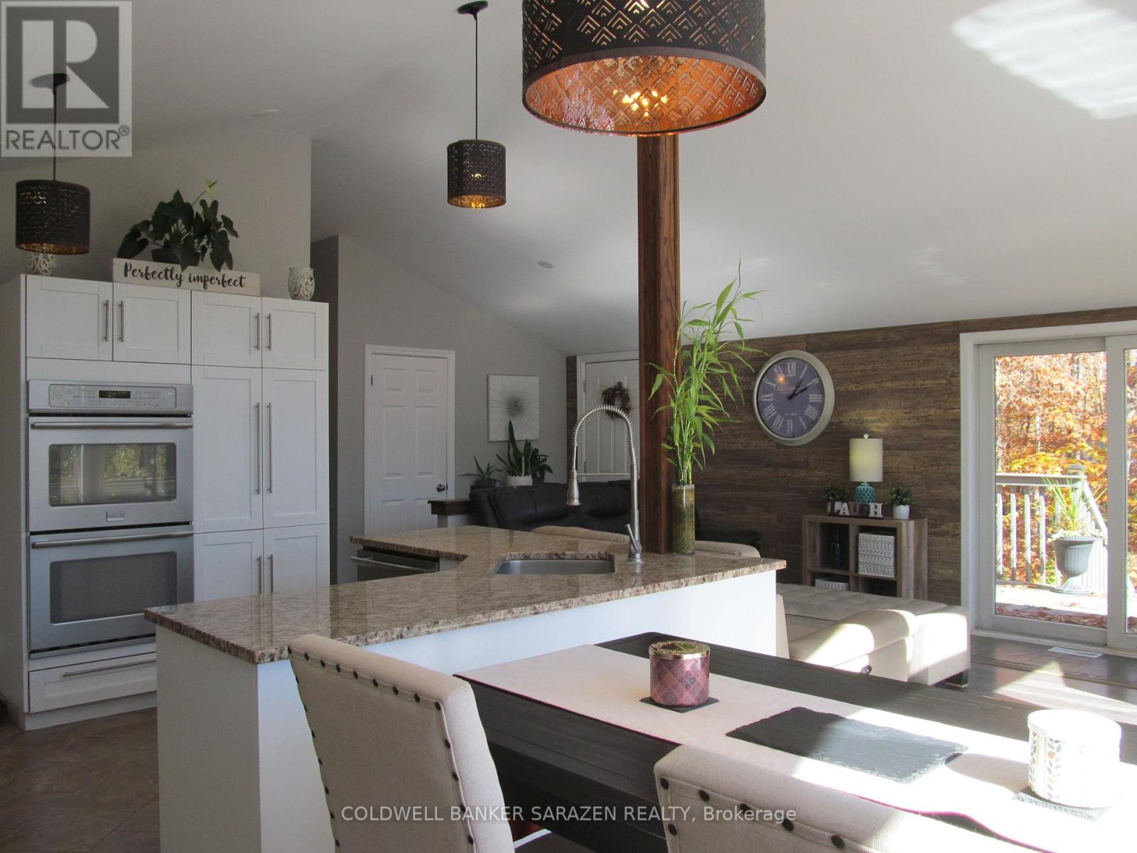 Make your "someday" dreams come true! Have you thought one day you would have a getaway from the crowds live in a sun drenched home and have enough property for a chicken run, a goat or two, a couple of sheep and a precious horse or donkey? Then this is your lucky day! This bright happy bungalow tastefully updated and painted in neutral tones has an open concept living/dining/kitchen area perfect for entertaining family and friends, stainless steel appliances in the smartly designed kitchen, new laminate and ceramic flooring and ceiling to floor picture windows overlooking the river. The patio doors lead out to a large wrap around deck complete with a hot tub and loads of sunshine from the south facing exposure. A spacious primary bedroom features a unique picture window, there ae two additional bedrooms and a lovely bathroom with double vanity. Now for the exciting part. The property is set-up with a heated workshop with an attached chicken coop large enough for 10+ birds, spacious utility shed for storing your ATV, side-by-side, garden implements and "neat stuff". All within steps of the house. Enjoy fun filled afternoons & evenings savouring the small of wood burning in the fire pit just off the deck. For the goats and sheep there is an electric wired run. Your beloved horse or donkey has a separate electric fenced paddock and stall behind the house set amongst the peaceful woodlands. Wander the cleared trails or take off on your ATV to explore the woodlands leading to the pond. This property has been meticulously maintained. All the outbuildings were built with the best material available, the fences are easy to set up or remove. Situated 10 minutes from the village of Calabogie's convenience stores, restaurants, golf courses, ski hills, lake, world class motor sport track, 15 minutes to Hwy 417 interchange. Words cannot express the scope of this property you have to see it for yourself .... you won't be disappointed. (id:49063)