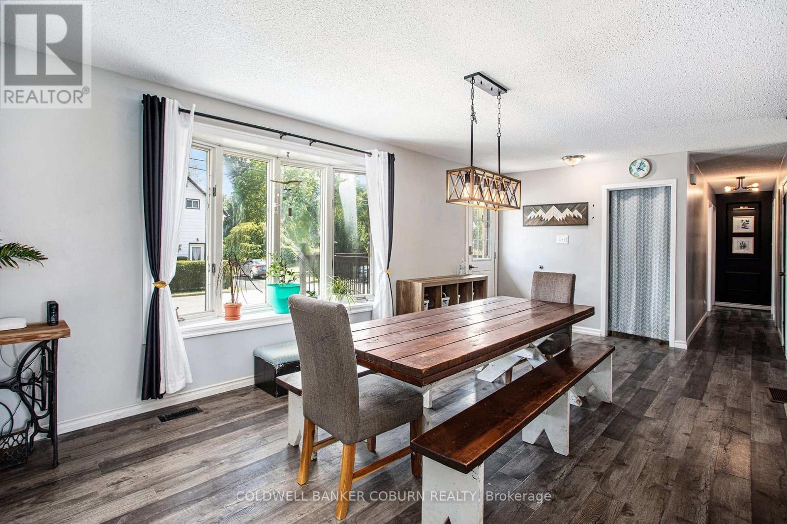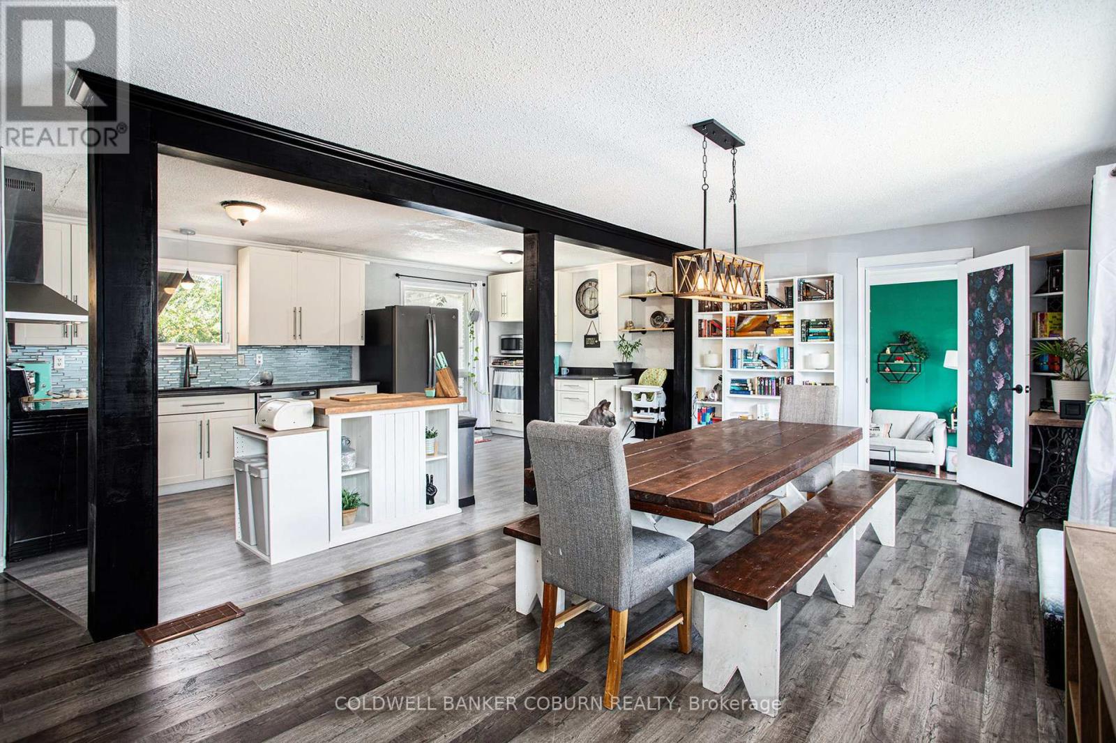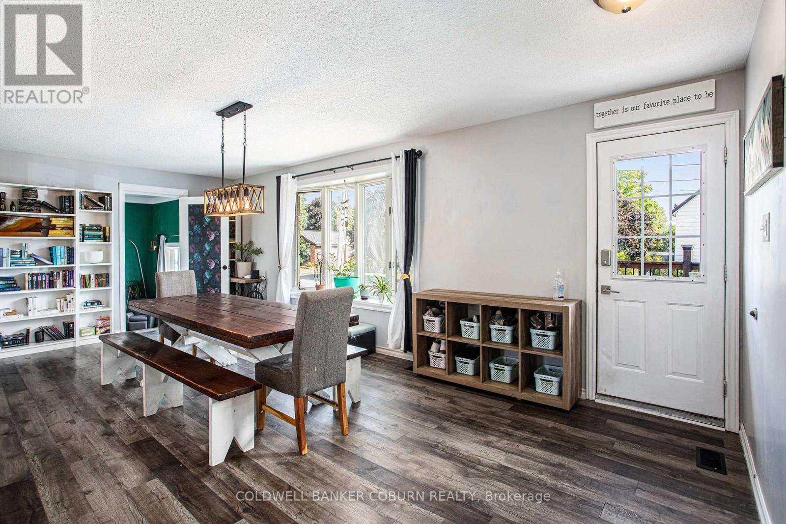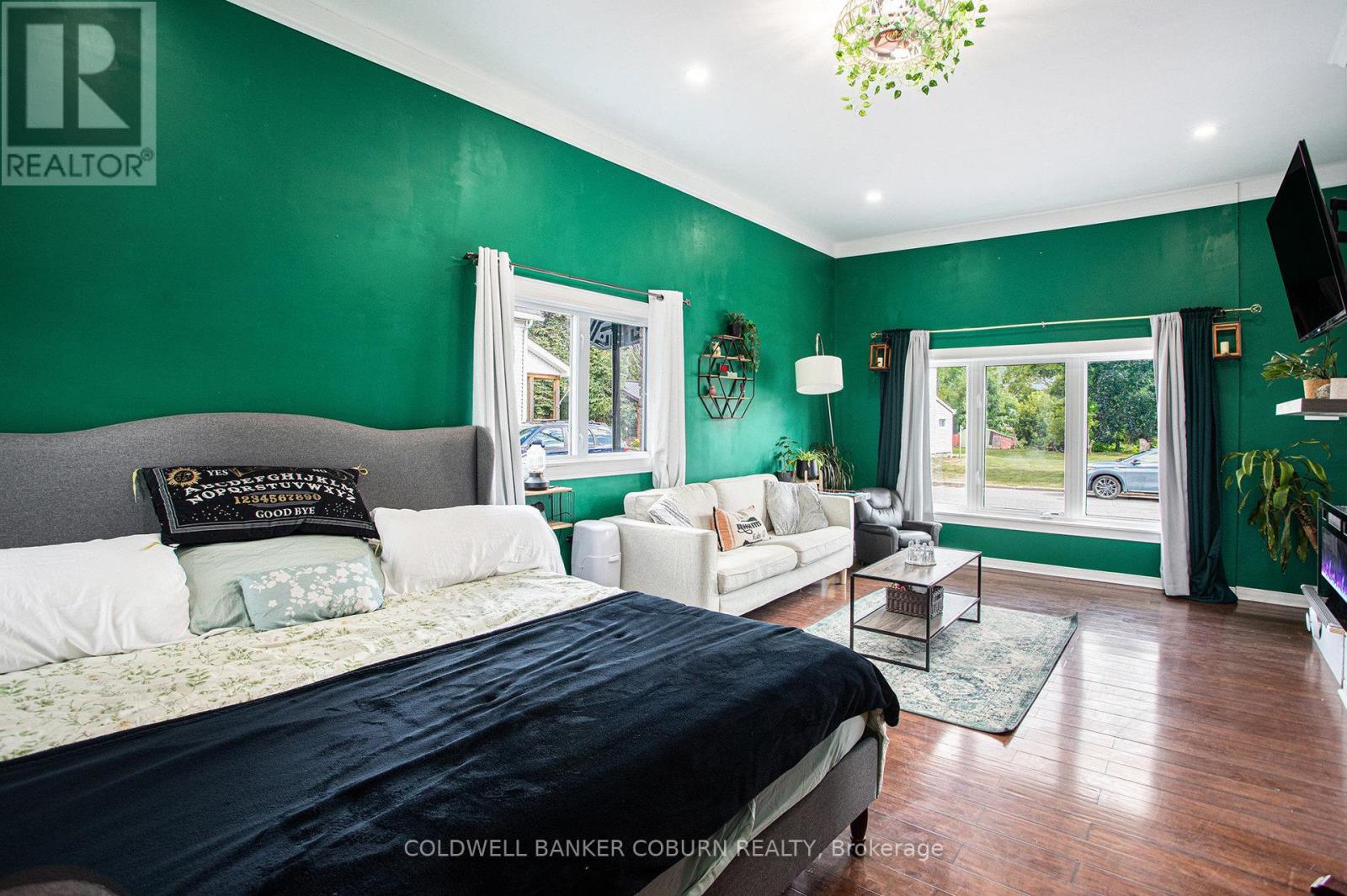 Spacious and bright bungalow in the heart of Chesterville! This home offers 3 bedrooms upstairs and 2 downstairs, along with 2 full bathrooms, including a main floor bath with cheater ensuite. The main floor features an open-concept layout and a sunny dining area, perfect for family gatherings. The garage has been thoughtfully converted into a family room/primary bedroom (6th bedroom) with cosy fireplace, but could be returned to its original use. Many updates including new flooring throughout, kitchen cabinets, front porch and new bathroom. Enjoy low-maintenance living with a solid brick exterior and durable metal roof. The fenced-in yard and storage shed add convenience and privacy. Located in the charming village of Chesterville, everything you need is within walking distance - shopping, arena, pharmacy, restaurants, and Chesterville's beautiful waterfront. This home combines functionality, charm, and a fantastic location for family living! (id:49063)