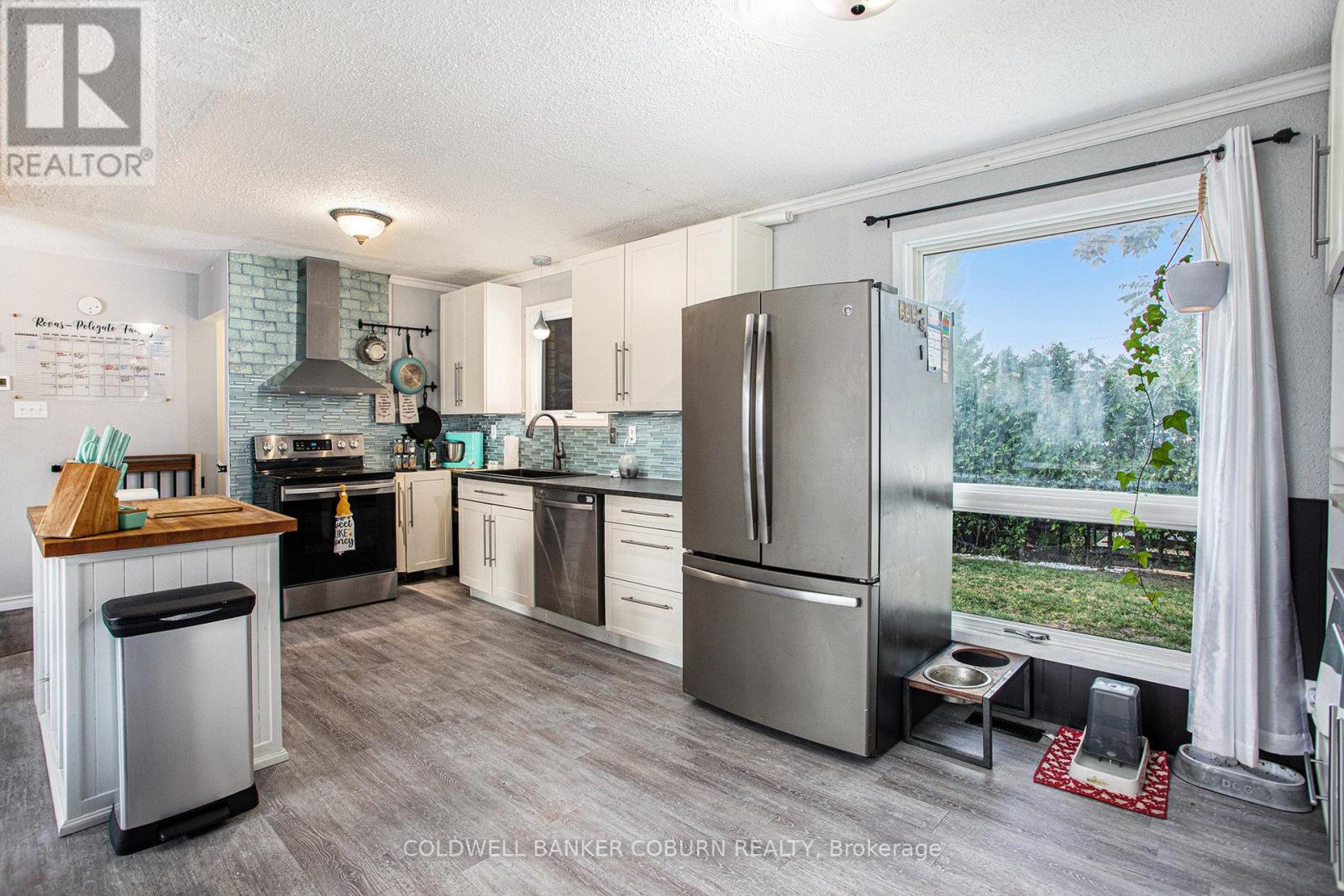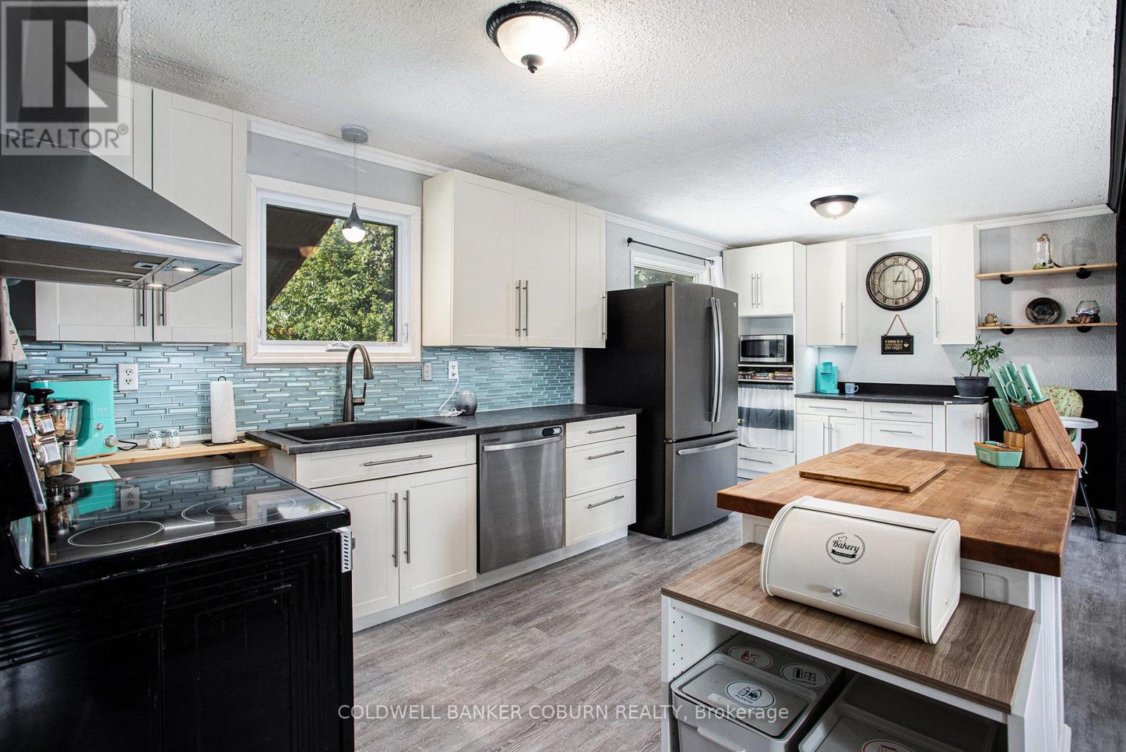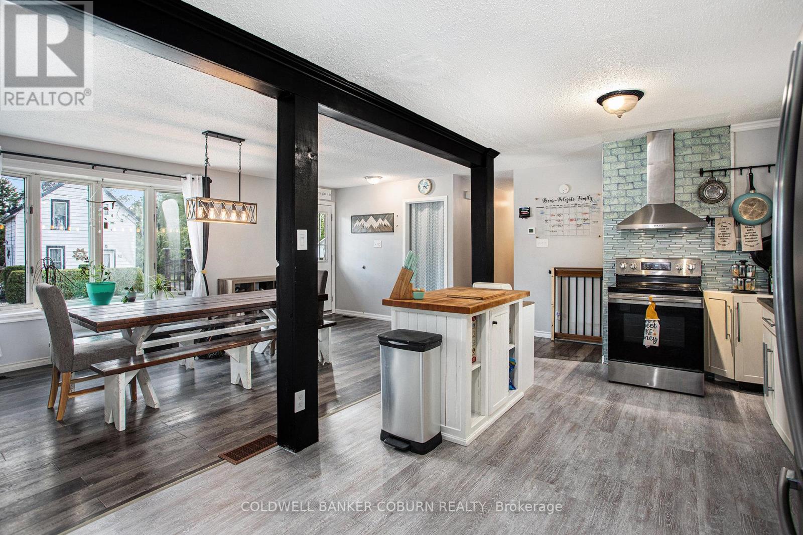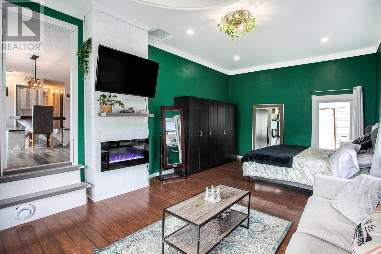 Spacious and bright bungalow in the heart of Chesterville! This home offers 3 bedrooms upstairs and 2 downstairs, along with 2 full bathrooms, including a main floor bath with cheater ensuite. The main floor features an open-concept layout and a sunny dining area, perfect for family gatherings. The garage has been thoughtfully converted into a family room/primary bedroom (6th bedroom) with cosy fireplace, but could be returned to its original use. Many updates including new flooring throughout, kitchen cabinets, front porch and new bathroom. Enjoy low-maintenance living with a solid brick exterior and durable metal roof. The fenced-in yard and storage shed add convenience and privacy. Located in the charming village of Chesterville, everything you need is within walking distance - shopping, arena, pharmacy, restaurants, and Chesterville's beautiful waterfront. This home combines functionality, charm, and a fantastic location for family living! (id:49063)