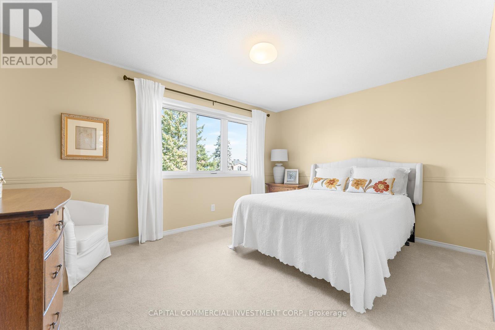 Welcome to this impeccably maintained 4 bed / 4 bath home on a quiet crescent in Bridlewood, blending modern design with timeless style. Upon entering the spacious entryway, the main floor showcases hardwood flooring, large windows with California shutters, and a floor plan that lends itself to growing families; boasting a sizeable living room, private dining room, convenient main floor laundry, powder room, and cozy sunken family room with gas fireplace. The expansive custom eat-in kitchen is freshly renovated with granite countertops, ample cabinetry and stainless steel appliances. The patio door from the eat-in kitchen provides easy access to the peaceful, south facing backyard, with large deck, creating the perfect setting for outdoor dining, relaxation, or entertaining. Surrounded by beautifully landscaped perennial gardens and a lush cedar hedge for maximum privacy, the backyard is a true retreat. Both the front and rear yards have been fully landscaped with the utmost detail in mind. The charming staircase to the 2nd floor is filled with sunlight from the updated skylight. Through French doors, the stunning primary suite awaits, featuring a spacious walk-in closet, a serene reading nook with window bench, and a beauty station. The open-concept ensuite is nothing short of luxurious, offering dual sinks, an open concept rain shower, heated floors and a spa-like atmosphere. An adjoining bedroom connected to the primary suite is ideal as a nursery, cozy retreat, or can be easily converted back to a private 4th bedroom. The secondary bedrooms have generous square footage conveniently located near the updated 4-piece bath. The fully finished lower level adds even more living space, including a large rec room, 3-piece bath, and generous storage area complete with built-in shelving. Access Bridlewood Park via public path on Tower Hill Crs. Located within walking distance to top-rated schools, shopping, recreation and more! Roof 2019. Furnace 2023. Windows 2015-2019. (id:49063)