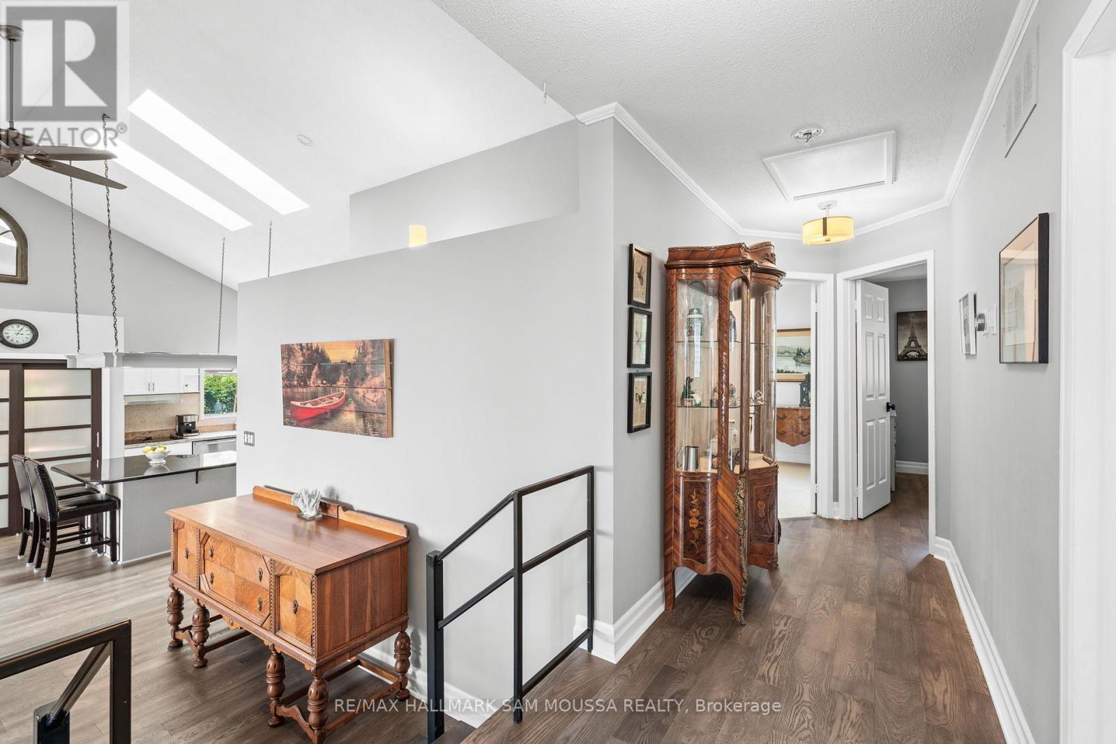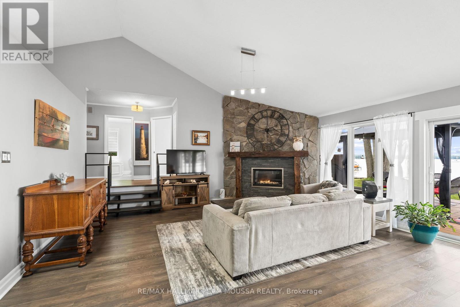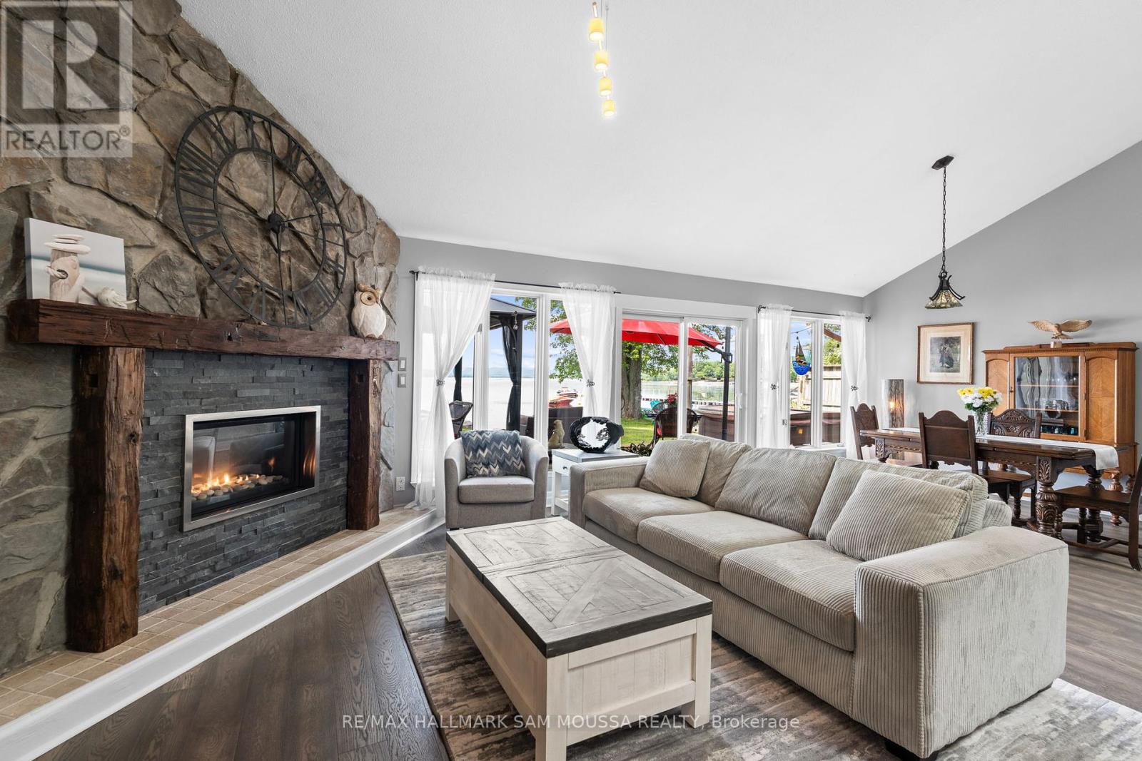 Welcome to 4350 Armitage Avenue, an exceptional waterfront bungalow offering year-round living on the Ottawa River with breathtaking, unobstructed views and a sandy beach shoreline perfect for swimming, boating, kayaking, and fishing. Set on a generous sized lot in sought-after Dunrobin Shores, this beautifully maintained home offers a spacious layout with 3 bedrooms, 2 full bathrooms, and a versatile loft above the garage. The sun-filled living room with a cozy fireplace flows into a bright dining area and an updated kitchen with built-in appliances, while the sunroom provides the perfect place to relax and enjoy the view. The newly renovated primary suite features tons of closet space and renovated ensuite. Enjoy direct water access for all your recreational needs, with gentle entry for swimmers and plenty of space to dock a boat or launch a paddleboard. Additional highlights include a detached double garage, an oversized driveway, and numerous updates including well, hardwood floors, roof, and more. This is an ideal opportunity to enjoy a serene waterfront lifestyle just minutes from city conveniences. (id:49063)