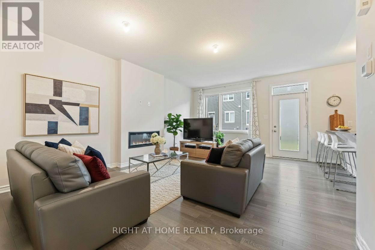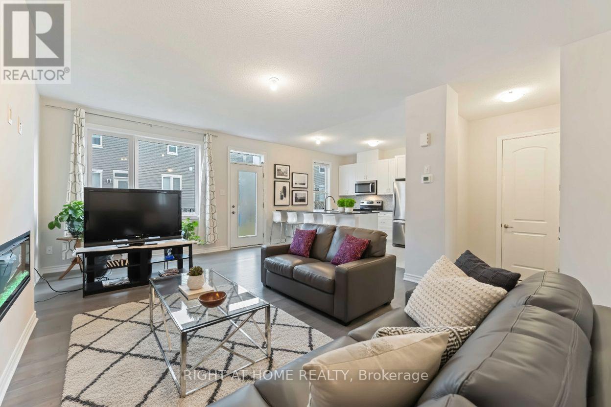 Beautiful executive townhome in one of Barrhaven's most desirable neighbourhoods. This 3-bedroom, 3.5-bath home offers modern comfort and stylish living throughout. Enjoy 9 ft ceilings, rich hardwood floors, and ceramic tile in the foyer, mudroom, and all bathrooms. The impressive kitchen features quartz countertops, excellent cabinet storage, and soft-close drawers and doors. The bright and spacious primary suite includes a walk-in closet and a sleek en-suite with a glass walk-in shower. Two additional well-sized bedrooms each feature their own walk-in closet, accompanied by a lovely family bathroom. The fully finished basement adds valuable living space with a large rec room and a convenient 4th bathroom. The backyard provides plenty of room for outdoor relaxation and play. Located just minutes to Costco, Chapman Mills Marketplace, Minto Rec Centre, top-rated schools, parks, and scenic walking trails. This is the kind of home that welcomes you warmly every single day - beautifully finished, thoughtfully designed, and perfectly placed in a community. (id:49063)