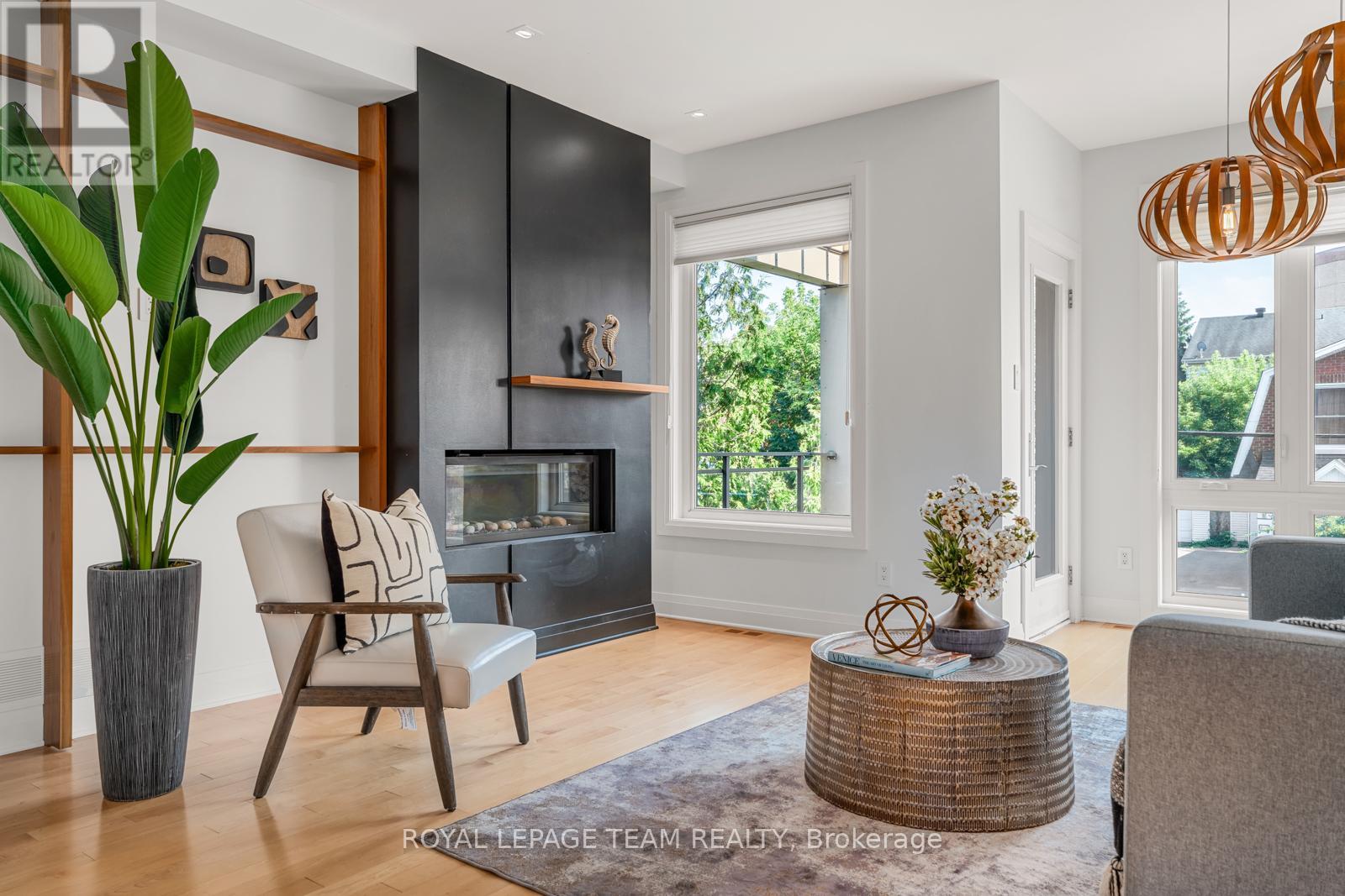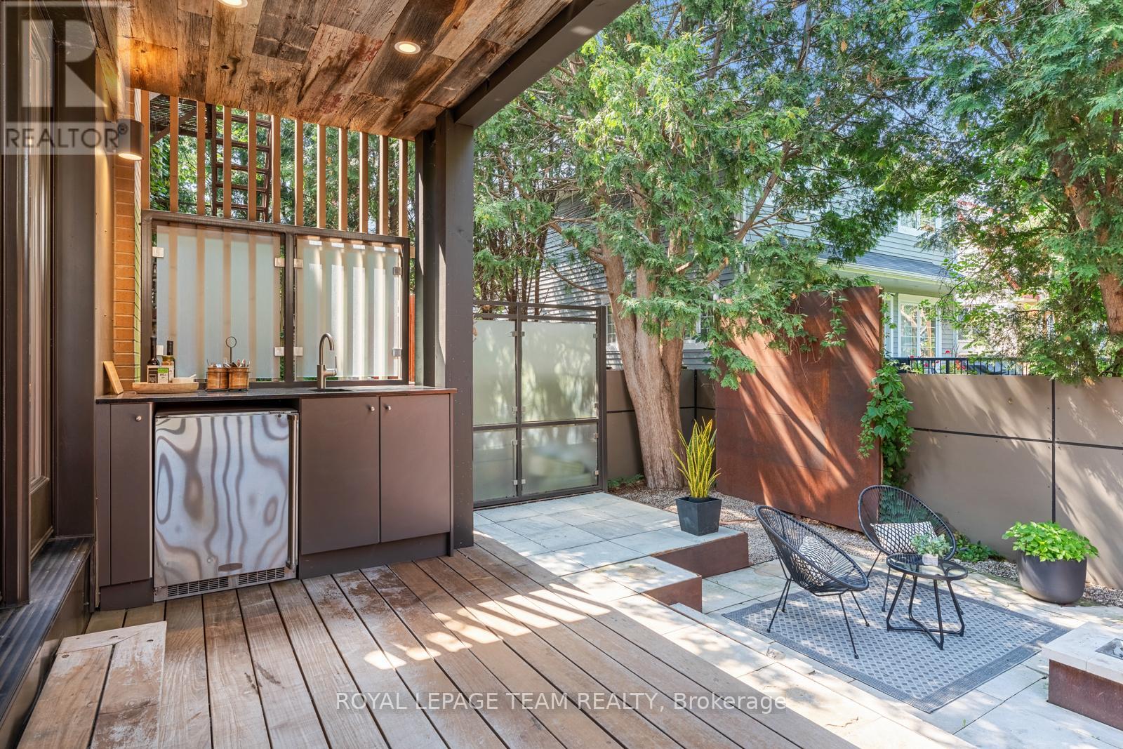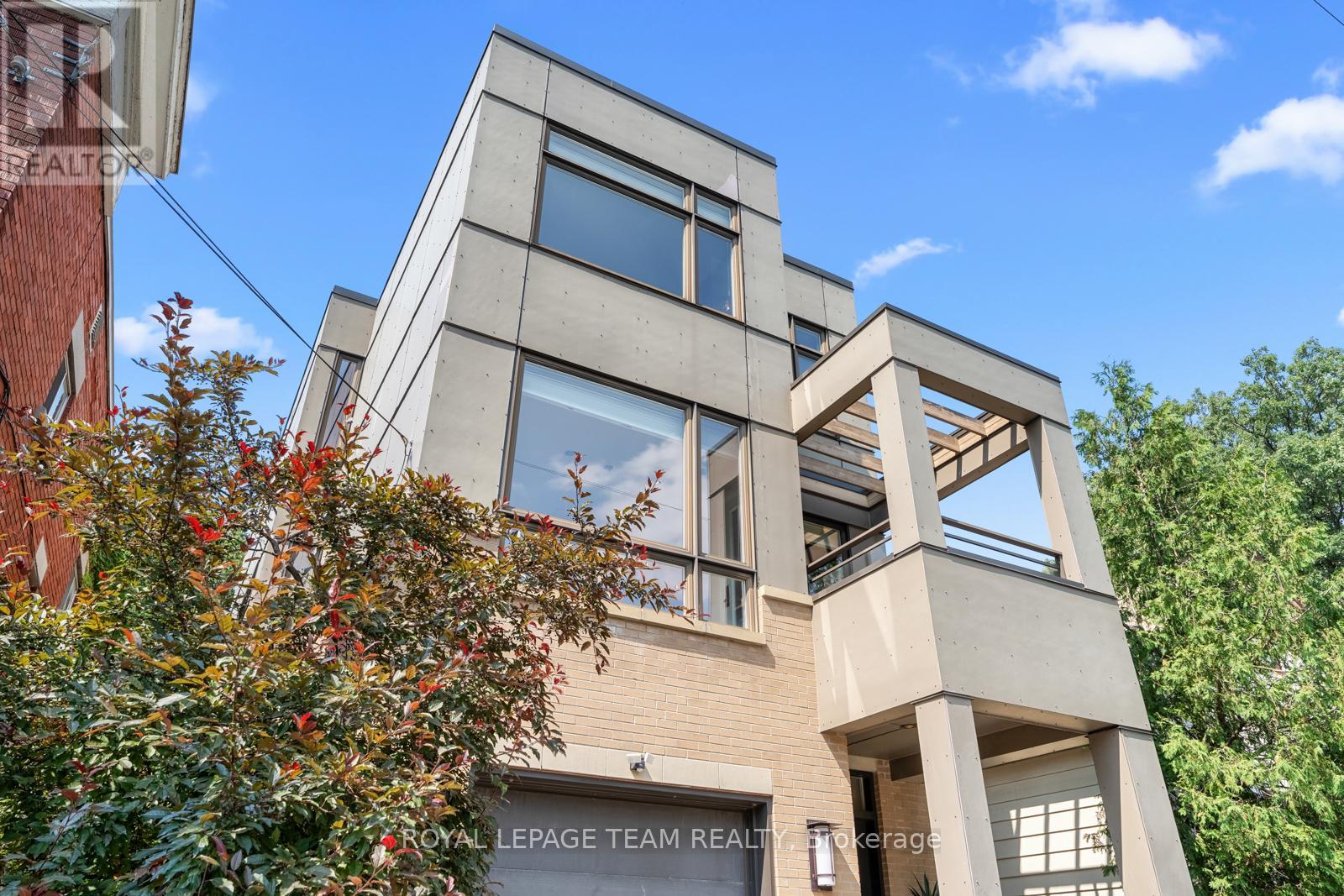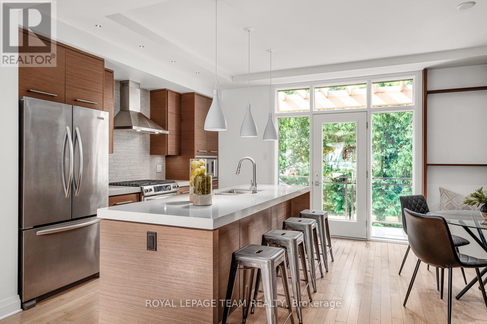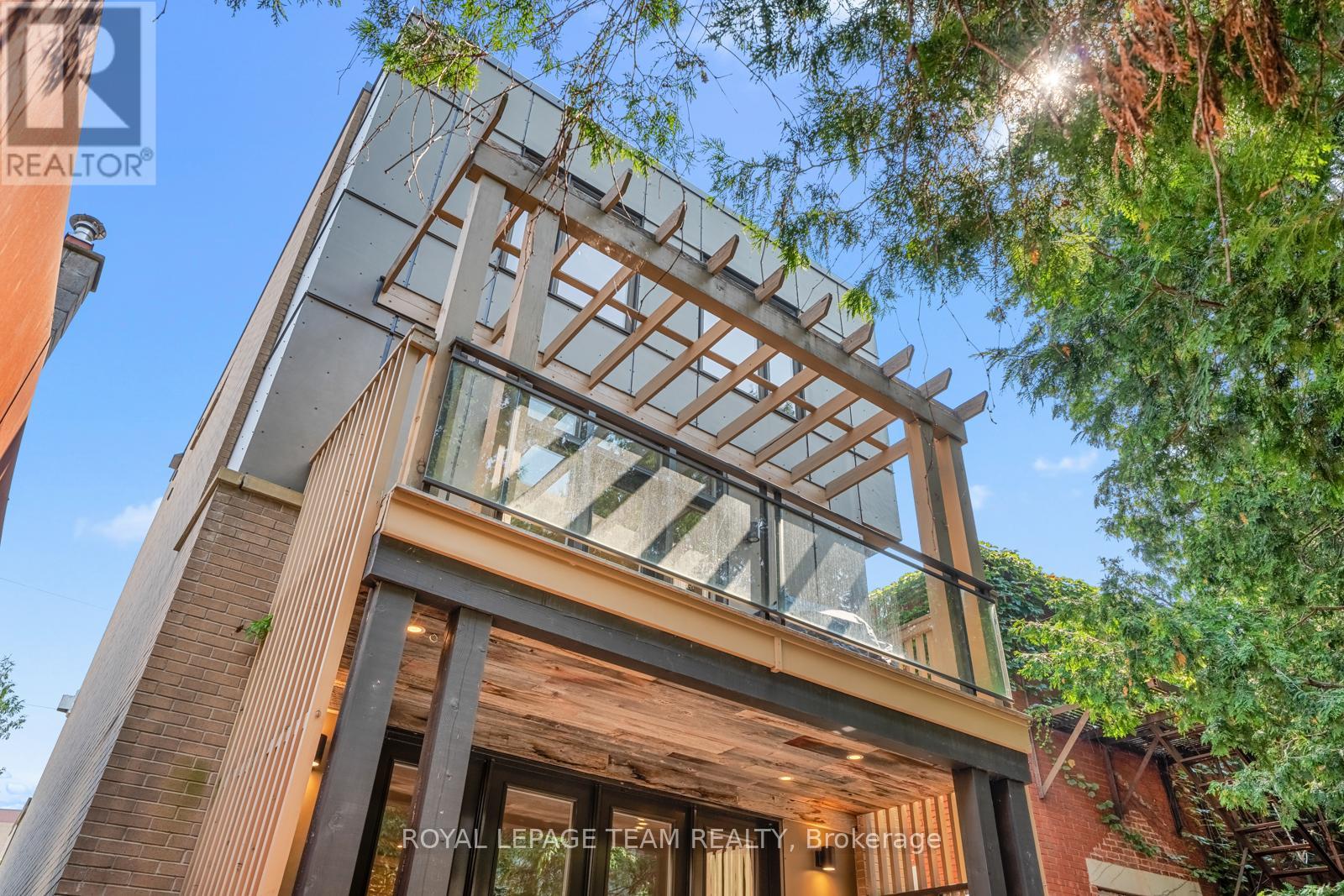Bold, modern, and brilliantly located50 Bertrand is a luminous infill in historic New Edinburgh, steps from the dramatic Rideau Falls, riverside trails, and a footbridge to downtown. On the main floor, a sunlit family room opens to a private entertaining deck with built-in bar, overhead pot lights, and covered roofframed by tall cedars and fenced for privacy. The second level is made for gathering: chefs kitchen with quartz island, built-in wine bar, and terrace access flows into stunning living and dining space with sculptural lighting and sleek feature wall. Upstairs, the treetop primary suite offers a decadent ensuite and custom walk-in closet. Two additional bedrooms, large main bath, and spacious laundry room complete the top floor. Pale hardwood, high ceilings, and refined millwork carry throughout. A generous garage, deep lower-level storage, and polished spaces add everyday ease. Sophisticated, vibrant, and thoughtfully designed New Edinburgh living at its best. (id:49063)