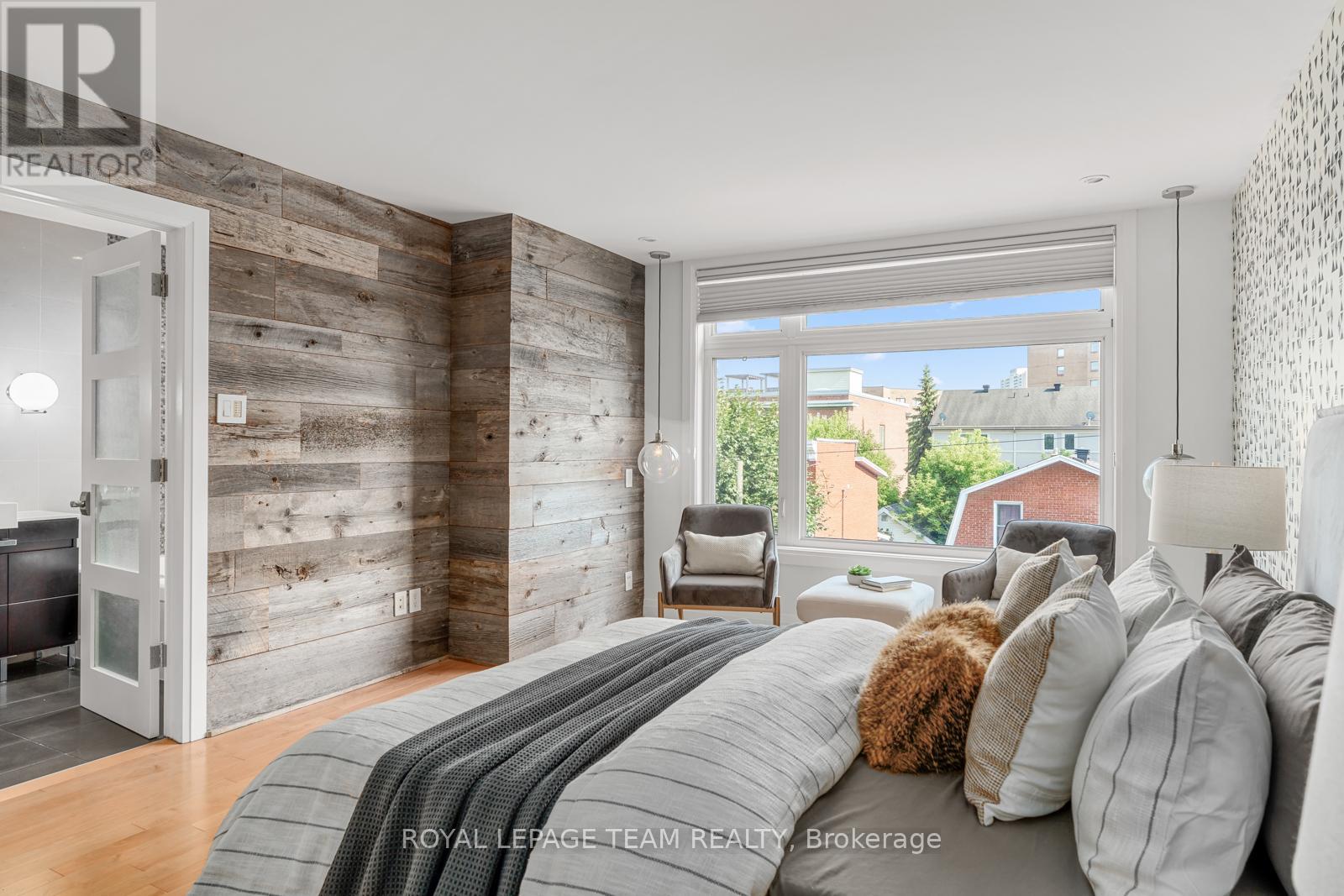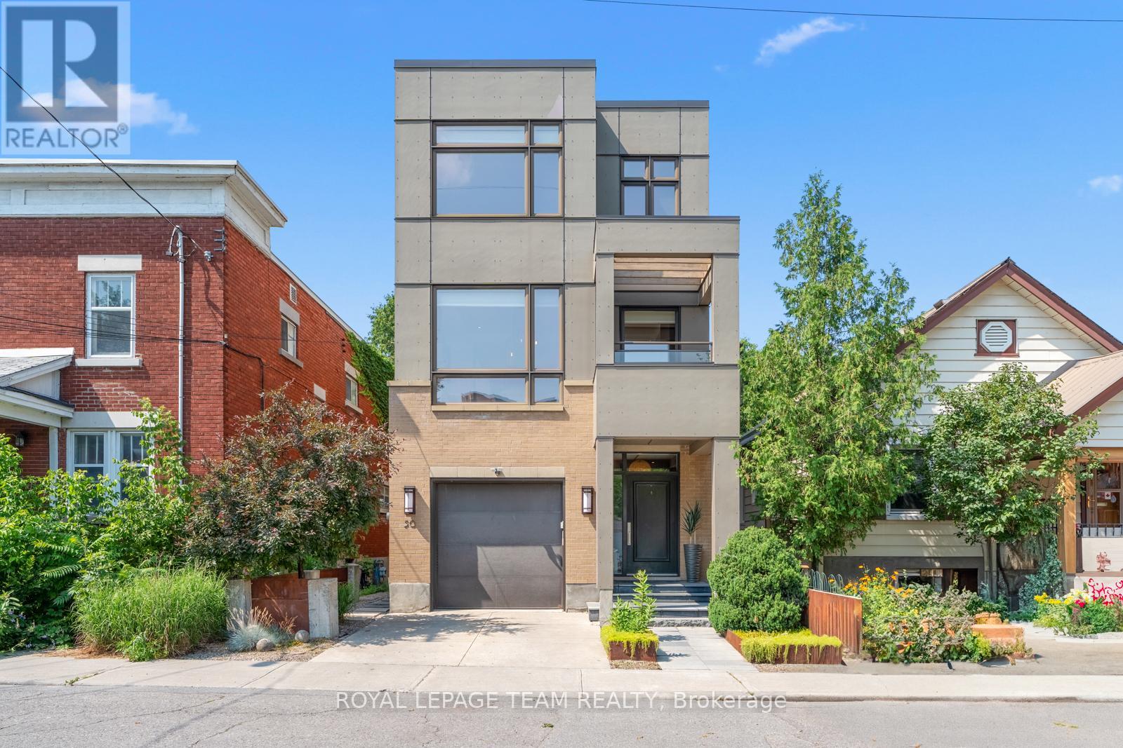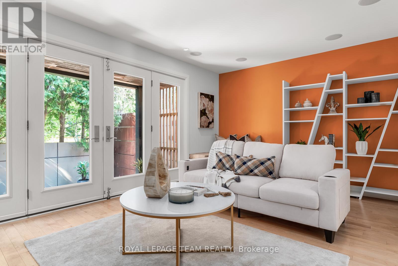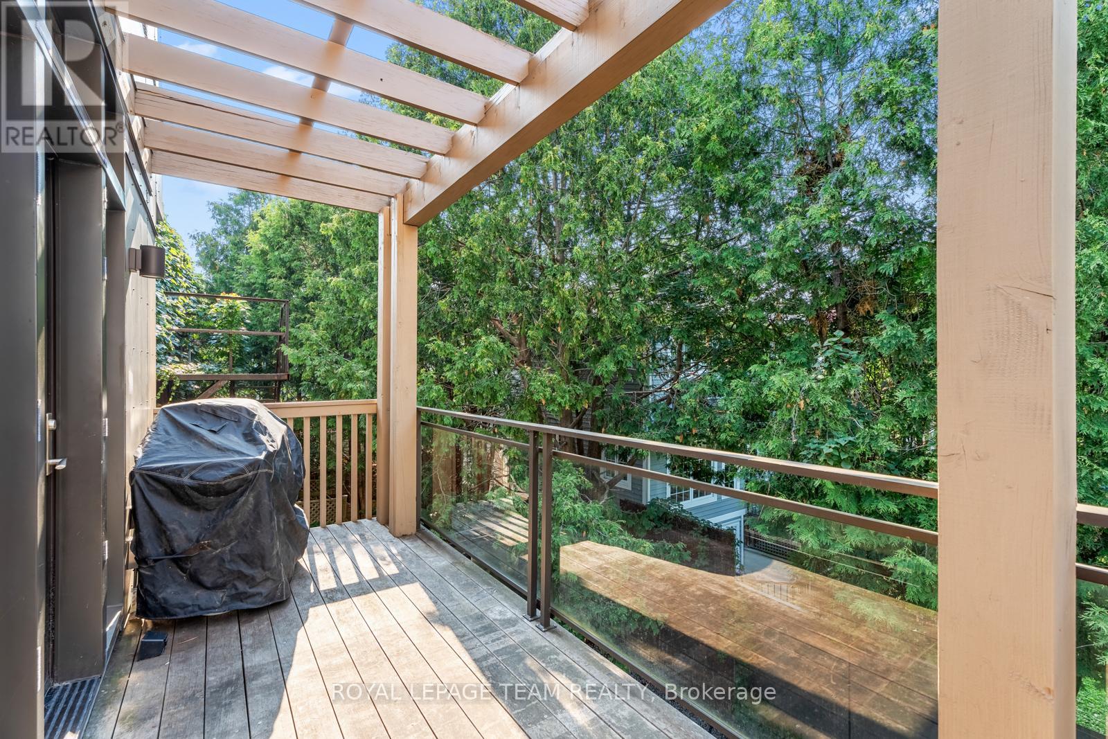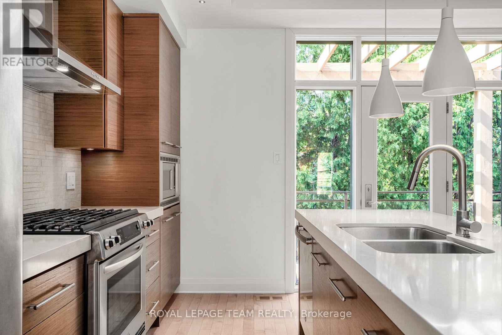 Bold, modern, and brilliantly located50 Bertrand is a luminous infill in historic New Edinburgh, steps from the dramatic Rideau Falls, riverside trails, and a footbridge to downtown. On the main floor, a sunlit family room opens to a private entertaining deck with built-in bar, overhead pot lights, and covered roofframed by tall cedars and fenced for privacy. The second level is made for gathering: chefs kitchen with quartz island, built-in wine bar, and terrace access flows into stunning living and dining space with sculptural lighting and sleek feature wall. Upstairs, the treetop primary suite offers a decadent ensuite and custom walk-in closet. Two additional bedrooms, large main bath, and spacious laundry room complete the top floor. Pale hardwood, high ceilings, and refined millwork carry throughout. A generous garage, deep lower-level storage, and polished spaces add everyday ease. Sophisticated, vibrant, and thoughtfully designed New Edinburgh living at its best. (id:49063)