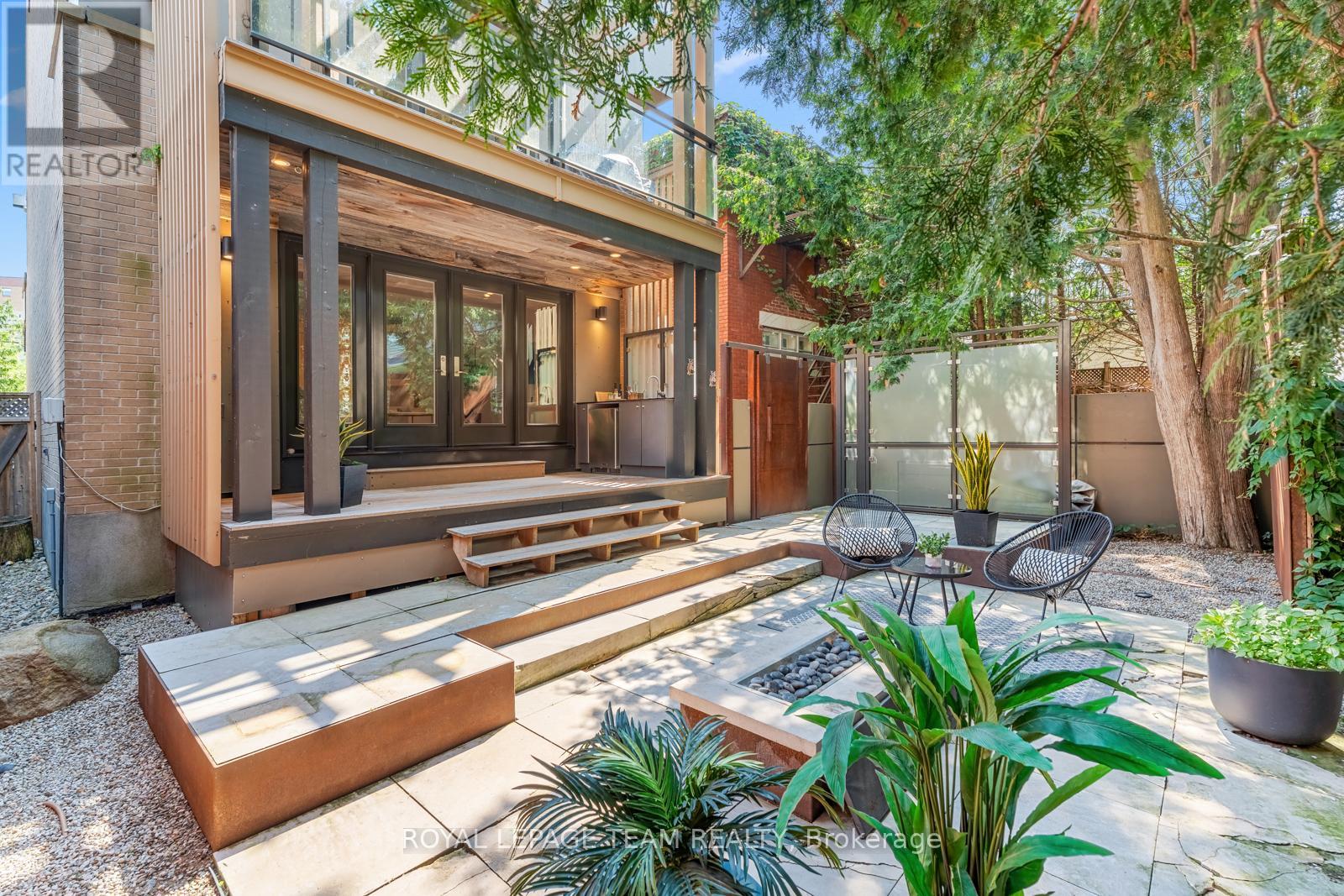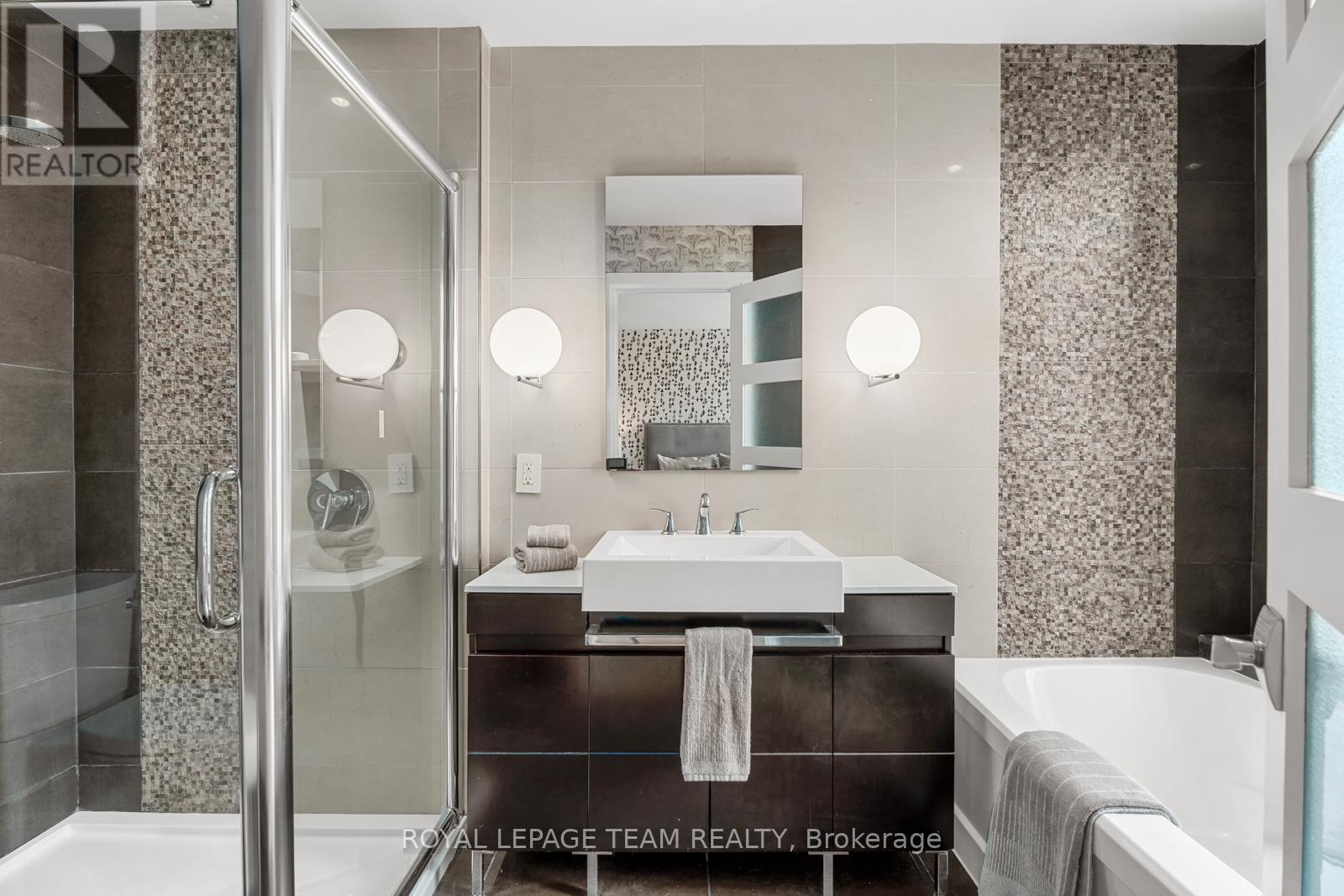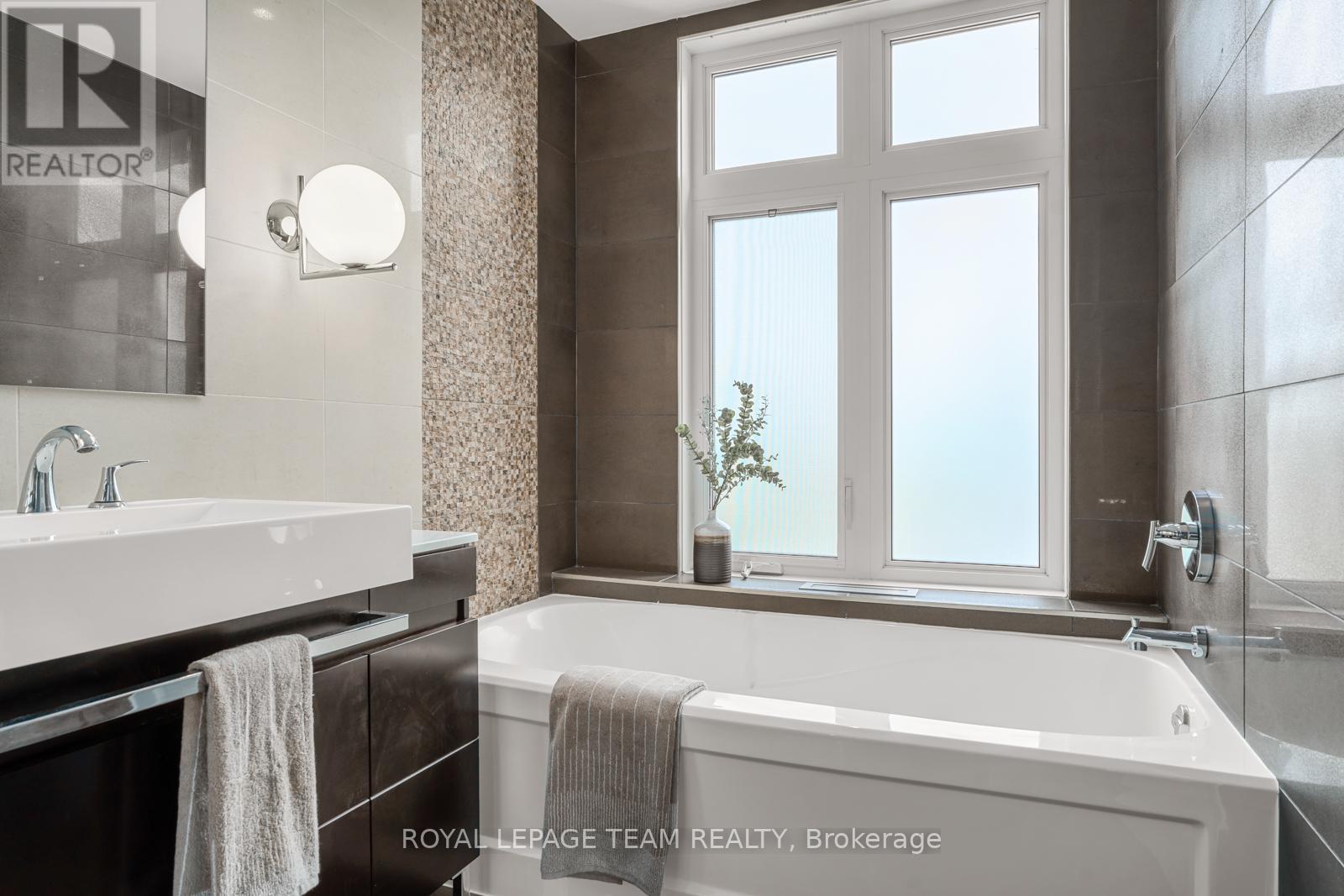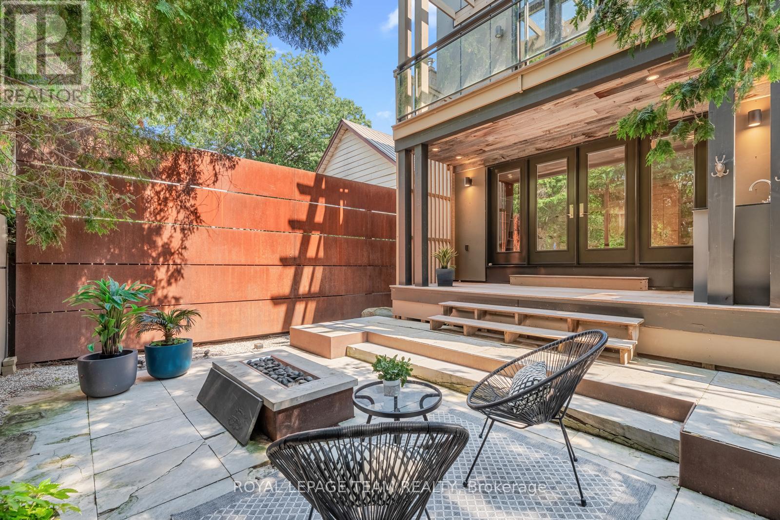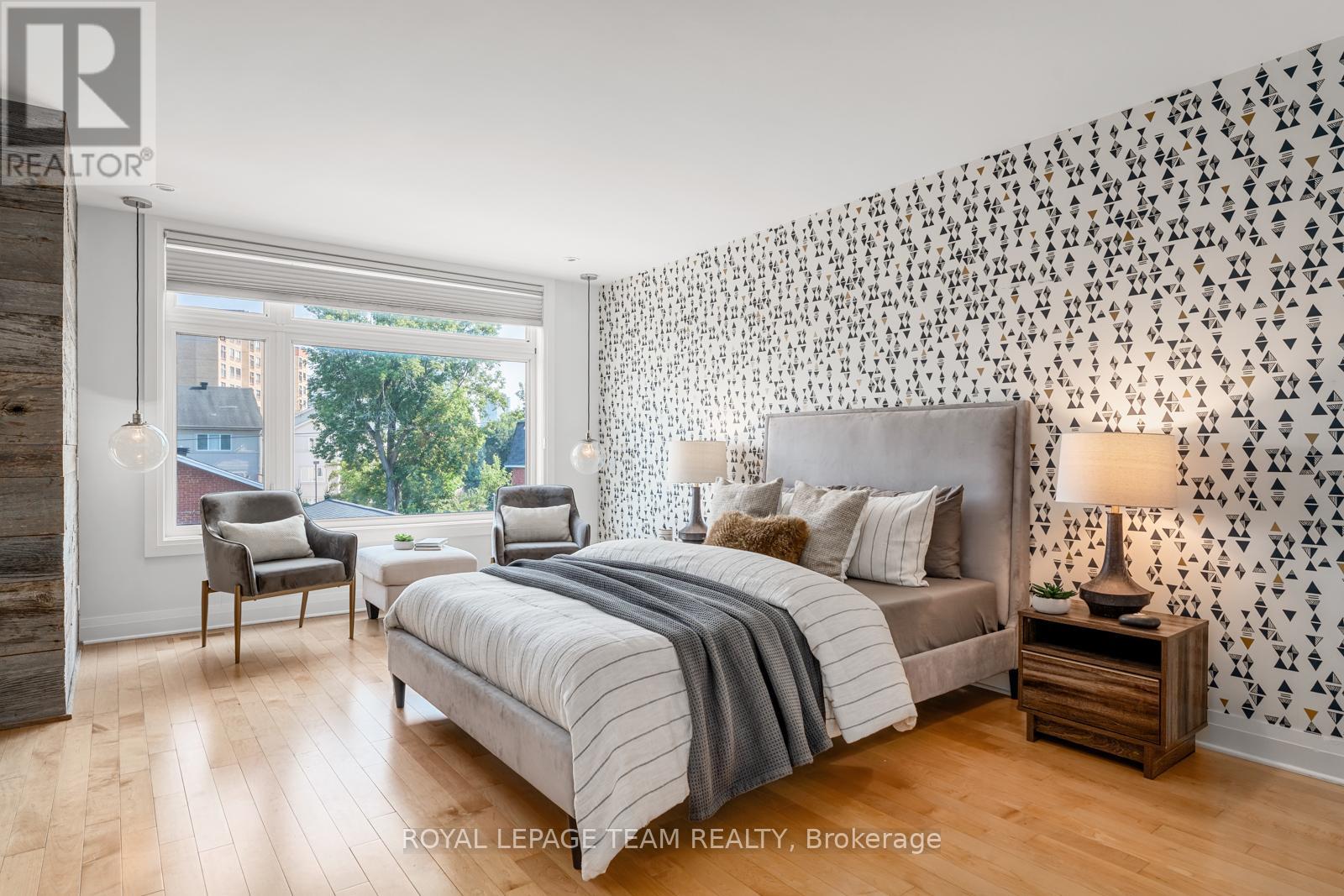 Bold, modern, and brilliantly located50 Bertrand is a luminous infill in historic New Edinburgh, steps from the dramatic Rideau Falls, riverside trails, and a footbridge to downtown. On the main floor, a sunlit family room opens to a private entertaining deck with built-in bar, overhead pot lights, and covered roofframed by tall cedars and fenced for privacy. The second level is made for gathering: chefs kitchen with quartz island, built-in wine bar, and terrace access flows into stunning living and dining space with sculptural lighting and sleek feature wall. Upstairs, the treetop primary suite offers a decadent ensuite and custom walk-in closet. Two additional bedrooms, large main bath, and spacious laundry room complete the top floor. Pale hardwood, high ceilings, and refined millwork carry throughout. A generous garage, deep lower-level storage, and polished spaces add everyday ease. Sophisticated, vibrant, and thoughtfully designed New Edinburgh living at its best. (id:49063)
