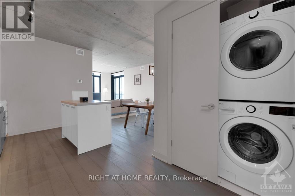 Ottawa's High-End Living In 1002 Sqft condo+ 74 Sqft balcony+ 1 underground Parking, rare 2-BED, 2-BATH unit features exposed concrete ceilings, floor to ceiling windows, exposed concrete walls, pre-finished engineered wood floors, large balcony with gas bbq hookup. Modern European style cabinetry in this sleek kitchen with quartz countertop, glass tile backsplash, stainless steel appliances, gas cooktop, built-in oven, exhaust hood. The bathroom features custom designed European style cabinetry. Appreciate building amenities such as a lounge area, gym, an outdoor terrace & pool and several visitor parking spaces, SECURE building with 12 hour concierge service, security cameras in major areas, key fob system. Walking distance to the YMCA, groceries & all shopping along Bank St., the Glebe, bike paths & trails along the Canal, Parking spot C-7 P5 level! Heat, Hot Water and heat is included in rent. (id:49063)