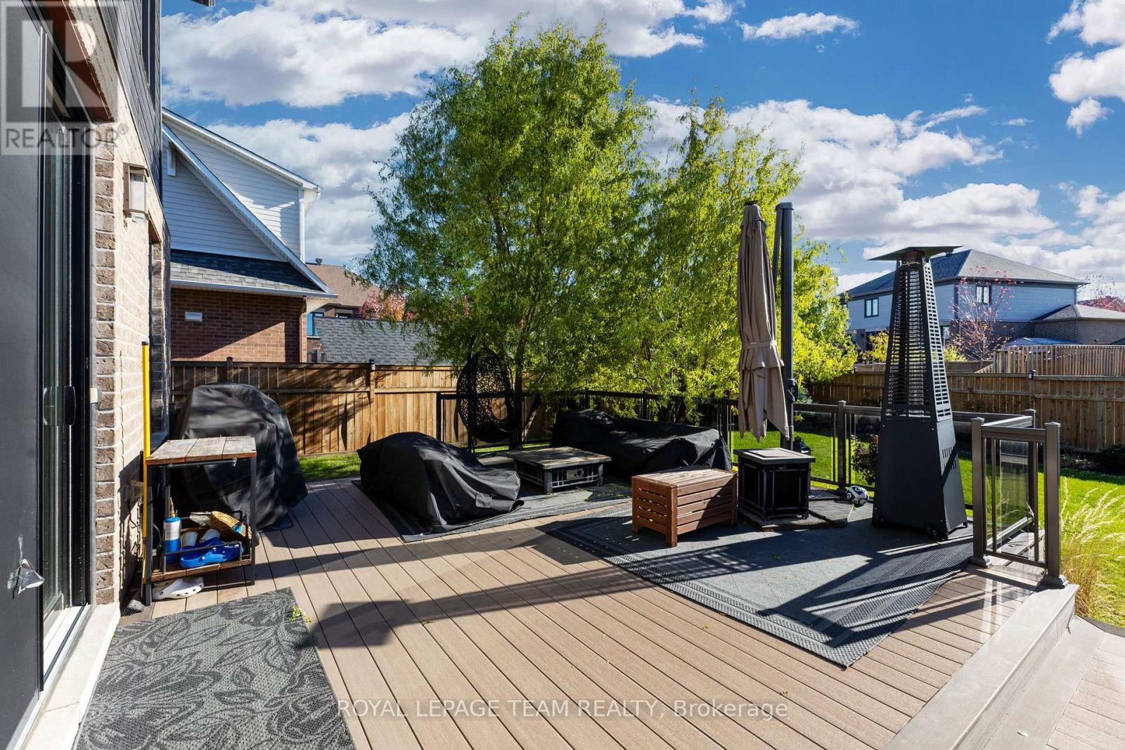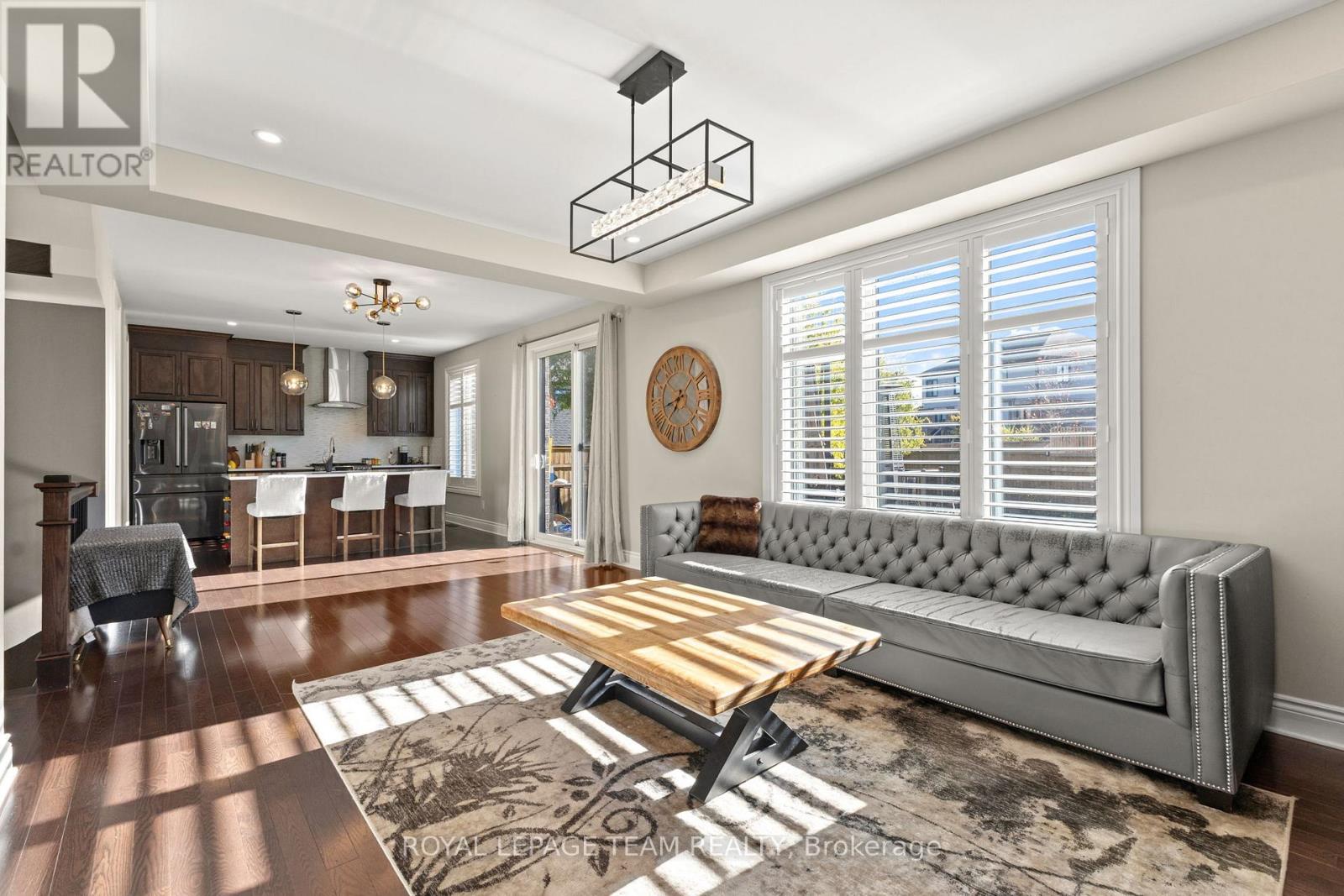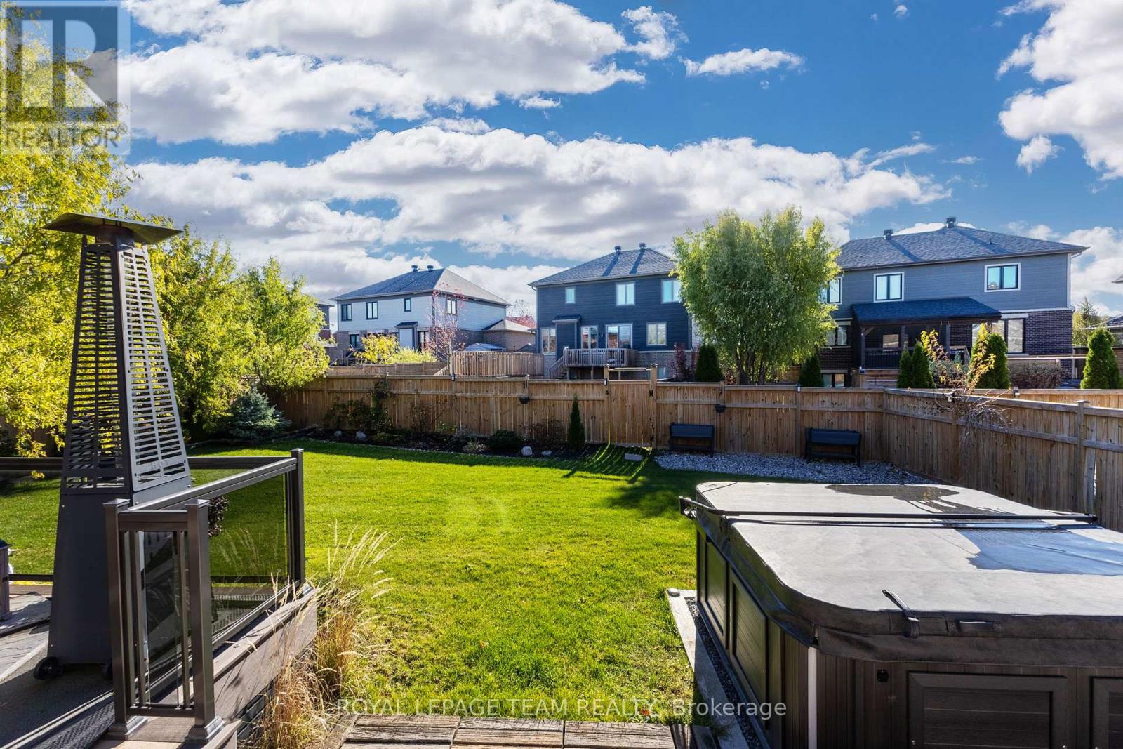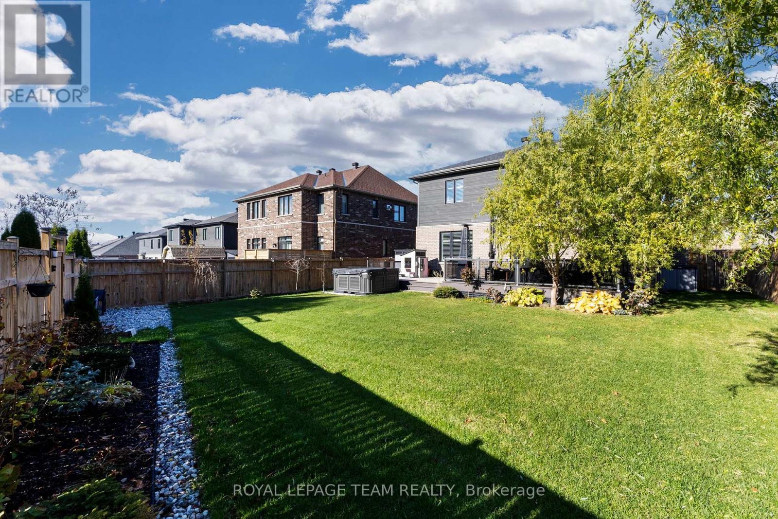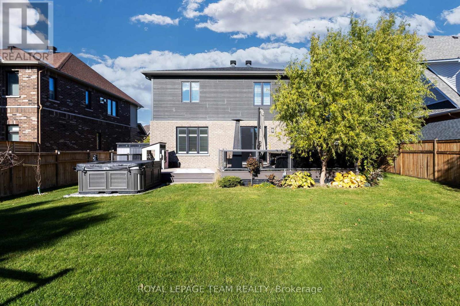 What a stunning and meticulously maintained home in Mahogany Phase One that I believe offers the lifestyle you are seeking.This gorgeous home spans approximately 2,800 sq ft, boasts a large backyard, and is situated in a highly desirable neighborhood. Its north-facing orientation ensures the breakfast area is bathed in morning sun. On the first floor, you'll find a separate dining area, a charming sunny breakfast area, and a large den, perfect for a home office. The spacious kitchen features an oversized island, extensive storage, and an eat-in area that seamlessly connects to a stunning family room with a custom coffered ceiling and a beautiful fireplace. A custom-designed mudroom efficiently organizes coats and boots, leading to a powder room and a large double-car garage. Outside, a beautiful deck and professional landscaping provide ample space for a play structure. Upstairs, there are three sizable bedrooms and an open-concept den area, ideal for a children's play space or a family reading nook. The large primary bedroom is a true escape, featuring a custom walk-in closet with a boutique feel and a gorgeous spa-like ensuite with a double floating vanity, a luxurious freestanding tub, and a glass-encased walk-in shower. The location offers exceptional convenience: it's a two-minute walk to a park and a two-minute drive to Manotick Main Street, which features top-rated restaurants and shops. The community itself provides large green spaces, ponds, and family-friendly parks. With its thoughtful design, expansive floor plan, and quick connection to both nature and the conveniences of Manotick's main street, this home offers an extraordinary and truly one-of-a-kind living experience. (id:49063)