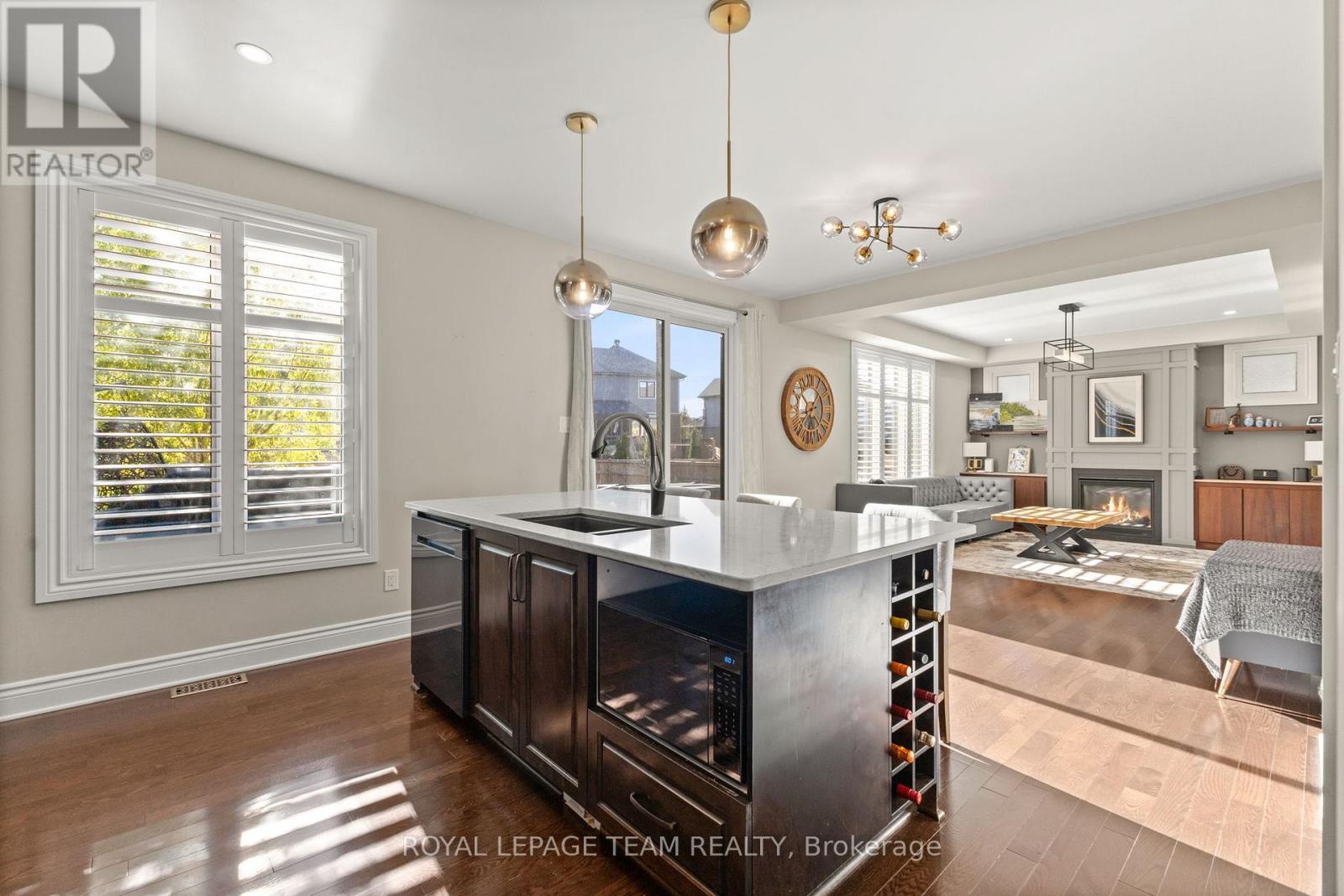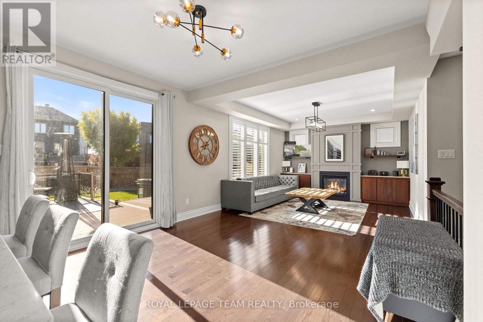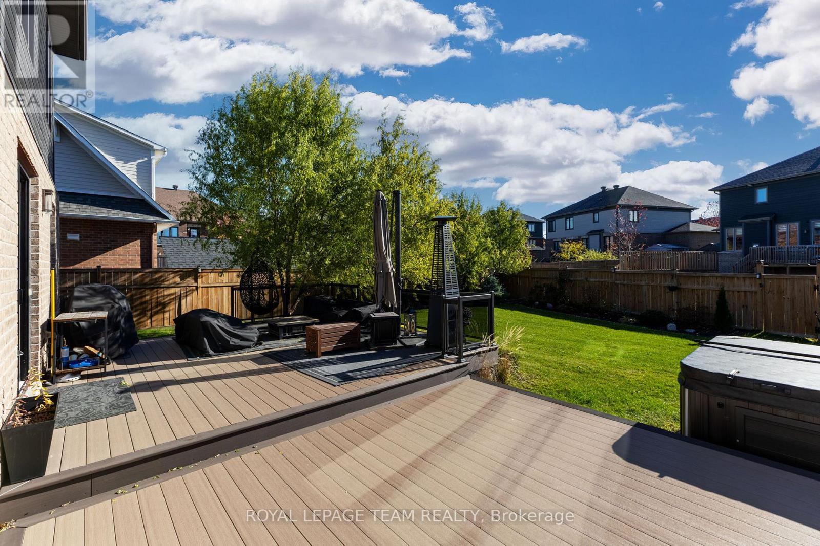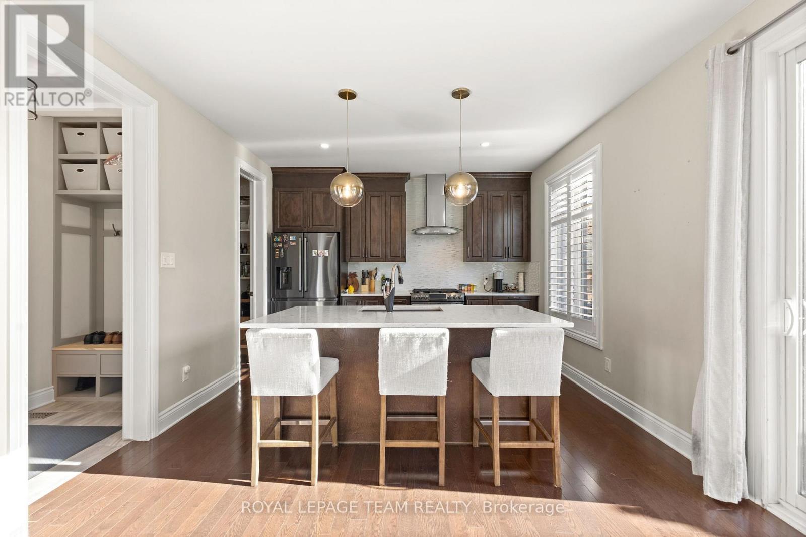 What a stunning and meticulously maintained home in Mahogany Phase One that I believe offers the lifestyle you are seeking.This gorgeous home spans approximately 2,800 sq ft, boasts a large backyard, and is situated in a highly desirable neighborhood. Its north-facing orientation ensures the breakfast area is bathed in morning sun. On the first floor, you'll find a separate dining area, a charming sunny breakfast area, and a large den, perfect for a home office. The spacious kitchen features an oversized island, extensive storage, and an eat-in area that seamlessly connects to a stunning family room with a custom coffered ceiling and a beautiful fireplace. A custom-designed mudroom efficiently organizes coats and boots, leading to a powder room and a large double-car garage. Outside, a beautiful deck and professional landscaping provide ample space for a play structure. Upstairs, there are three sizable bedrooms and an open-concept den area, ideal for a children's play space or a family reading nook. The large primary bedroom is a true escape, featuring a custom walk-in closet with a boutique feel and a gorgeous spa-like ensuite with a double floating vanity, a luxurious freestanding tub, and a glass-encased walk-in shower. The location offers exceptional convenience: it's a two-minute walk to a park and a two-minute drive to Manotick Main Street, which features top-rated restaurants and shops. The community itself provides large green spaces, ponds, and family-friendly parks. With its thoughtful design, expansive floor plan, and quick connection to both nature and the conveniences of Manotick's main street, this home offers an extraordinary and truly one-of-a-kind living experience. (id:49063)
