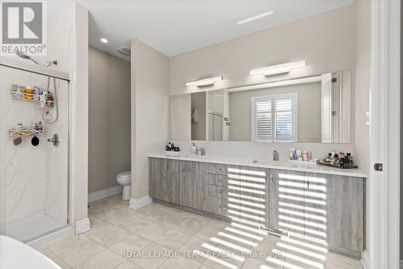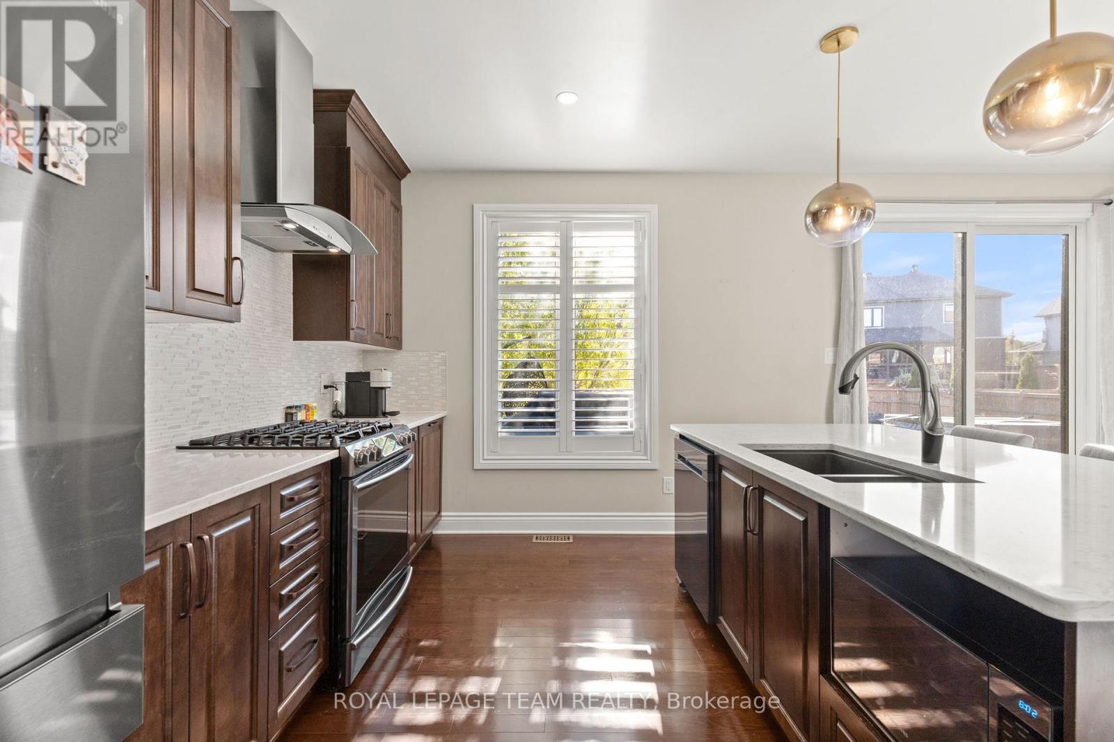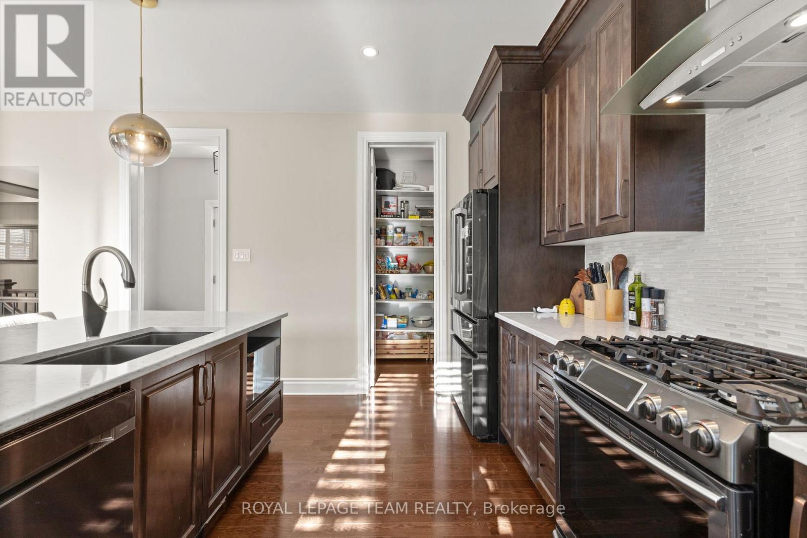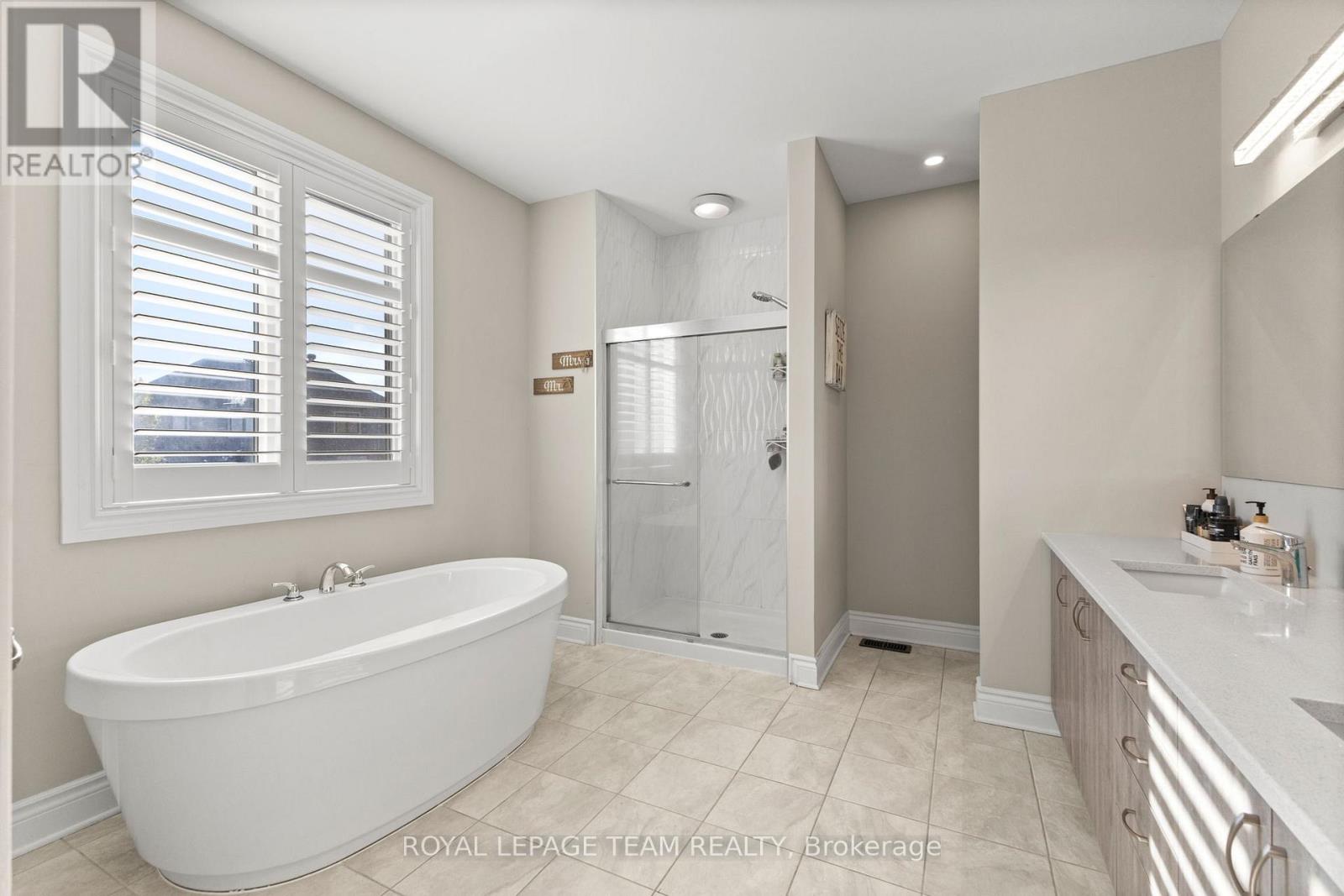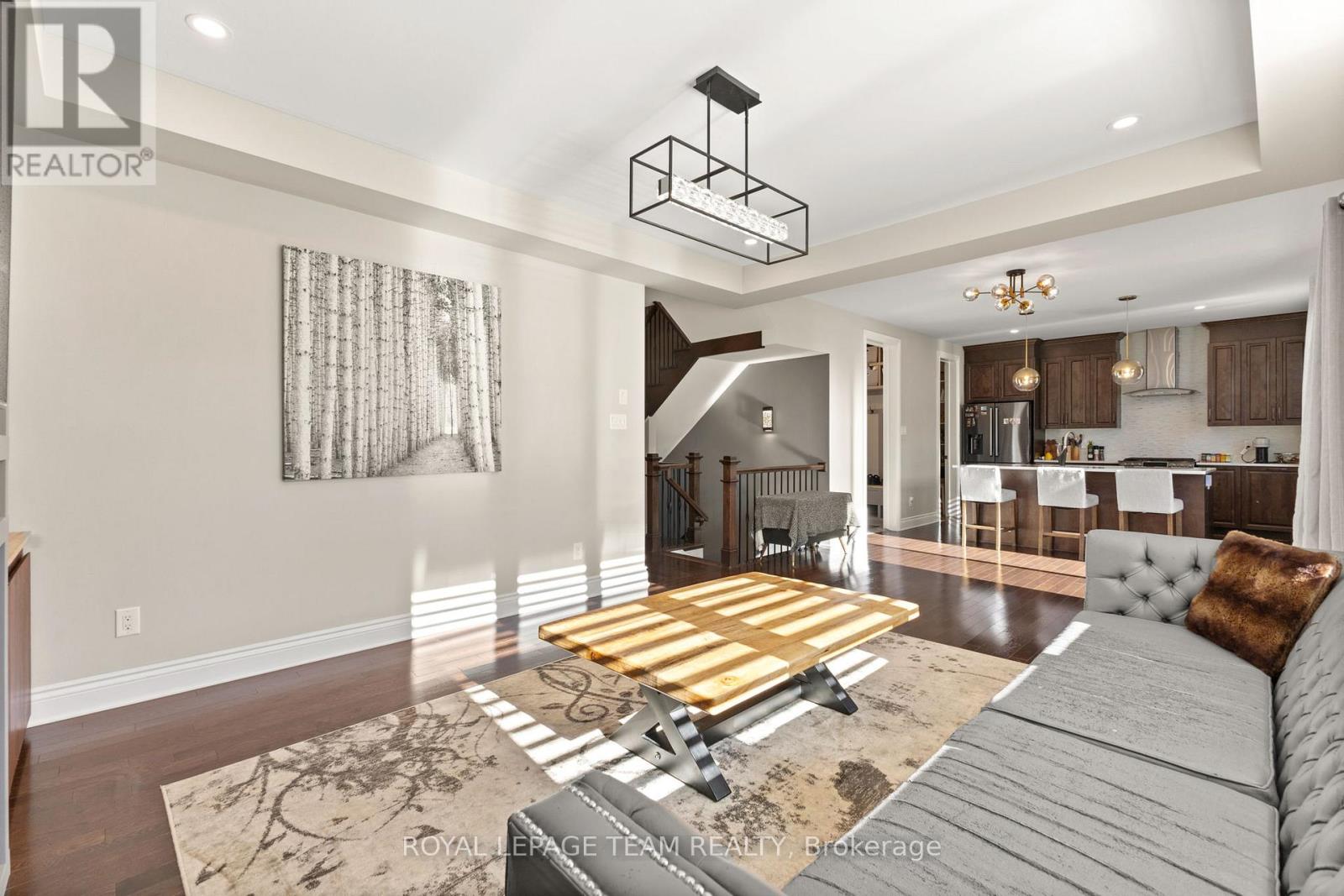 What a stunning and meticulously maintained home in Mahogany Phase One that I believe offers the lifestyle you are seeking.This gorgeous home spans approximately 2,800 sq ft, boasts a large backyard, and is situated in a highly desirable neighborhood. Its north-facing orientation ensures the breakfast area is bathed in morning sun. On the first floor, you'll find a separate dining area, a charming sunny breakfast area, and a large den, perfect for a home office. The spacious kitchen features an oversized island, extensive storage, and an eat-in area that seamlessly connects to a stunning family room with a custom coffered ceiling and a beautiful fireplace. A custom-designed mudroom efficiently organizes coats and boots, leading to a powder room and a large double-car garage. Outside, a beautiful deck and professional landscaping provide ample space for a play structure. Upstairs, there are three sizable bedrooms and an open-concept den area, ideal for a children's play space or a family reading nook. The large primary bedroom is a true escape, featuring a custom walk-in closet with a boutique feel and a gorgeous spa-like ensuite with a double floating vanity, a luxurious freestanding tub, and a glass-encased walk-in shower. The location offers exceptional convenience: it's a two-minute walk to a park and a two-minute drive to Manotick Main Street, which features top-rated restaurants and shops. The community itself provides large green spaces, ponds, and family-friendly parks. With its thoughtful design, expansive floor plan, and quick connection to both nature and the conveniences of Manotick's main street, this home offers an extraordinary and truly one-of-a-kind living experience. (id:49063)