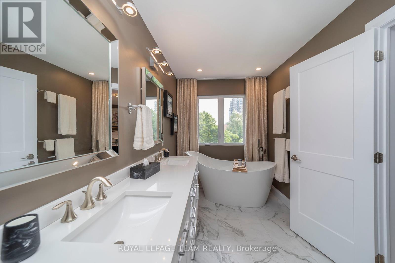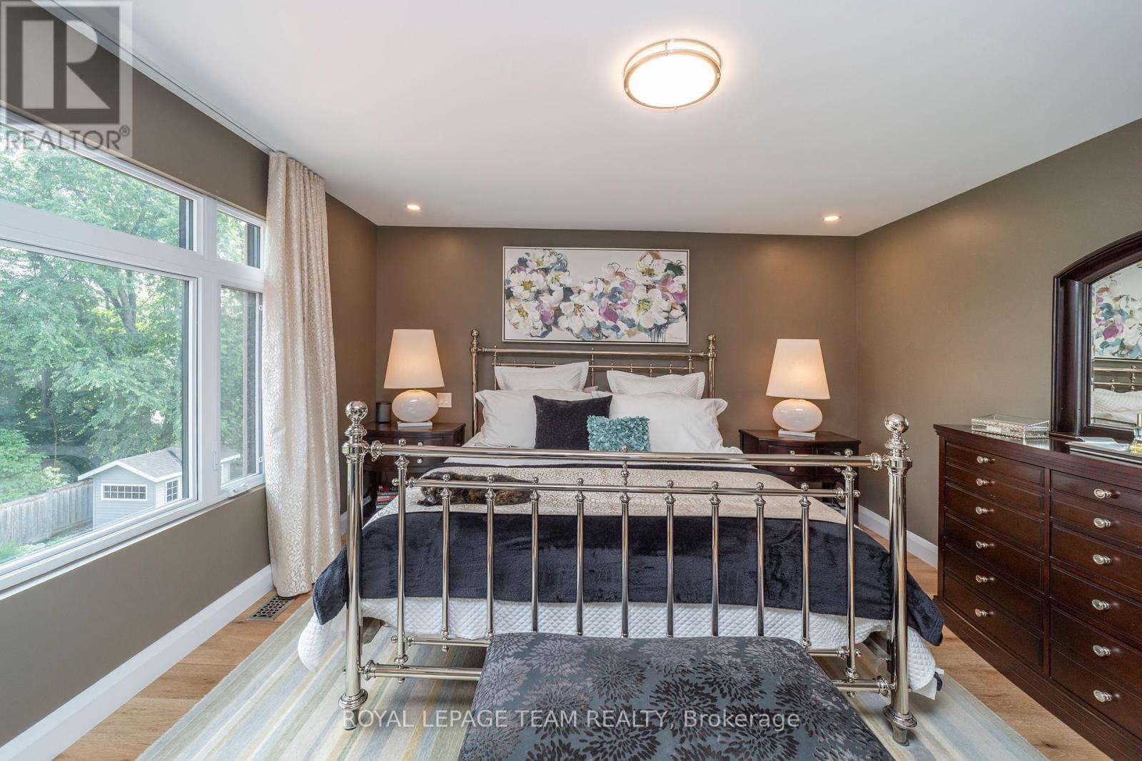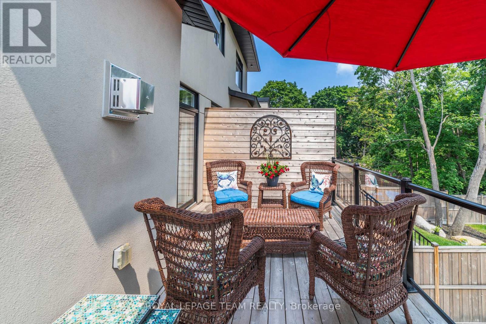 Stunning, spacious & bright, custom-built semi-detached on a premium 166 ft deep lot. This property offers 3,350 sq/ft of finished space, including an impressive open-concept main level w/ample windows on two sides & high ceilings. The thoughtfully designed floorplan offers ample living & entertainment space, w/a coffee/wine bar tucked off the kitchen for added convenience. Offering four bedrooms + four bathrooms, a fully finished walk-out basement (includes a bar rough-in) and a covered extended patio w/heater...the perfect space for outdoor relaxation! A generous east-facing raised deck off the main living area and a sunny west-facing balcony offer added options for outdoor enjoyment. Additional features of this exceptional property include a primary retreat w/walk-in closet & ensuite bath, convenient second-level laundry w/handy built-ins, radiant heated floors, a BBQ hook-up, an elegant gas fireplace w/granite surround, low maintenance gardens & a custom shed. The home is nestled in a quiet pocket, just a short stroll to transit (coming LRT) & the Ottawa River Parkway, providing quick access to cycling/walking paths, cross-country skiing/snowshoeing, downtown Ottawa & Gatineau. (id:49063)
