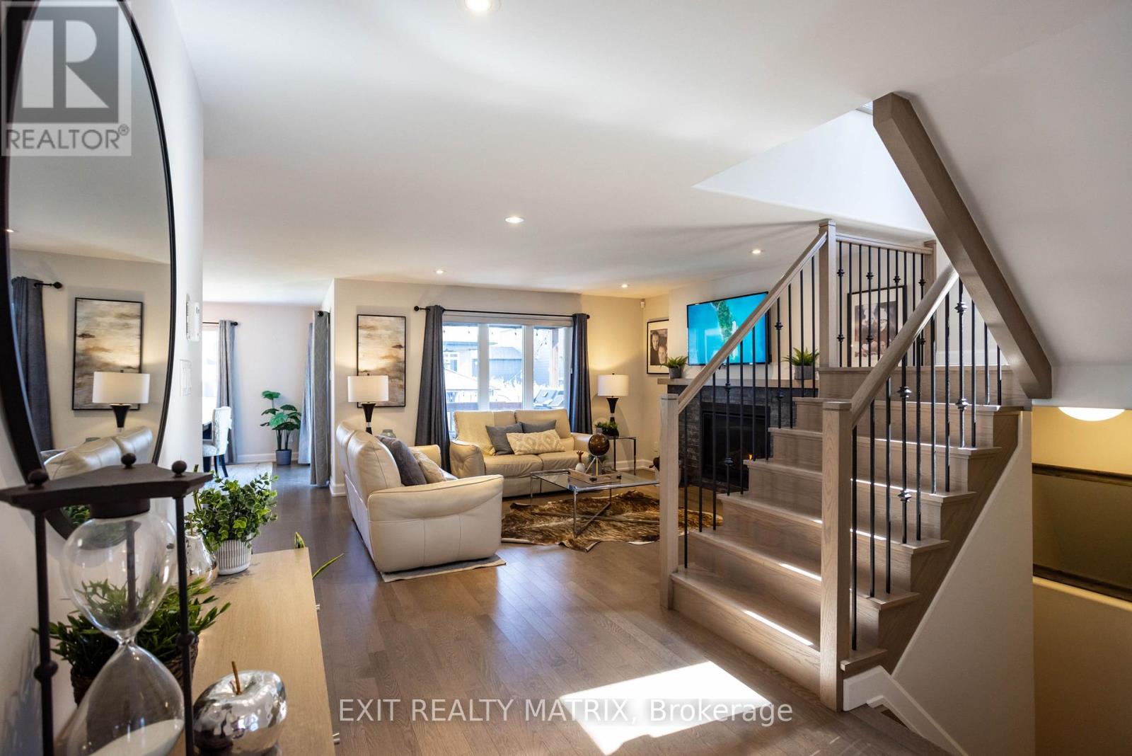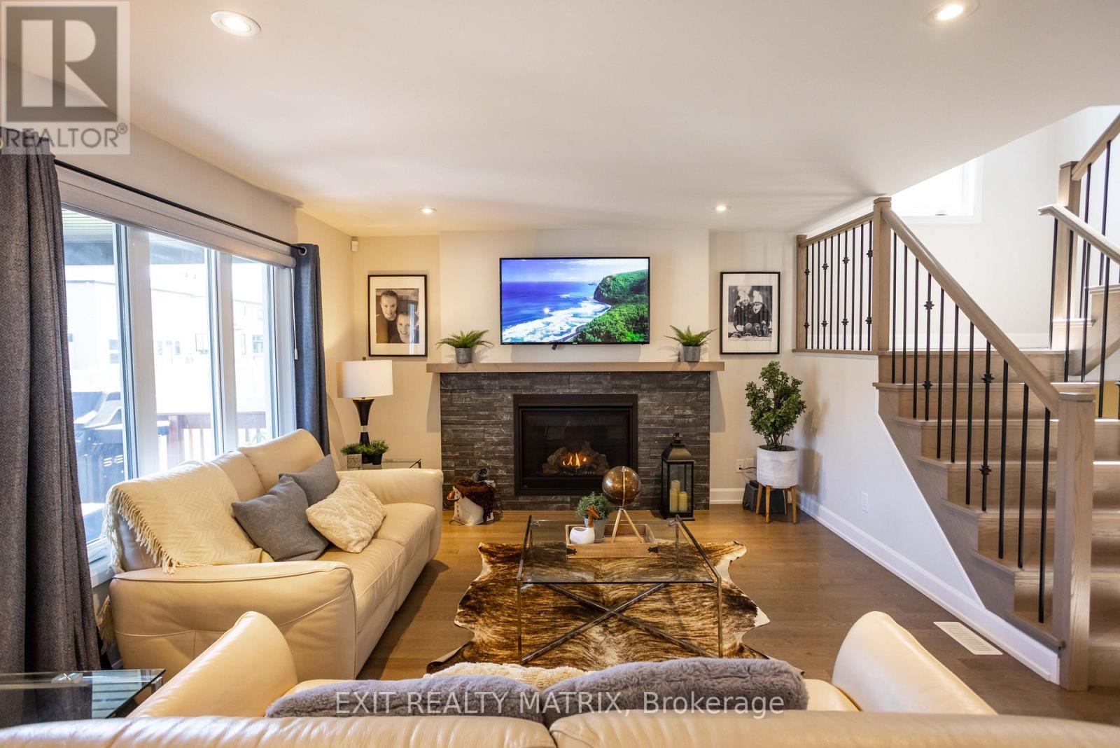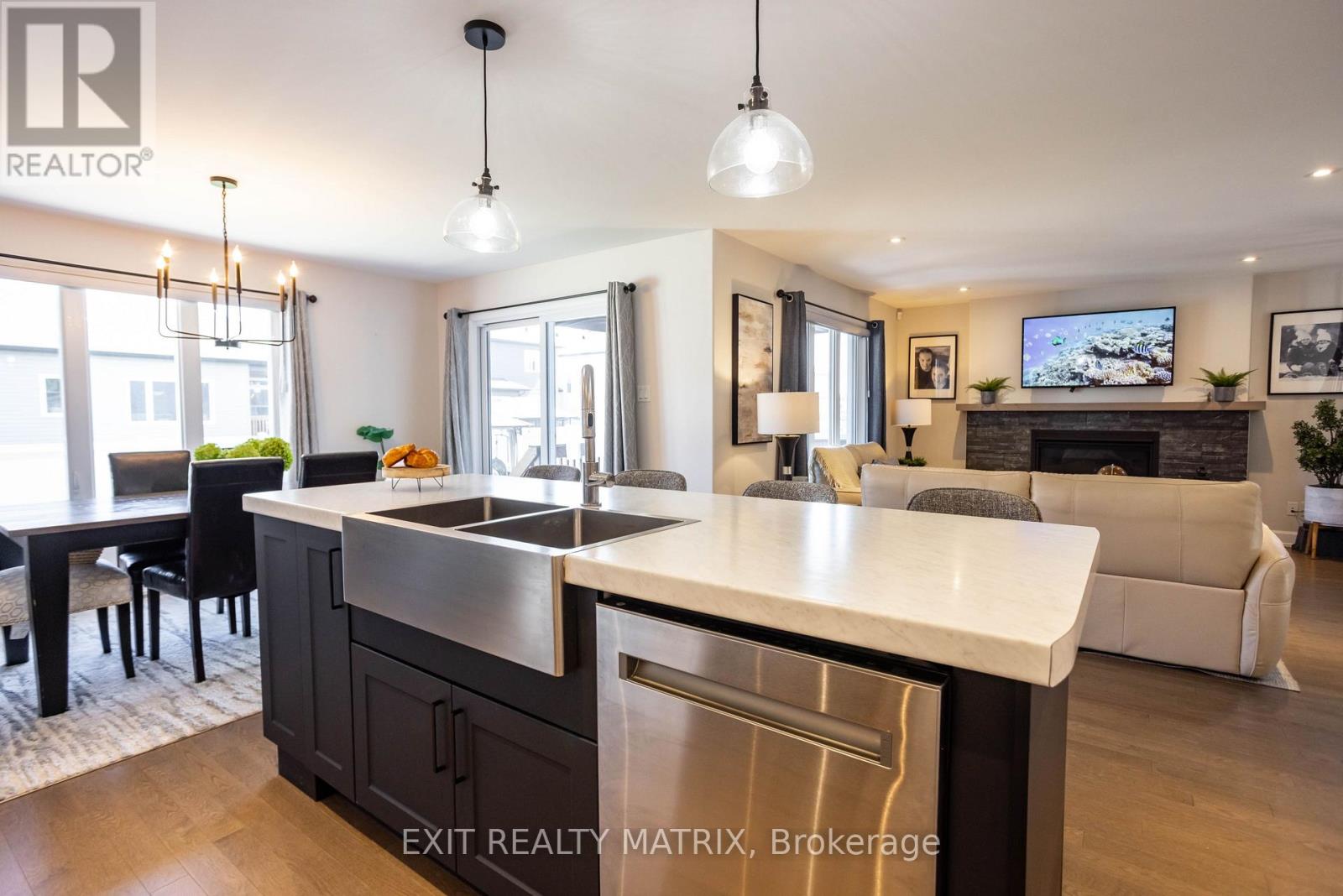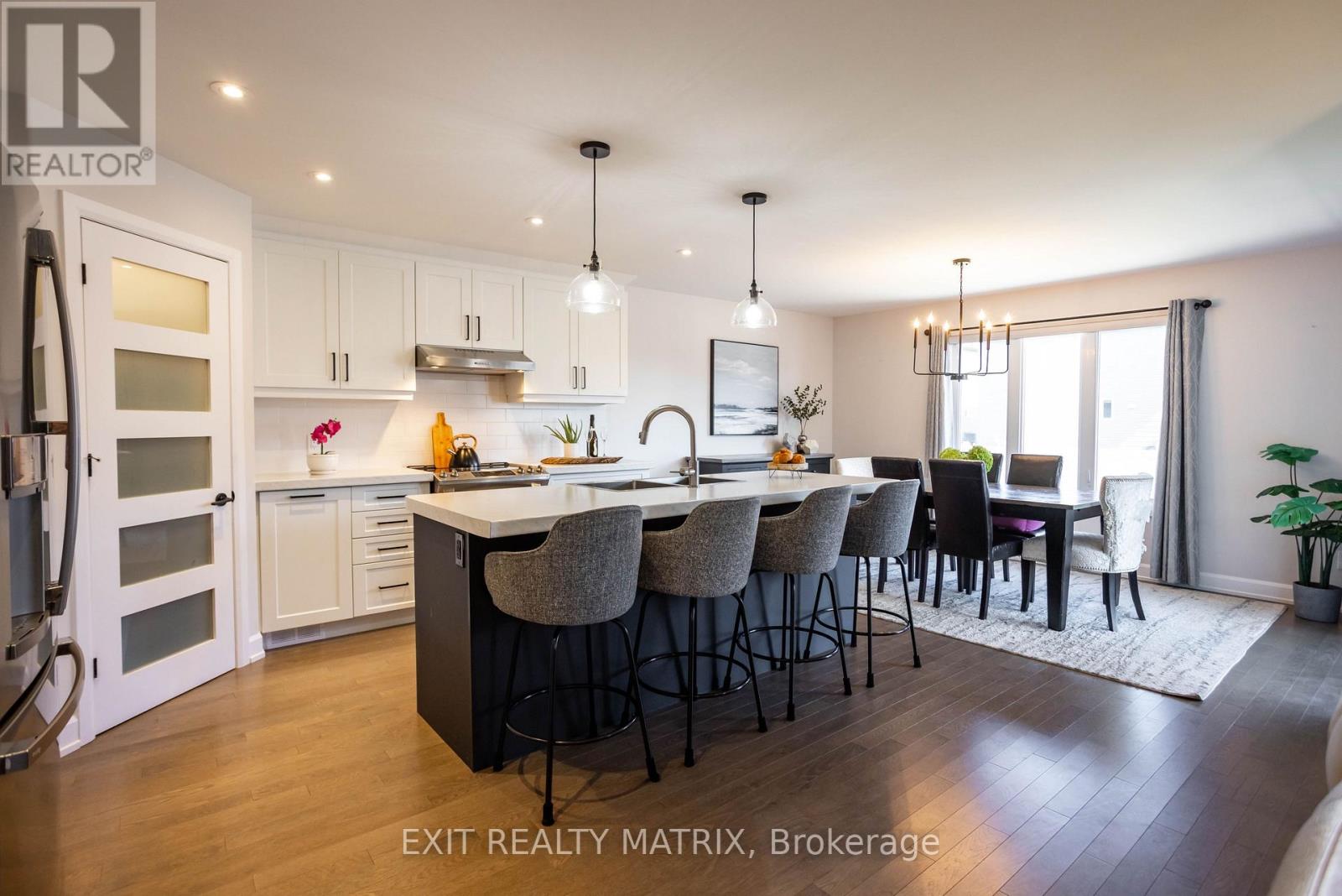 Welcome to 521 Marseille Street, a beautifully upgraded Melanie Construction modified Terracotta model designed to meet the needs of today's families. With 4 bedrooms and 4 bathrooms, this home offers the perfect blend of comfort, functionality, and flexibility, whether you're raising a family, accommodating multiple generations, running a home-based business, or exploring opportunities for rental income. Step into a bright and inviting foyer that flows seamlessly to a dedicated office and convenient half bath. Beyond, the main floor opens into a spacious living area anchored by a gas fireplace with a striking stone surround. The kitchen is a true centrepiece, featuring ceiling-height cabinetry, stainless steel appliances, a stylish centre island with seating for four, and a walk-in pantry. The dining room has been thoughtfully extended from the original builder's plan, creating an ideal space for gatherings and celebrations. Up the elegant hardwood staircase, the primary suite boasts a walk-in closet and a luxurious 4-piece ensuite. Two additional bedrooms, both with walk-in closets, and a full bathroom complete this level. The lower level offers incredible flexibility with its private exterior access. Currently set up for an aesthetics business, it includes a reception/rec area, treatment room, additional bedroom, and a full bathroom. With minimal modifications, it could serve as an extended living space, a spacious in-law suite, private guest quarters, or a rental unit that generates income. Outdoors, enjoy a fully fenced yard with an interlock patio, gazebo, hot tub, and a covered deck, perfect for year-round entertaining. Located in the welcoming community of Embrun, you're minutes from schools, shopping, recreation facilities, and parks, with an easy commute to Ottawa for work or play. This property combines small-town charm with modern convenience, making it an exceptional opportunity for today's lifestyle. (id:49063)