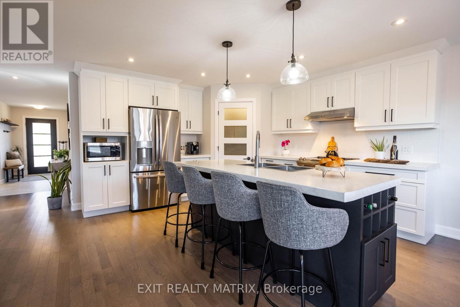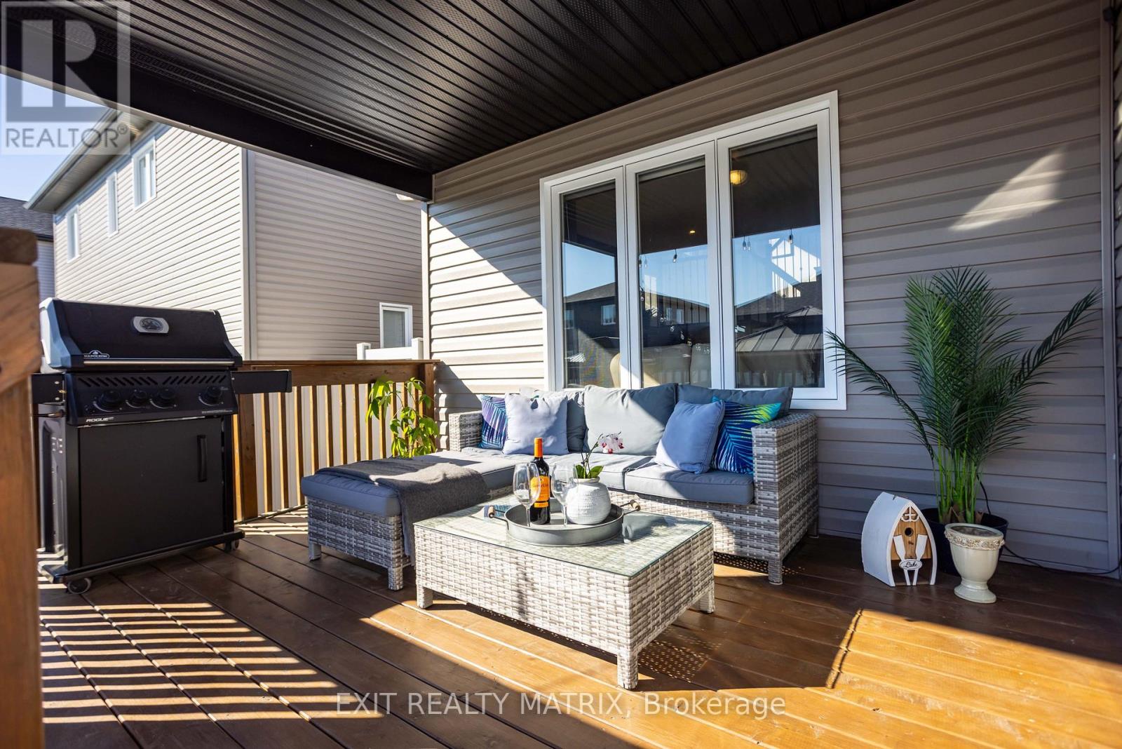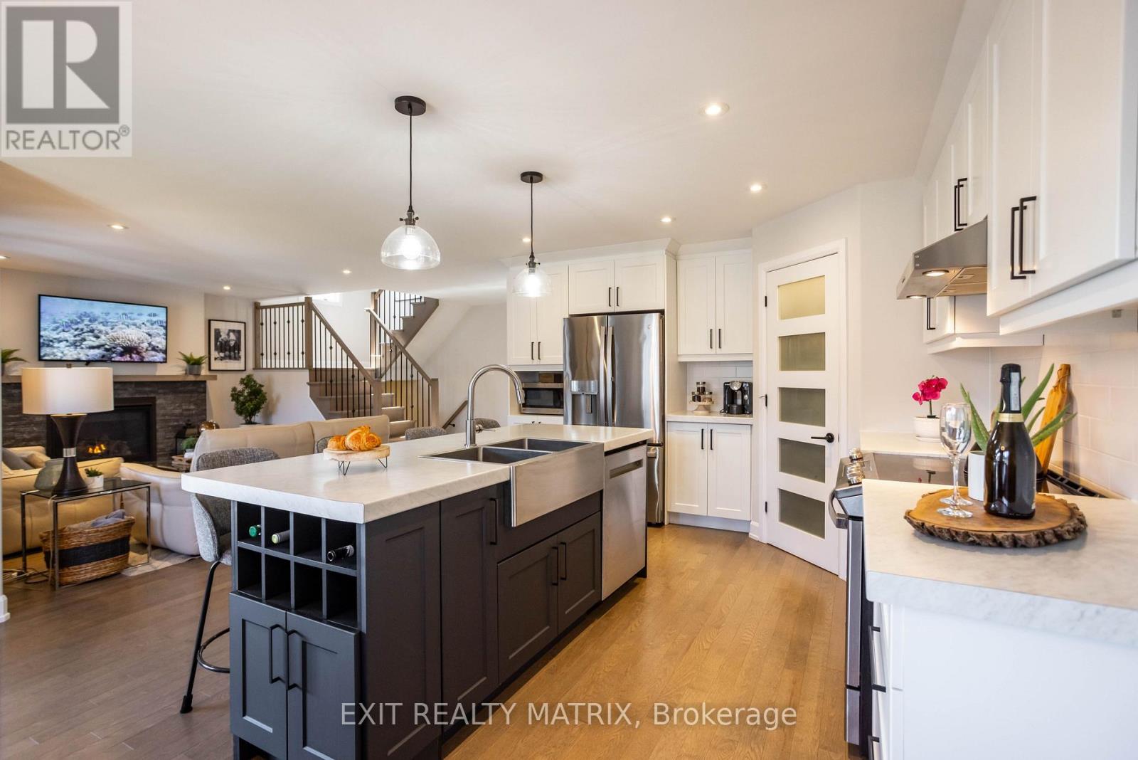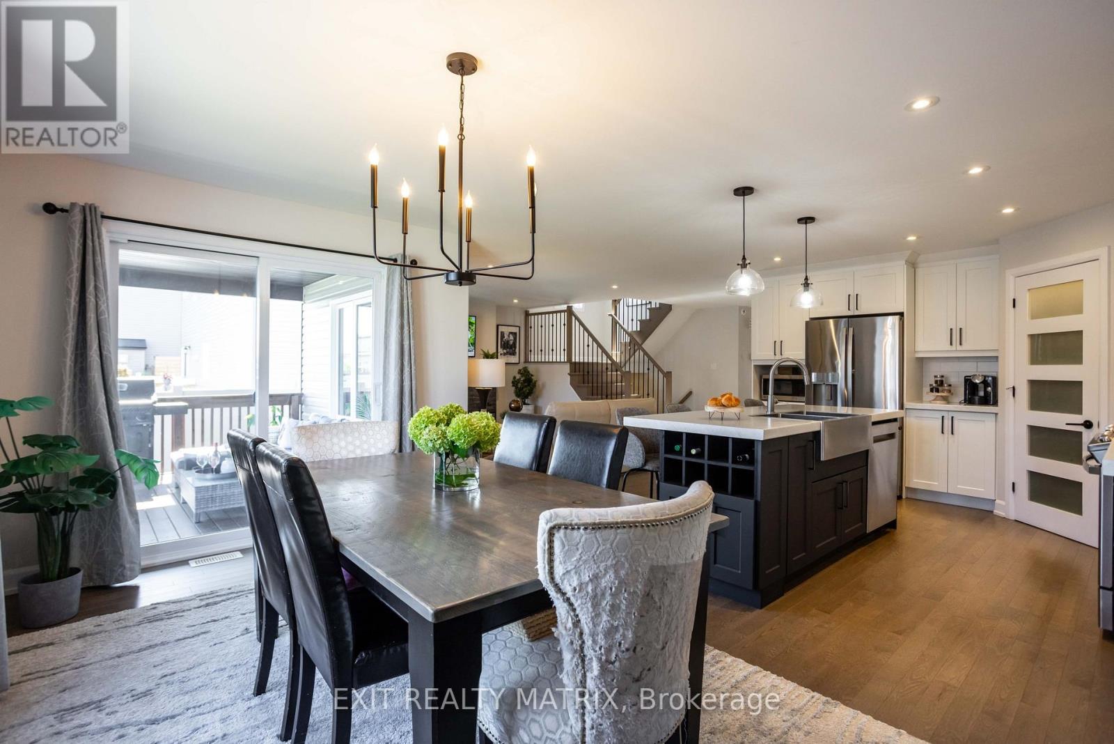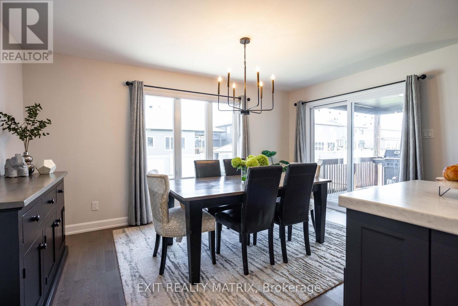 Welcome to 521 Marseille Street, a beautifully upgraded Melanie Construction modified Terracotta model designed to meet the needs of today's families. With 4 bedrooms and 4 bathrooms, this home offers the perfect blend of comfort, functionality, and flexibility, whether you're raising a family, accommodating multiple generations, running a home-based business, or exploring opportunities for rental income. Step into a bright and inviting foyer that flows seamlessly to a dedicated office and convenient half bath. Beyond, the main floor opens into a spacious living area anchored by a gas fireplace with a striking stone surround. The kitchen is a true centrepiece, featuring ceiling-height cabinetry, stainless steel appliances, a stylish centre island with seating for four, and a walk-in pantry. The dining room has been thoughtfully extended from the original builder's plan, creating an ideal space for gatherings and celebrations. Up the elegant hardwood staircase, the primary suite boasts a walk-in closet and a luxurious 4-piece ensuite. Two additional bedrooms, both with walk-in closets, and a full bathroom complete this level. The lower level offers incredible flexibility with its private exterior access. Currently set up for an aesthetics business, it includes a reception/rec area, treatment room, additional bedroom, and a full bathroom. With minimal modifications, it could serve as an extended living space, a spacious in-law suite, private guest quarters, or a rental unit that generates income. Outdoors, enjoy a fully fenced yard with an interlock patio, gazebo, hot tub, and a covered deck, perfect for year-round entertaining. Located in the welcoming community of Embrun, you're minutes from schools, shopping, recreation facilities, and parks, with an easy commute to Ottawa for work or play. This property combines small-town charm with modern convenience, making it an exceptional opportunity for today's lifestyle. (id:49063)