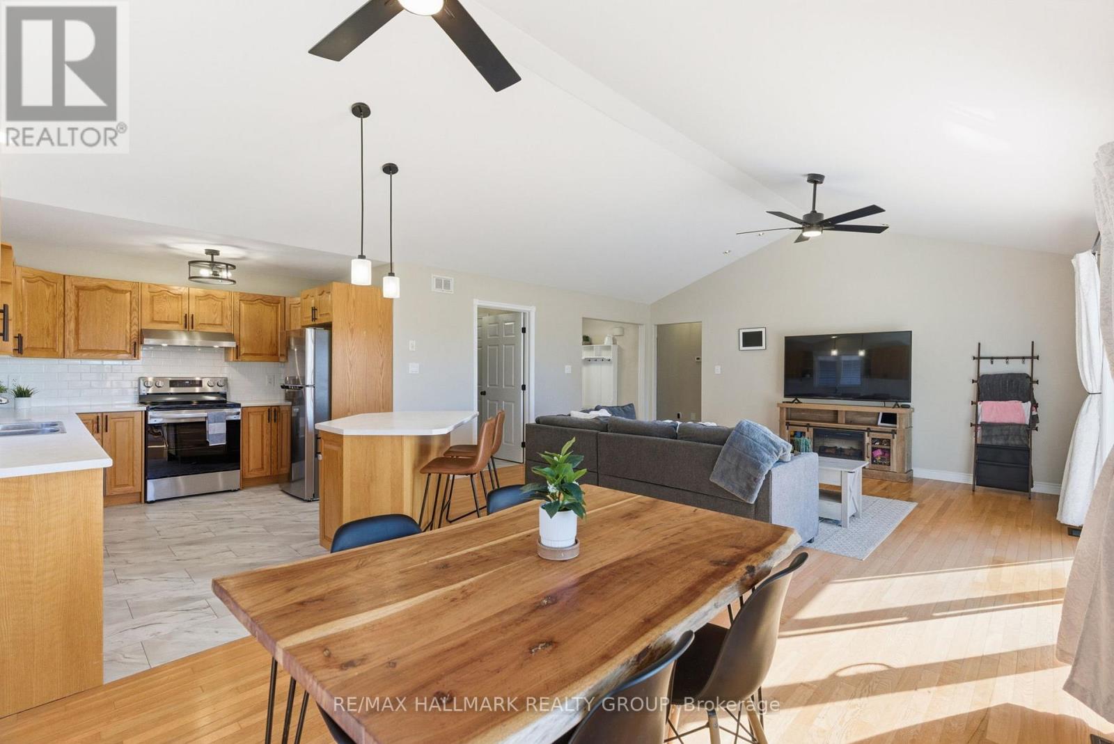 Beautifully maintained bungalow on a quiet & family-friendly street in the village of Winchester! Step inside to a bright and open concept layout with thoughtful modern updates. This move-in-ready home offers approx. 1400 sqft + large lower level with 3 bedrooms and 2 full bathrooms. The main level features hardwood floors, soaring vaulted ceilings and spacious living space to relax with family and friends. The kitchen includes new (2025) stainless steel appliances, updated countertops, plenty of cupboard space and a bonus island with storage space. Convenient main floor laundry room (Washer, Dryer 2025) leads to the oversized 2-car garage with plenty of storage space. The primary bedroom includes a walk-in closet and a full ensuite bathroom, while two additional spacious bedrooms and a family bathroom complete the main living space. The lower level is finished with plenty of additional space for a growing or extended family and has large windows to allow plenty of natural sunlight. It also includes a 3-piece rough-in for a future full bathroom and bonus workshop room that could be converted to a 4th bedroom. Outside, enjoy quiet mornings and stunning sunsets from your back deck. Located on a large lot backing onto open farmland, providing peaceful views and privacy with no rear neighbours. A serene retreat! Close to Winchester hospital, Joel Steel community centre, groceries, restaurants, schools, parks and more! 24-hour irrevocable on offers, Schedule B (handling of deposit) to be included with offers. Roof Shingles 2022 (id:49063)