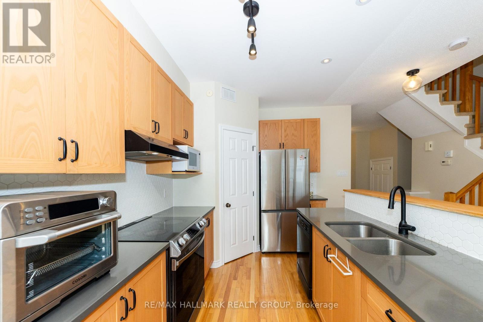 Welcome to this Tamarack town-home (Aberdeen model) in sought-after Barrhaven. This home seamlessly combines style, and functionality with three bedrooms and two and a half bathrooms. The main floor boasts a warm foyer, hardwood and ceramic flooring, a spacious dining and living area with a cozy gas fireplace, and a bright, functional kitchen with stainless steel appliances and pantry. The second floor features a primary suite with a walk-in closet and ensuite, along with two well-proportioned bedrooms and a full bathroom. The lower level offers a modern space for recreation, exercise, or entertainment, with ample storage. Outside, the fully fenced and beautifully landscaped yard provides a low-maintenance oasis for entertaining and family BBQs. Conveniently located near parks, schools, and transit, this town-home is a fantastic opportunity to join a welcoming, family-friendly community (id:49063)