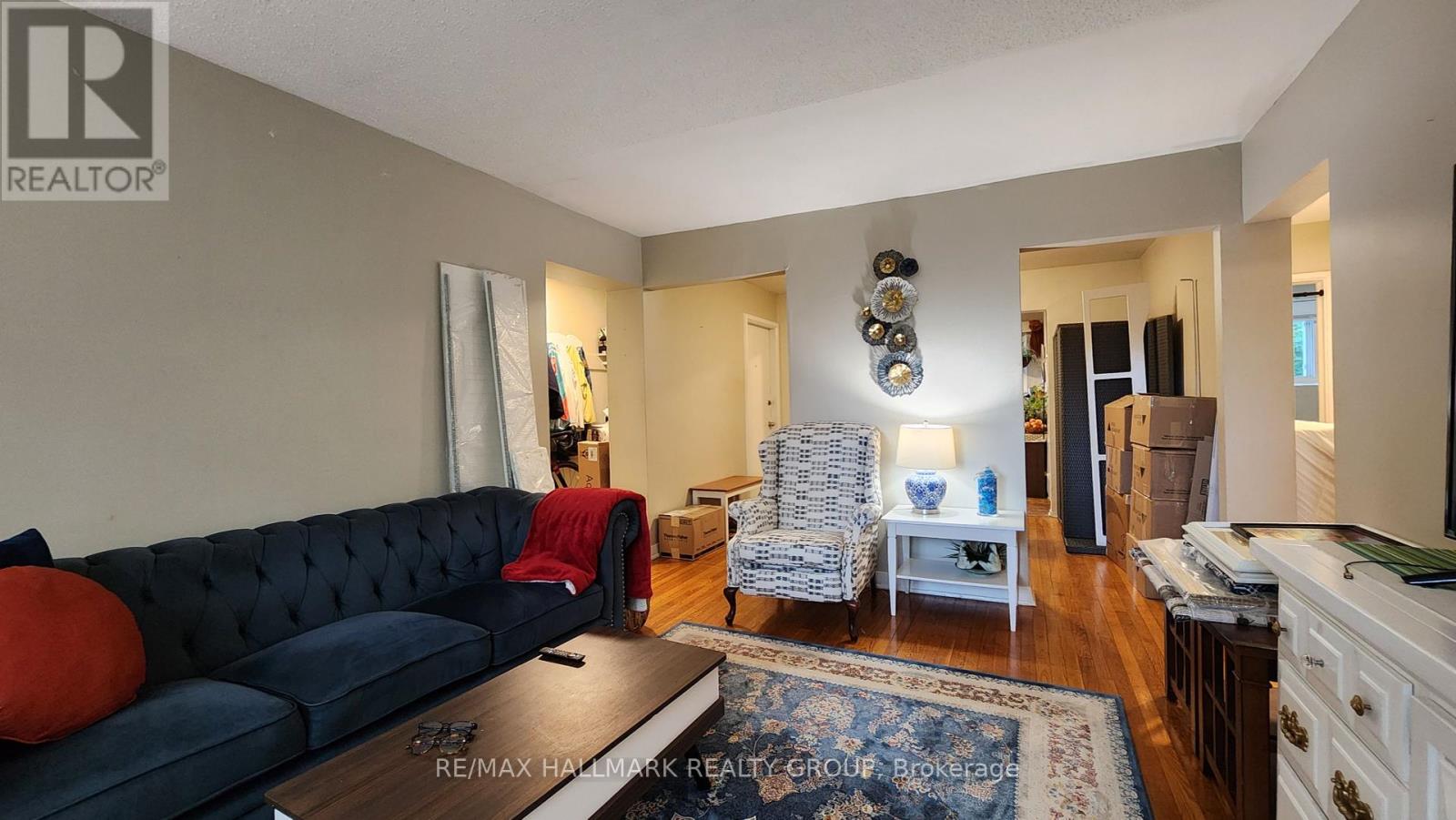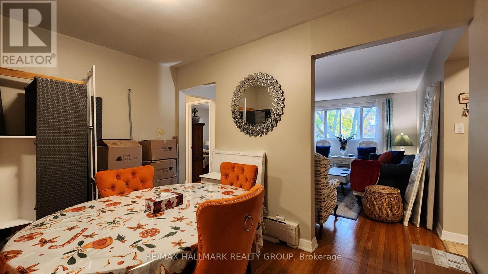 Spacious top level 2 bedroom apartment in residential neighbourhood with tree lined streets. Windows face onto large front yard. Hardwood flooring. Kitchen has a large window facing south. One bedroom faces the front of the building, the other faces the back, with the bathroom in between. Parking included, as assigned by Landlord. Tenant pays hydro and sets up their own account. Coin laundry and storage locker on lower level. 1st and last months' rent deposit payable to Remax due upon signing of Lease. Lease has Schedule of rules, including no smoking, requirement for liability insurance. Credit and references check required. Available Nov 1. Tenant moving out Oct 31. Pictures have had the furniture and moving boxes virtually removed. (id:49063)