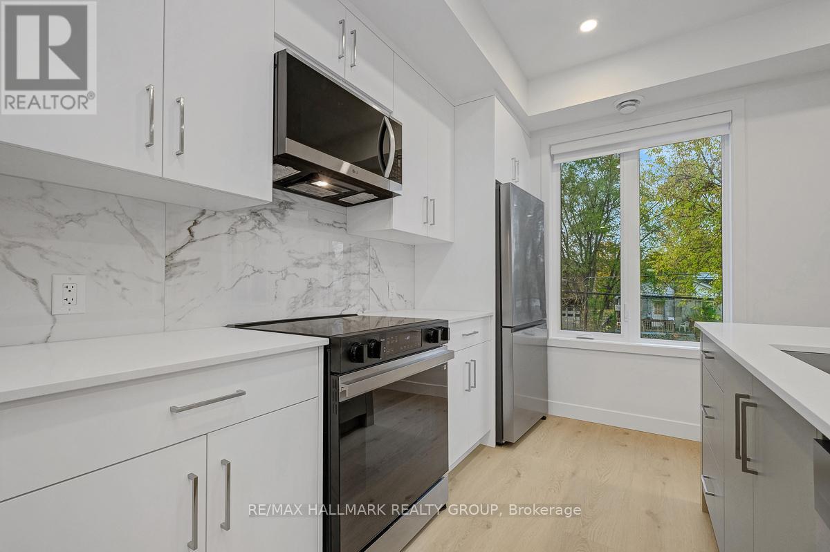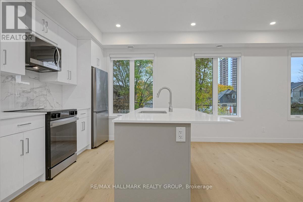 ***December 2025 free*** Available immediately for rent. Be the first to live in this brand new, large, bright, 2 bedroom upper unit at 199 Columbus Avenue, located in a newly built, all brick building just minutes from Ottawa University, Sandy Hill, LRT transit, Rideau Centre, and downtown. Inside, enjoy quartz countertops, 9 foot ceilings, large kitchen island and pantry, in unit storage, high end appliances and finishes, forced-air heating with central A/C, and full control of your own temperature. The unit includes all five appliances: refrigerator, stove, dishwasher, over the range microwave plus in-unit laundry with your own washer and dryer. A security system which includes exterior cameras is also provided for peace of mind. Surrounded by parks, bike paths, shopping, cafés, and restaurants, this modern unit offers convenience and comfort in an unbeatable location. Parking is available. (id:49063)